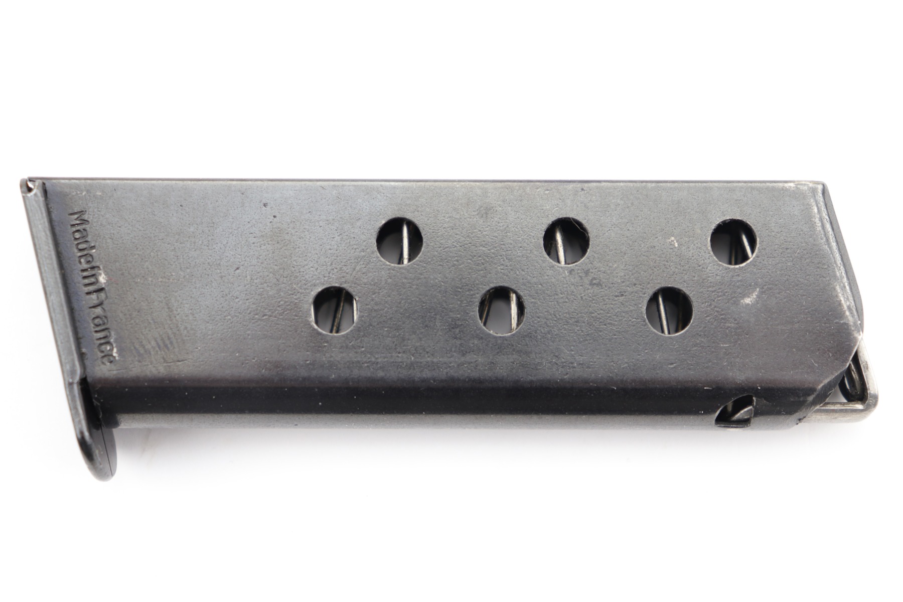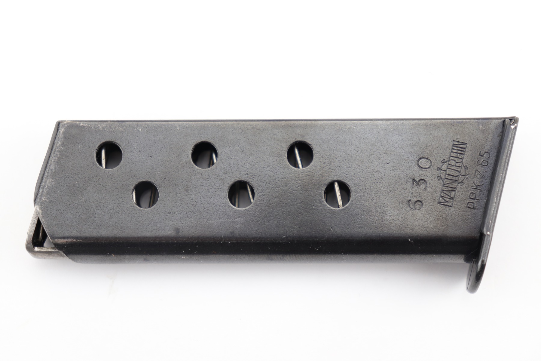 10/10/24 – For sale is an excellent and original condition French Manurhin Walther PPK magazine. This magazine has no notable finish loss. Spring is smooth with excellent retention. Marked on the bottom left side of the tube is ser# 630 Manurhin PPK 7.65, and on the right is Made In France.