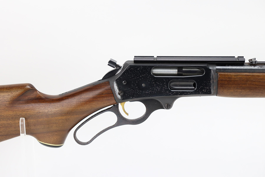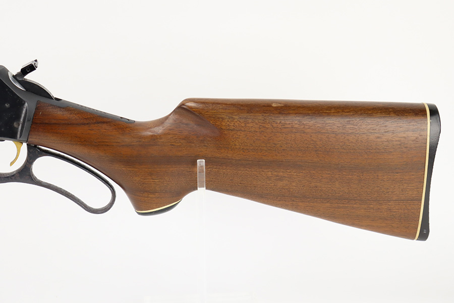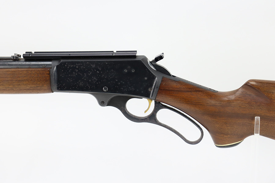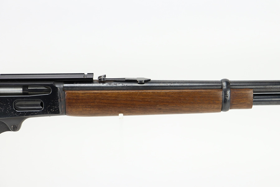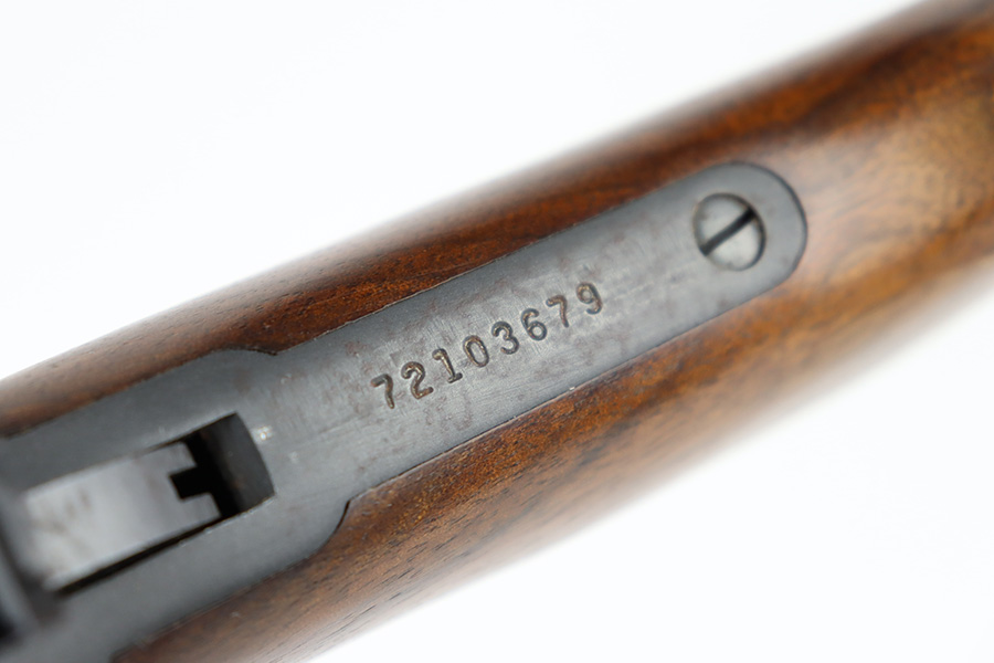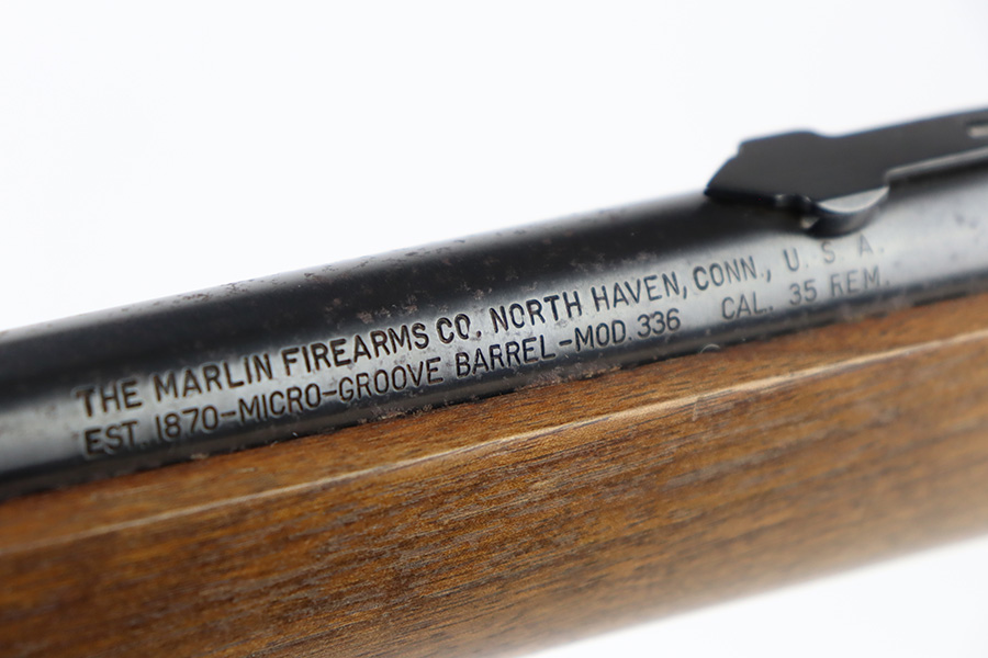1/15/24 – This is a Marlin Model 336 lever action rifle, manufactured in 1972 and chambered in .35 Remington. Equipped with a scope rail and a hammer extension. There is virtually no actual bluing loss, but there is noticeable spotty oxidation covering all of the metal parts. Excellent wood furniture. The bore is shiny with strong rifling, for the most part. However, there is a small area of light surface oxidation around the muzzle end.