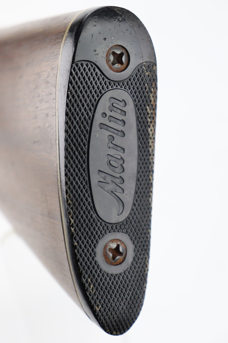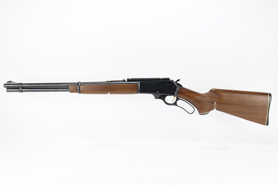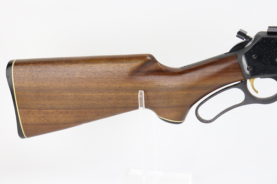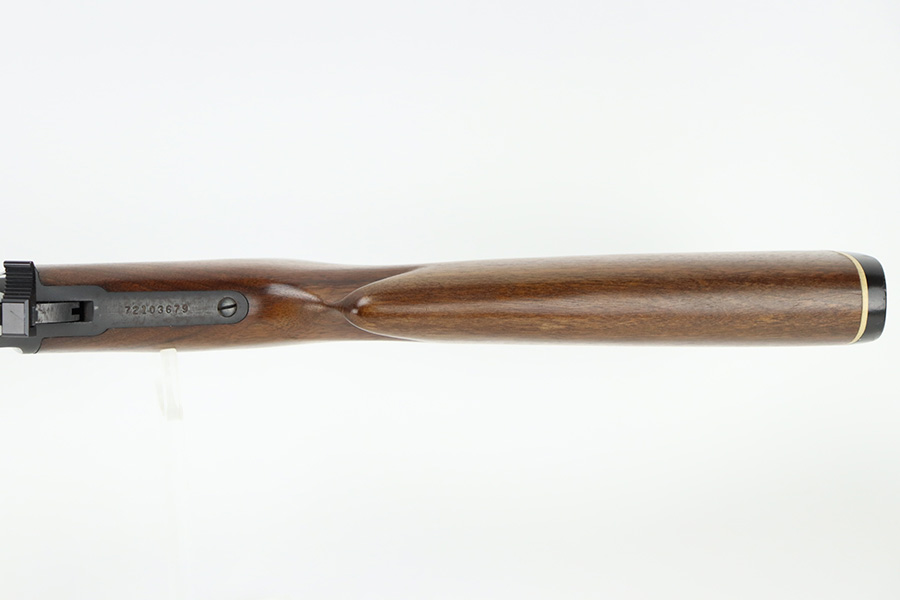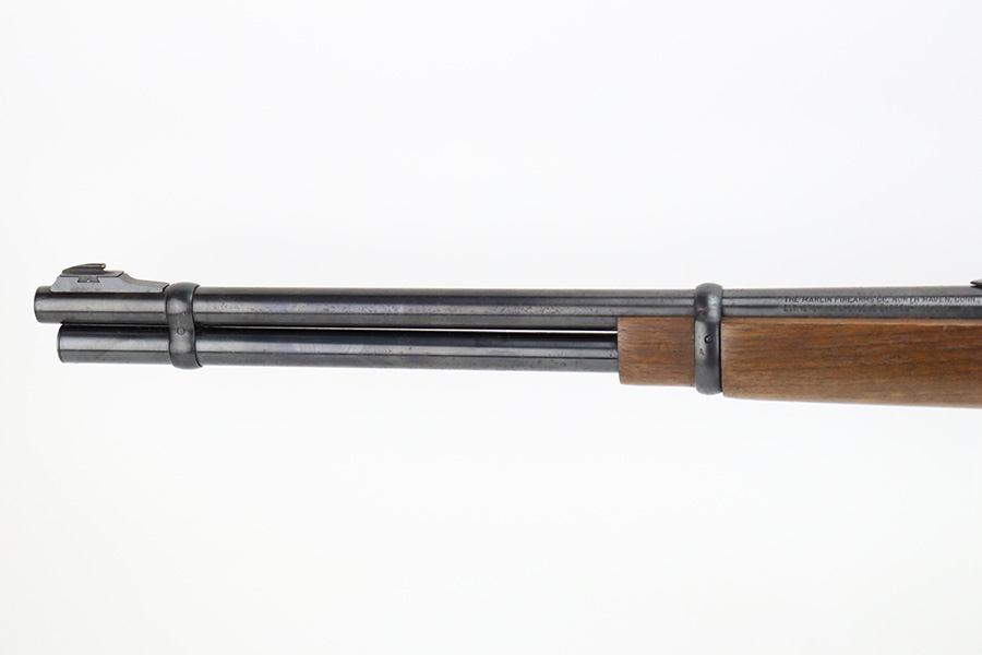 1/15/24 – This is a Marlin Model 336 lever action rifle, manufactured in 1972 and chambered in .35 Remington. Equipped with a scope rail and a hammer extension. There is virtually no actual bluing loss, but there is noticeable spotty oxidation covering all of the metal parts. Excellent wood furniture. The bore is shiny with strong rifling, for the most part. However, there is a small area of light surface oxidation around the muzzle end.