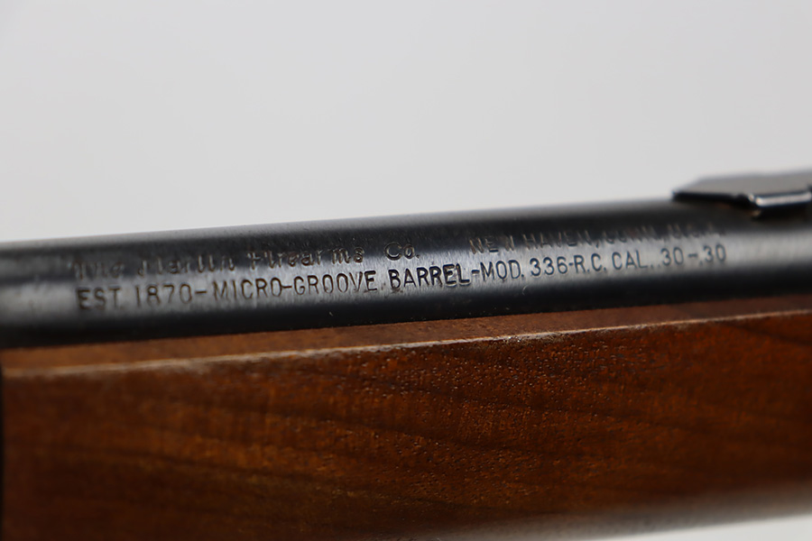 11/6/23 – This is a Marlin Model 336-RC lever action rifle, manufactured in 1967 and chambered in .30-30 Winchester. There is almost no actual finish loss, but there are some areas of spotty oxidation, especially on the top of the receiver. Excellent wood furniture with only a few minor handling marks and dings. Mint bore. The rear sight blade fits very loose.