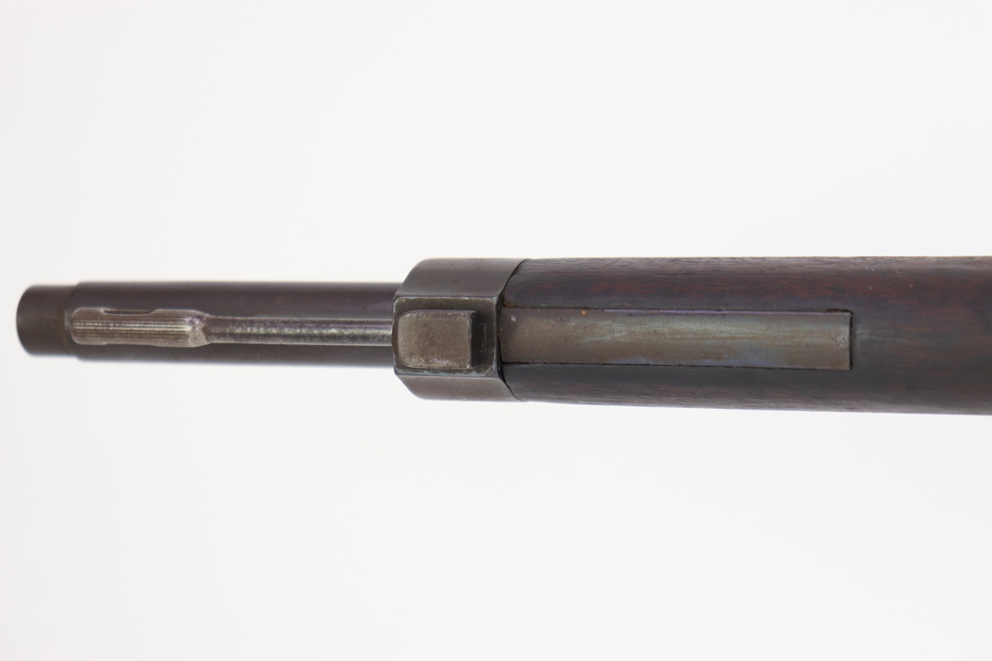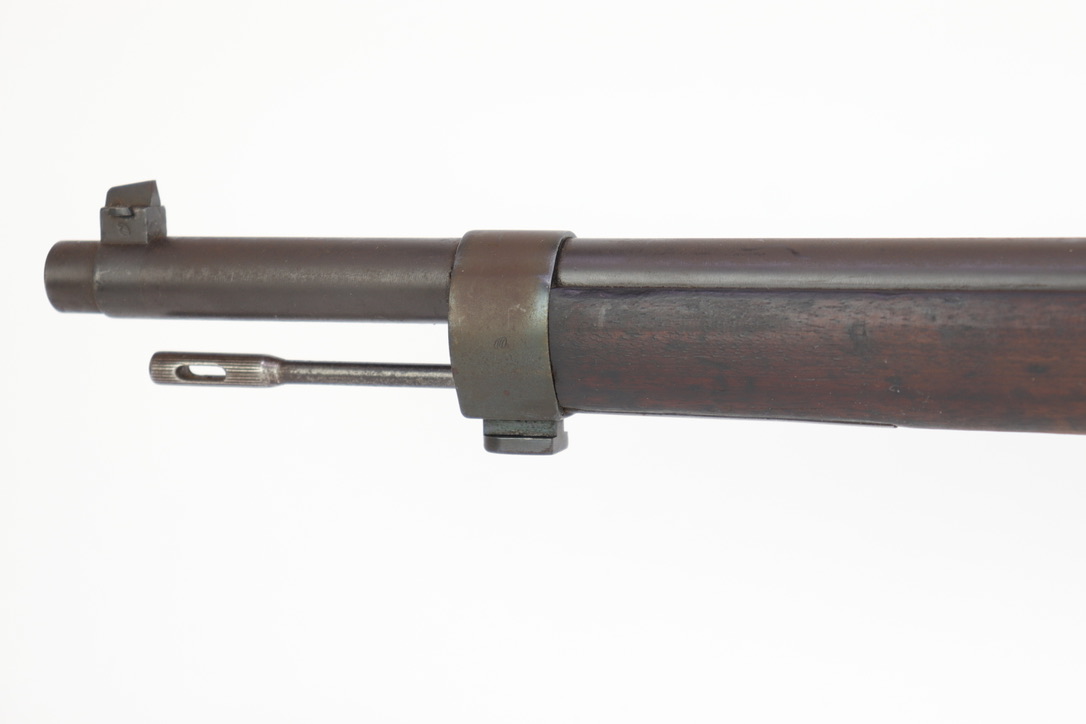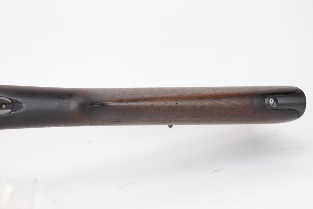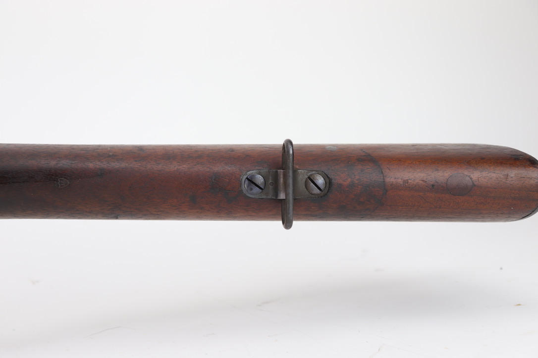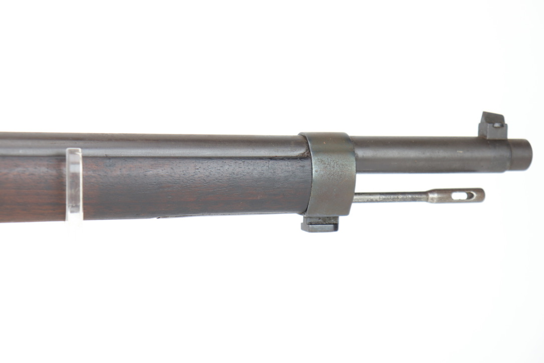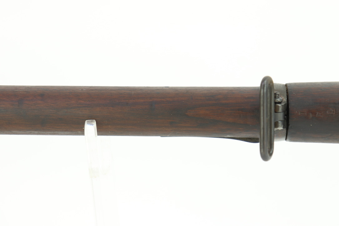 8/29/24 – For sale is an original and matching 1891 Argentine Mauser. The finish on this rifle has thinned over the years but is overall very clean with no rust on the barrel, receiver, or magazine; in addition, the rifle retains almost all of the fire bluing on the bolt release lever. Overall finish Rates 85%. The bore is a bit dark with light pitting throughout but still has pretty strong rifling; we rate the bore a 7.5/10. Excellent wood throughout that shows nothing more than normal handling wear. The action is very smooth and is fully functional. Argentine national crest has been ground off the receiver, which was common practice when these rifles were imported into the United States in the 1960s. One thing to note about this particular rifle is that Loewe Berlin did not send any complete rifles to Argentina under the P serial block. This rifle was assembled and delivered by DWM in 1899 using old stock Loewe Berlin receivers. The actual production date of the receiver is 1895, making this rifle an antique.