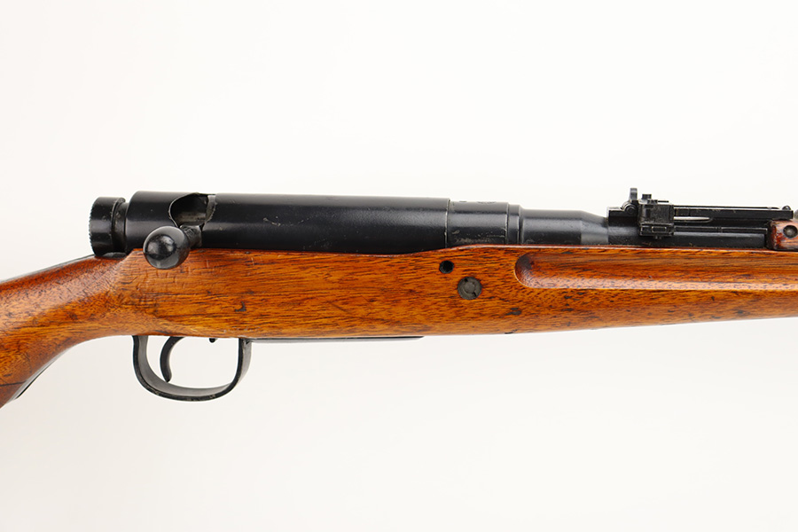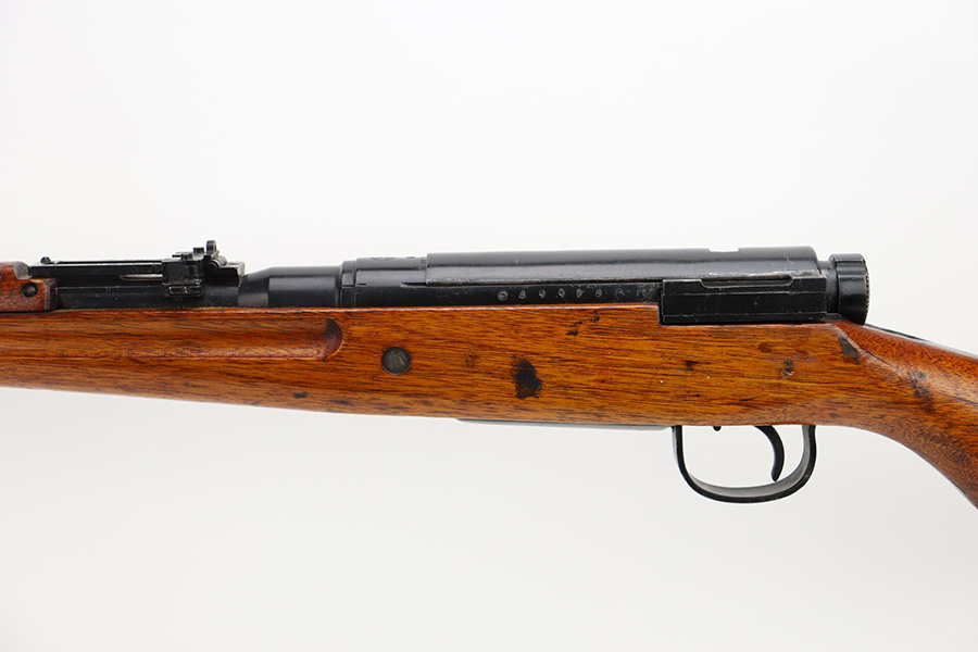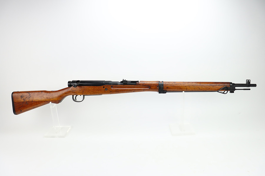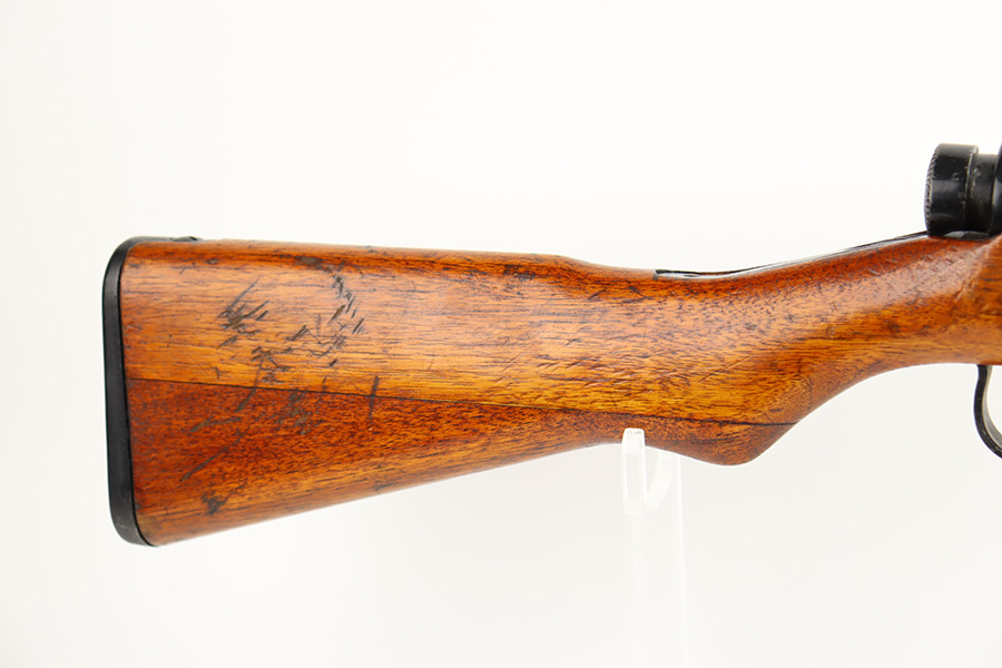 12/1/23 – This is an excellent example of an Arisaka Type 99 issued to the Japanese military during WW2. All matching with a completely intact Imperial mum stamp on the receiver. It comes with an original monopod and a matching-numbered dust cover. It also has the original cleaning rod and anti-aircraft sights. The gun itself has retained about 95% of its original finish. Minor finish loss on the barrel and trigger guard. The wood furniture has no major damage, but there are typical signs of wear throughout. Terrific bore.