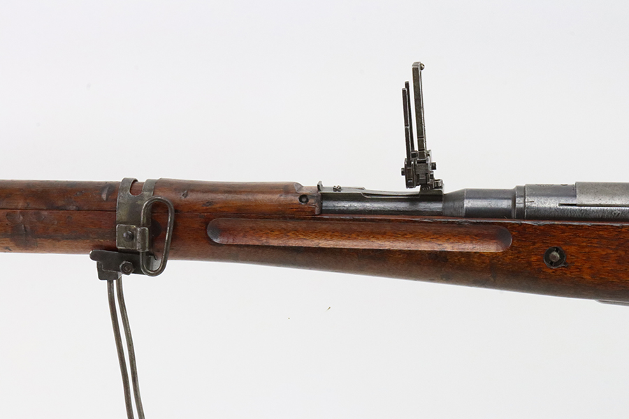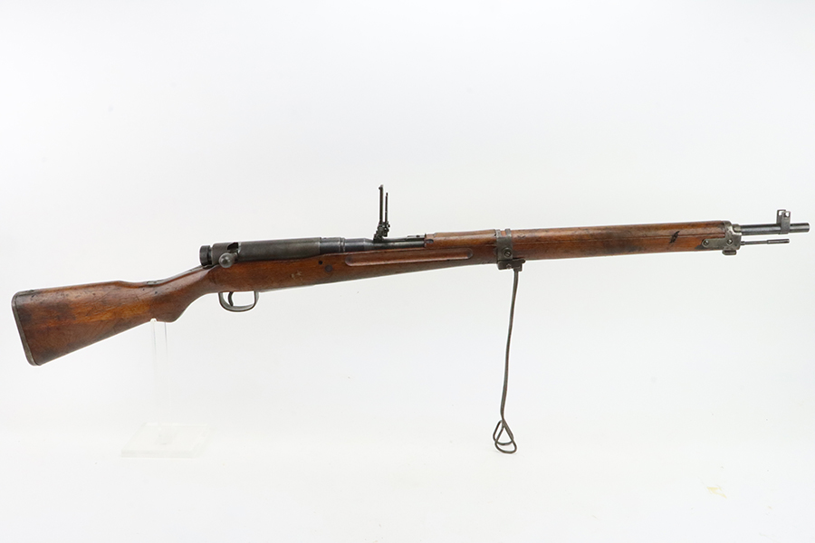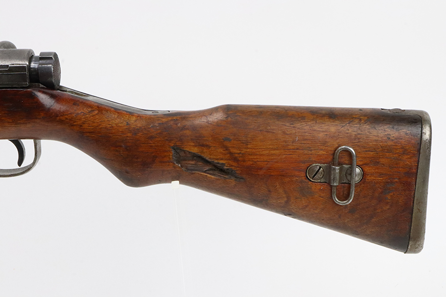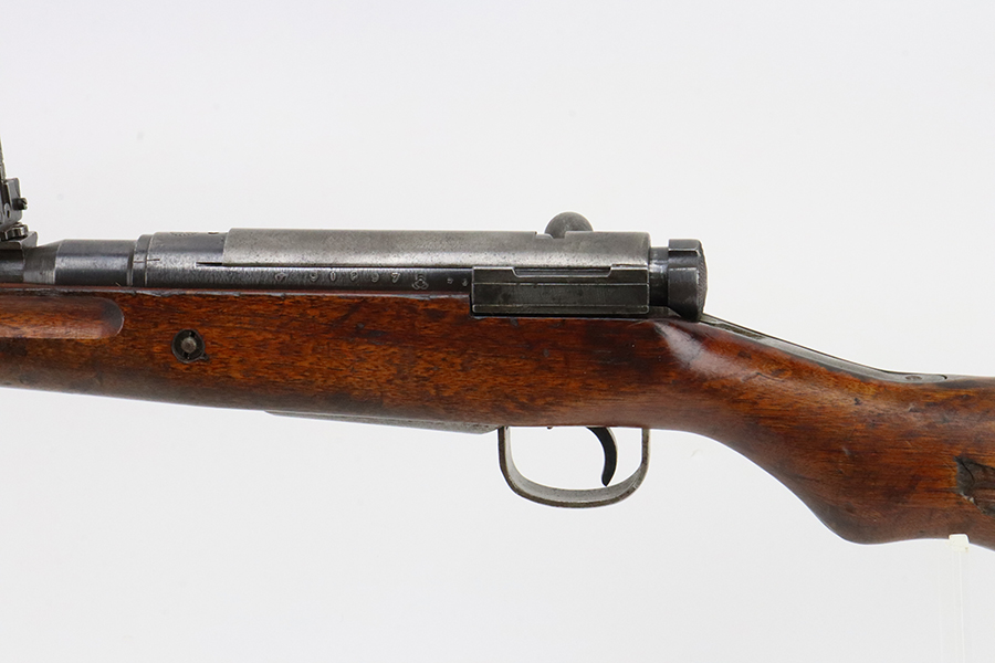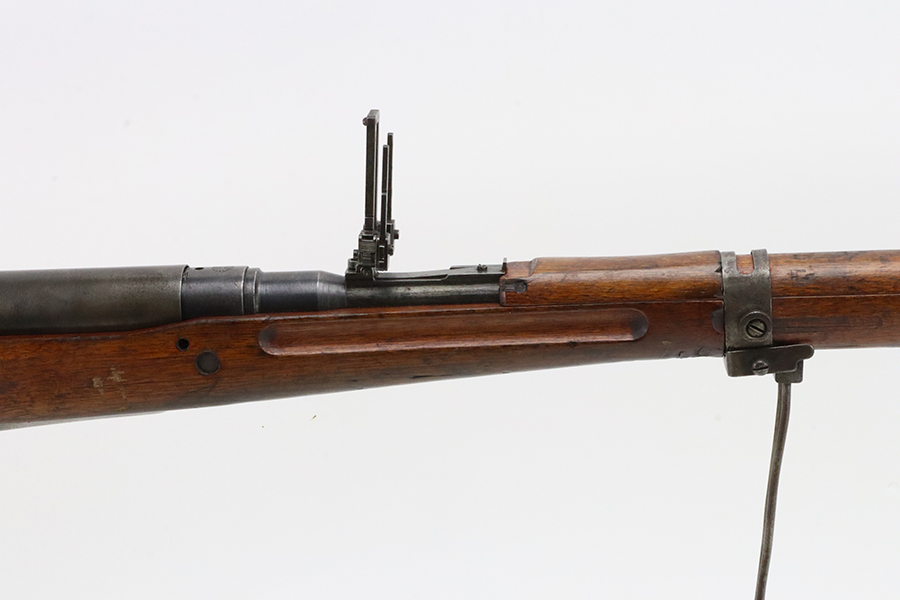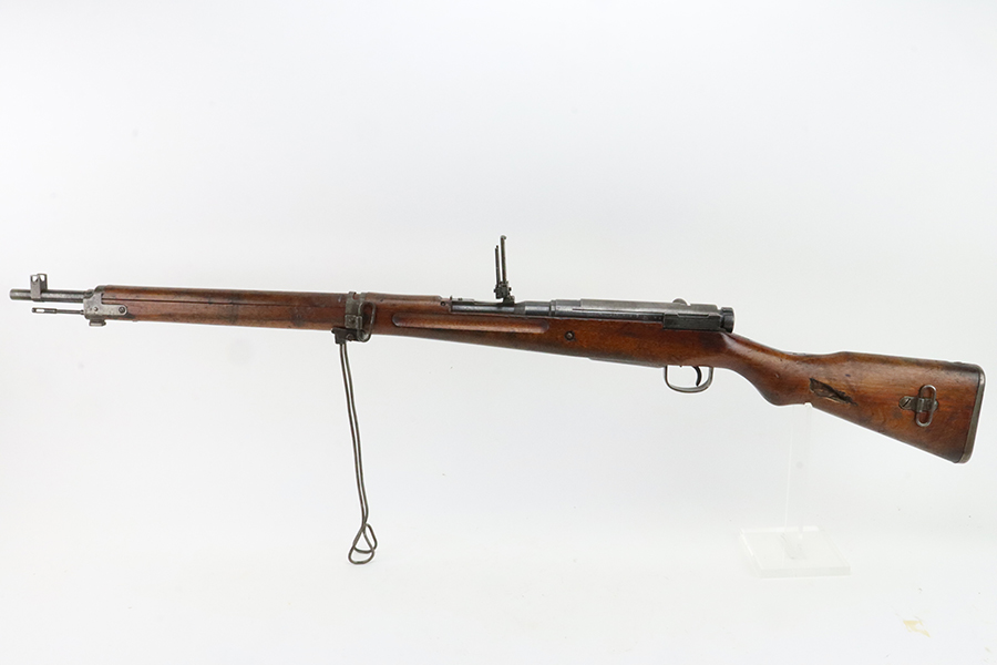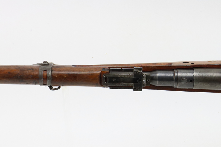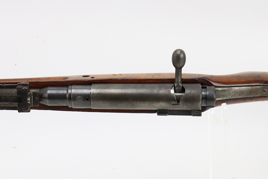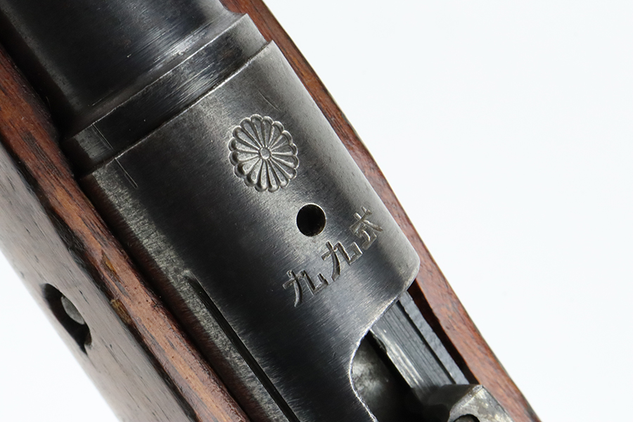 2/5/24 – This is an excellent example of an Arisaka Type 99 issued to the Japanese military during WW2. All matching with a completely intact Imperial mum stamp on the receiver. It comes with an original monopod and a matching-numbered dust cover. It also has the original cleaning rod and anti-aircraft sights. The gun itself has retained roughly 60% of its original finish. There is obvious finish loss throughout, some minor spotty oxidation on the barrel, and pin-pricking on the floor plate. The wood furniture is pretty nice overall, but there is one gouge on the left side of the butt stock. Minty bore.