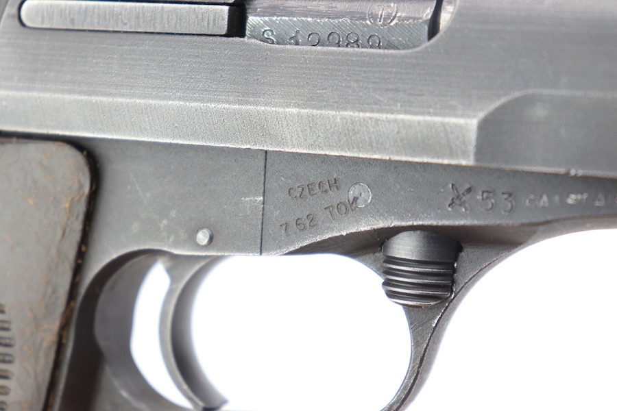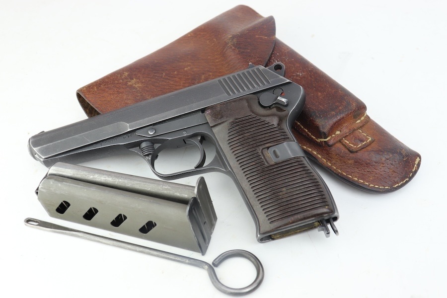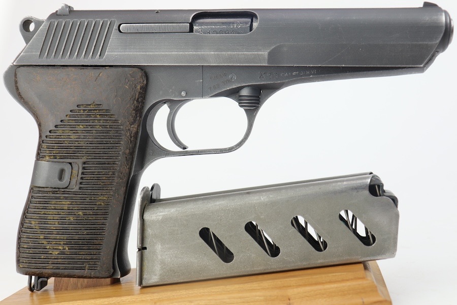 4/17/24 – This is an excellent condition all matching CZ – 52 rig. The slide shows light thinning on the edges and the muzzle but retains about 90% of the original finish. The bore has some very light pitting but is still shiny with strong rifling and rates a solid 8.5/10. The grips have some light scratches throughout. Mechanically, every moving part is functional and works as it should. Pistol comes an original holster, cleaning rod and two magazines.