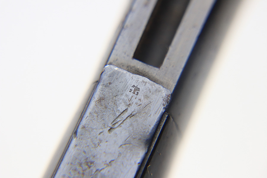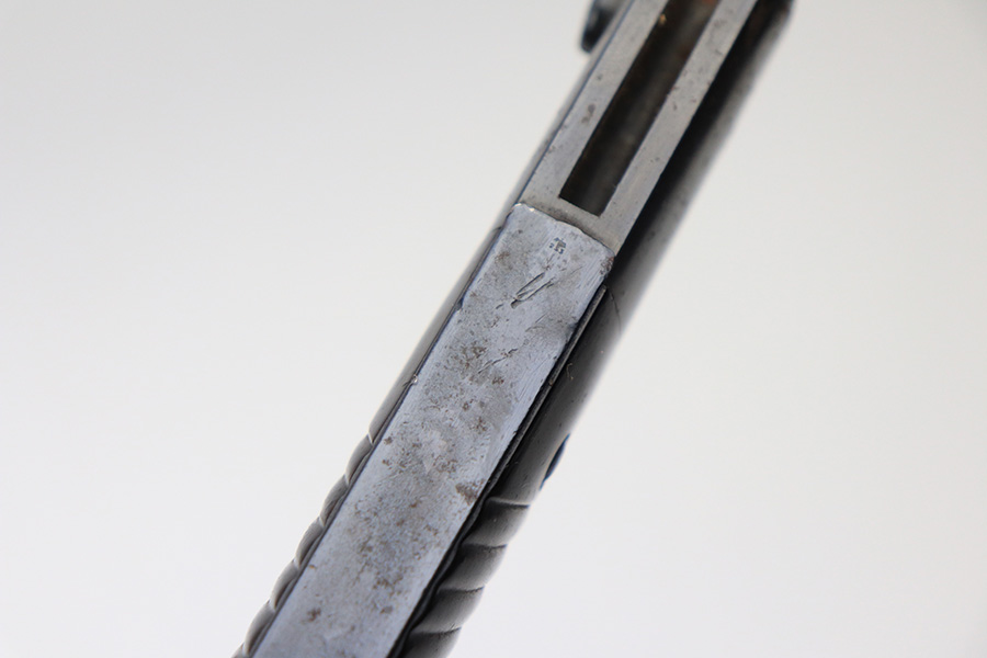 1/4/22 – This is an original 1939 dated K98 bayonet with a matching serial numbered scabbard. The blade is excellent and very clean with most of the blued finish in tact and without issue. One side of the blade is serial numbered and the other is maker stamped. There is some surface rust on the hand guard and metal pommel. No cracks or chips in the grip panels. The scabbard also has some light spotty oxidation and discoloration but no major dents.