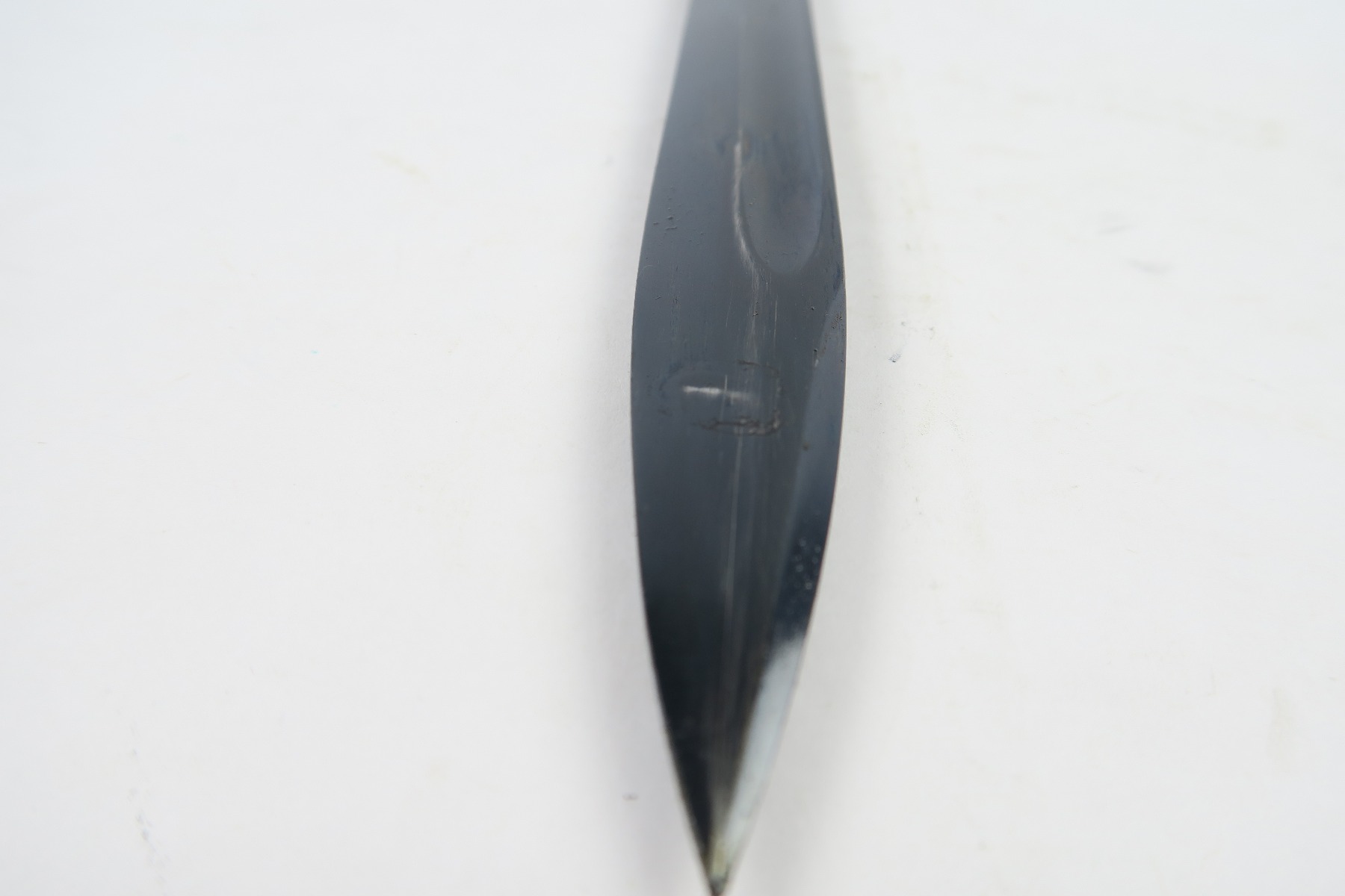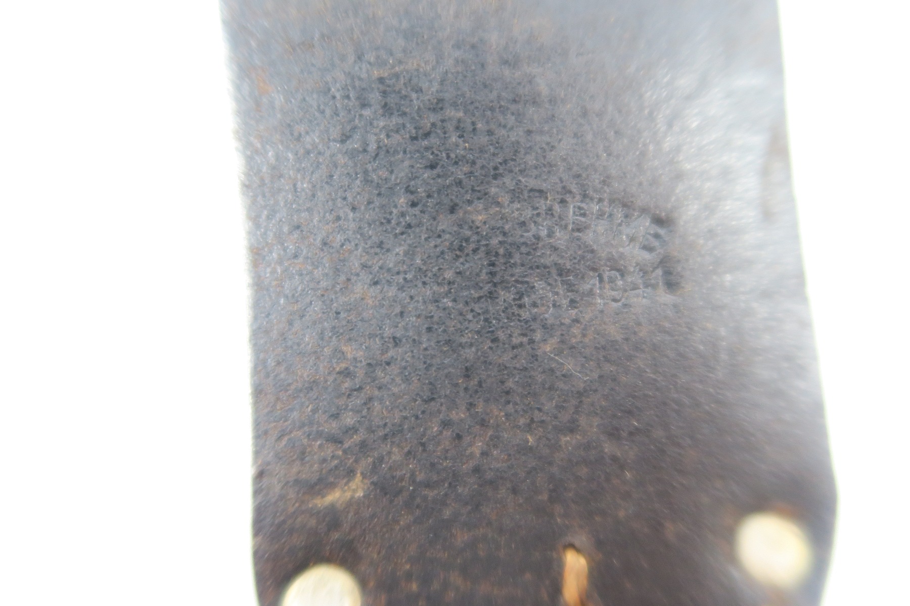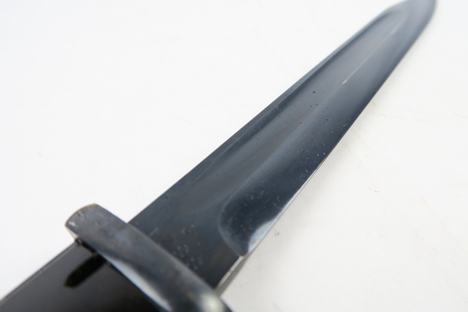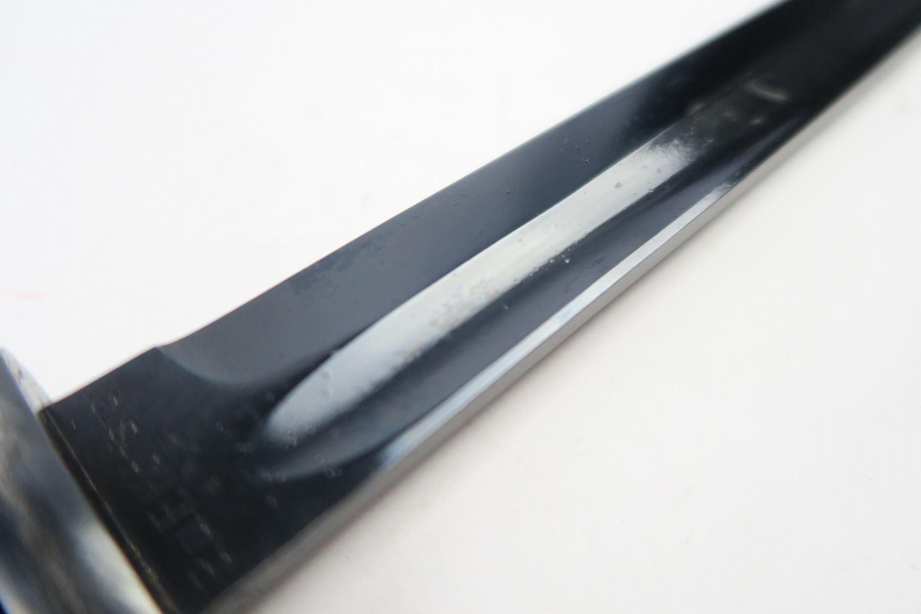 5/2/18 – This is an original K98 bayonet, all matching and complete with original scabbard, leather frog (dated 1941), and portepee. The bayonet handle is waffen WaA253 proof stamped with excellent original bluing and no cracks or chips in the bakelite. The blade is beautifully blued as well with “8821 c” serial number and a maker stamp on the reverse side. The scabbard is similarly excellent and serial numbered to match. The portepee is attached by a leather strap and is in great condition with minimal wear and some fading of the original yellow and white colors. Guaranteed all original.