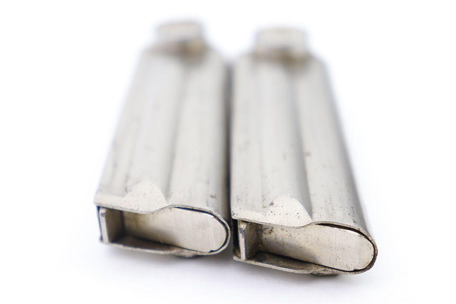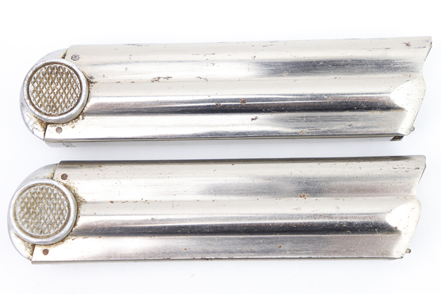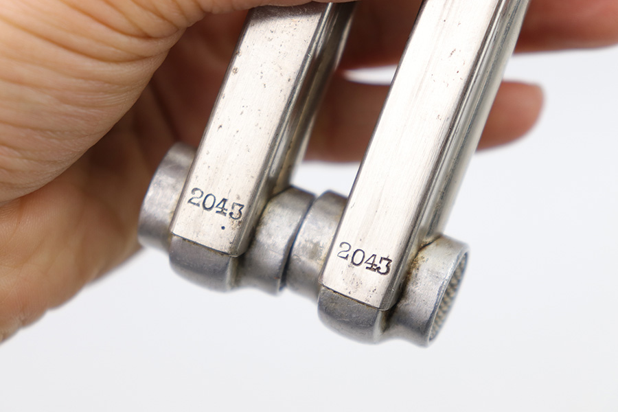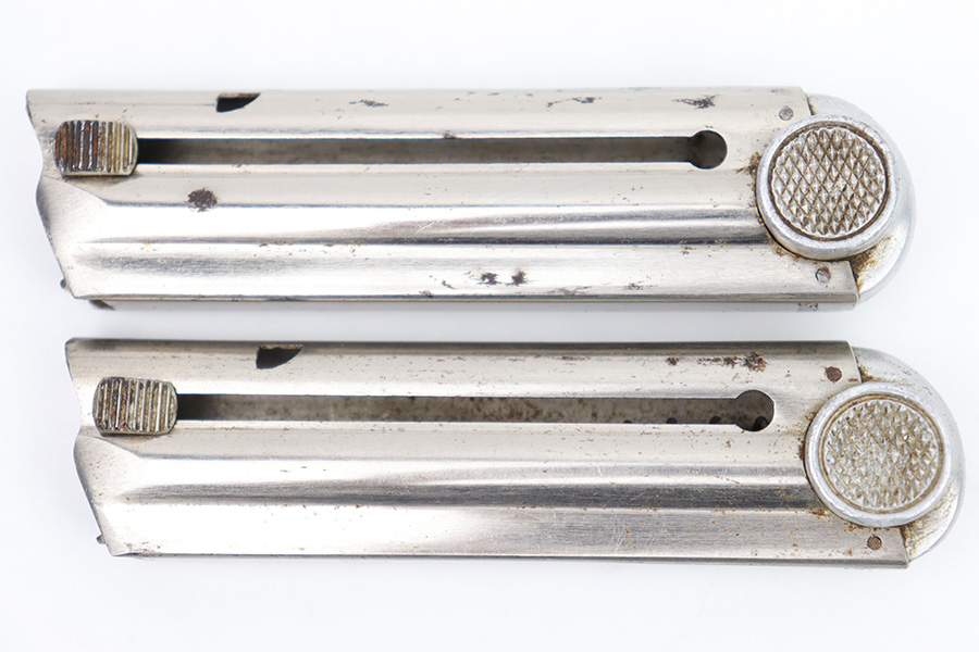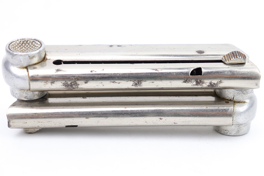 3/13/23 – These are two extremely rare WW2 production Japanese Baby Nambu magazines that are stamped with factory original matching serial numbers. The magazines are both early nickel with aluminum bases. The spine of each magazine is numbered 2043. There’s some mild surface patina on each magazine tube, but overall these are in excellent condition. Fully functional springs. Hard to believe these are still together as they left the factory together during the early years of WW2.