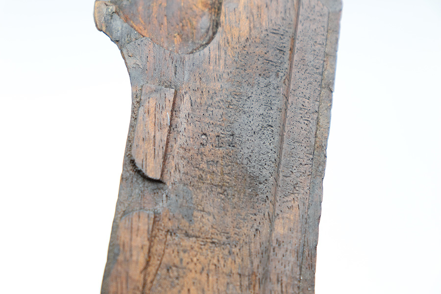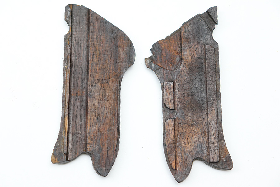 3/17/22 – This is an original pair of Luger grips from WW2. The wood grips are both in great shape with a nice exterior diamond pattern. No cracks or chips. The interior of each panel is numbered “311” with no other notable markings or stamps.