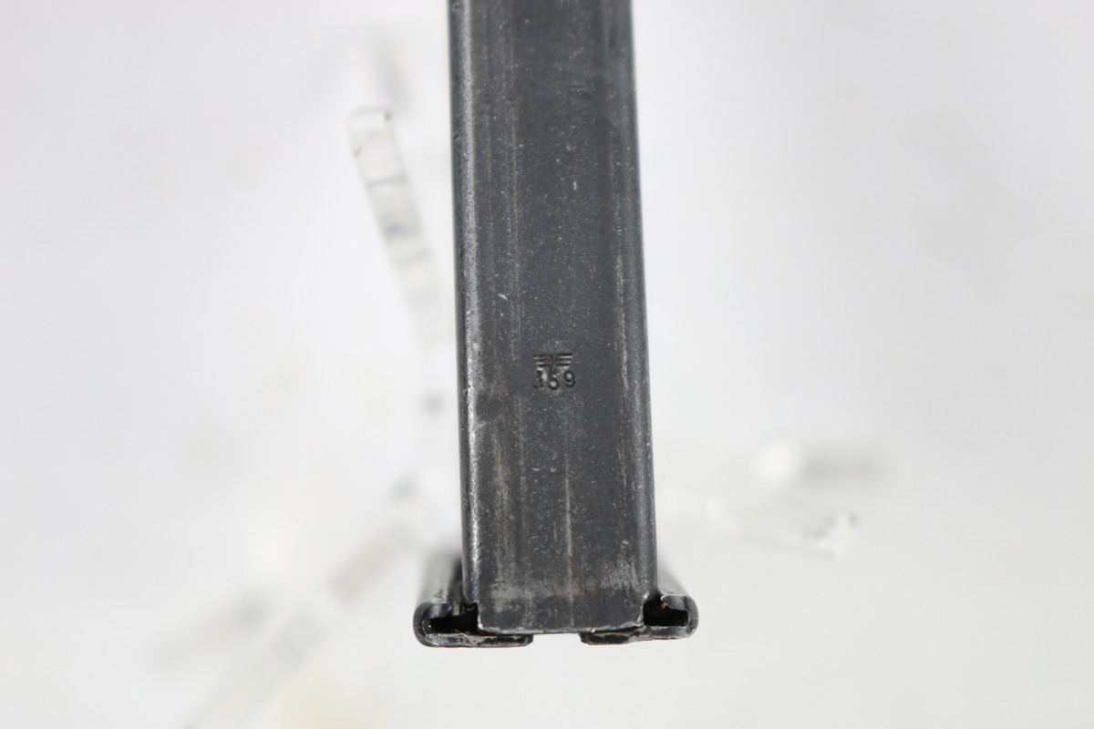 6/1/18 – This is a matched pair of early production Walther P.38 Magazines. The magazines are both double eagle/359 proof stamped on the spine, and serial numbered on the base “4562b”. The magazines are both guaranteed original, authentic, and fully functional. Both are in excellent condition.