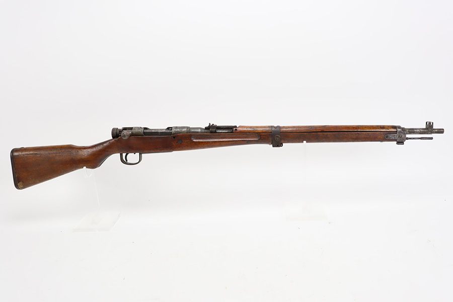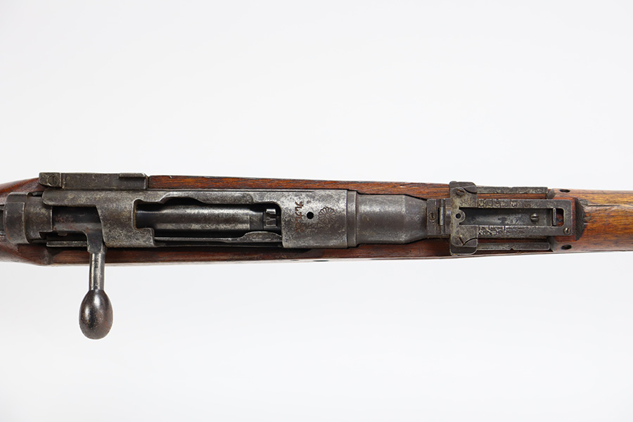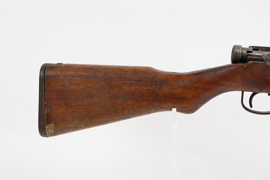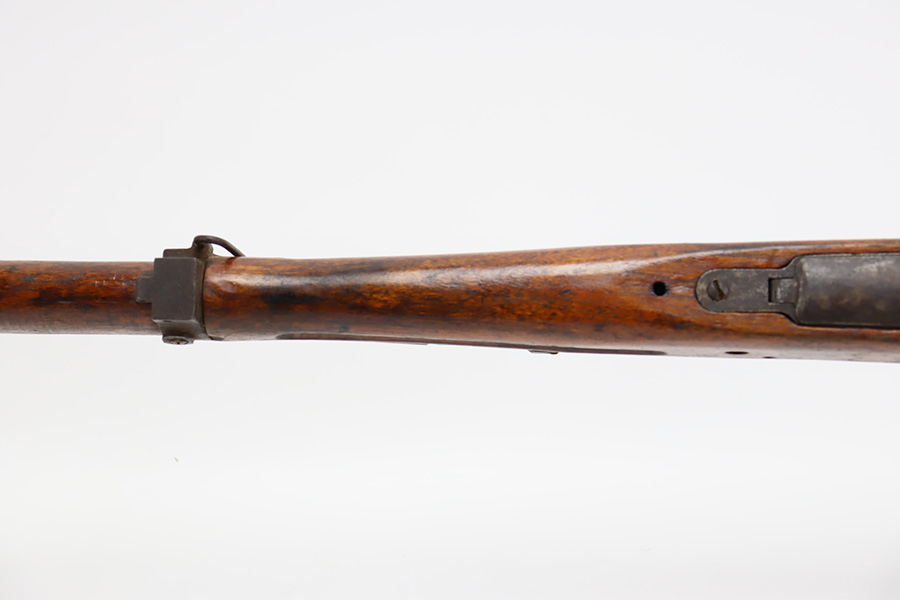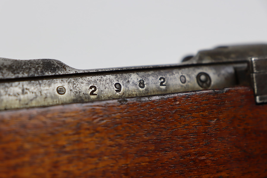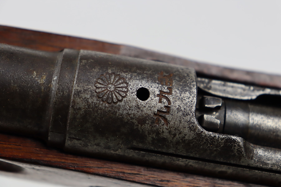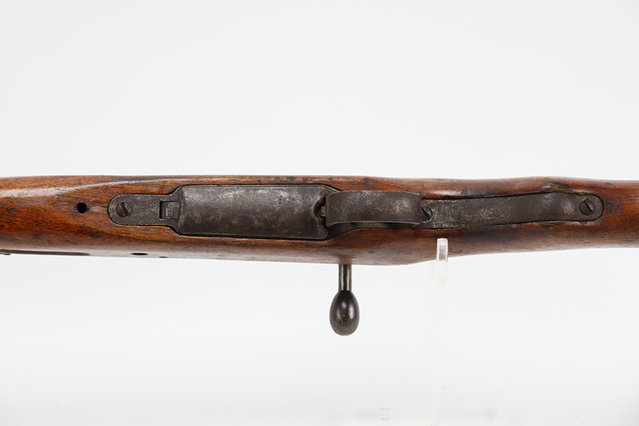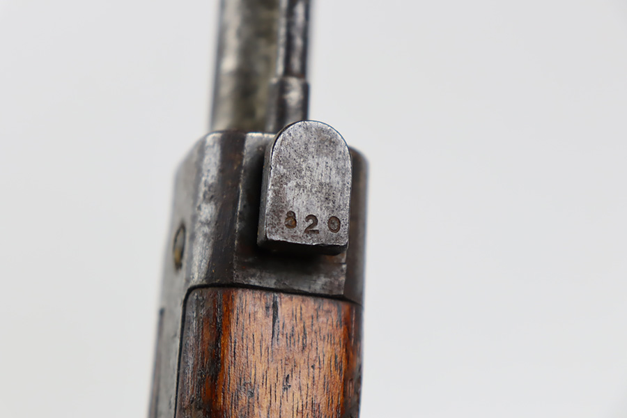 9/25/2023 – This is a great bringback example matching Type 99 used by Imperial Japan during WW2. Rifle is chambered in 7.7×58 and was a successor to the Type 38 rifle. The metal on the rifle is in fair condition with finish loss throughout after surviving the jungle conditions of Southeast Asia. The receiver is marked with the Royal Chrysanthemum and ” 9 9 Type” In Japanese with the “4th” series marking, serial number, and Nagoya Arsenal stamp. The rifle is matching throughout. The serial number “820” is stamped on the bayonet lug, receiver, bolt body, extractor, safety knob, and firing pin. The stock of the rifle is in excellent condition with dings and handling marks throughout. There are small pinpricks of corrosion throughout the metal of the rifle but none of it is deep. The chrome line bore is bright and in excellent condition with sharp rifling but slightly frosted. Rifle comes in a bringback box that was shipped to a GI’s family during the war.