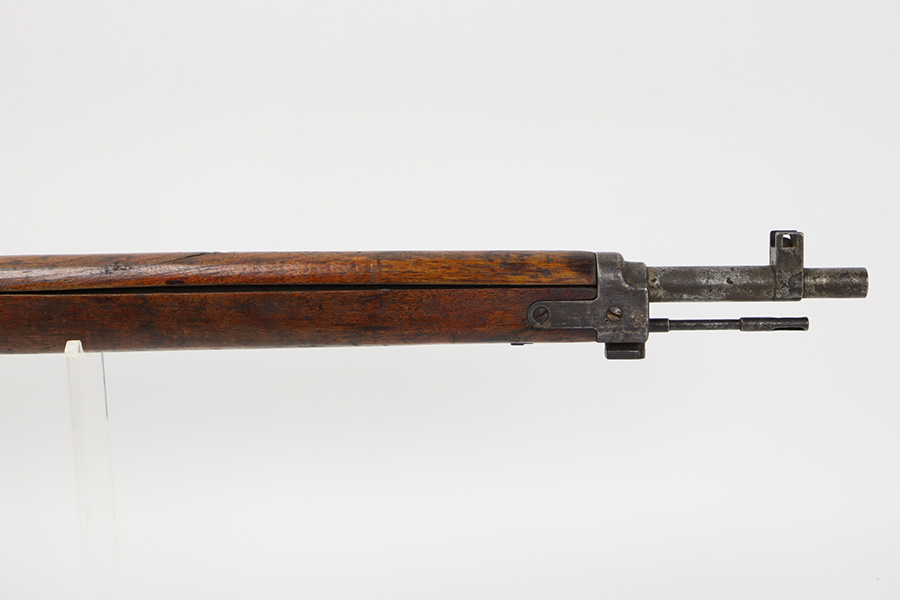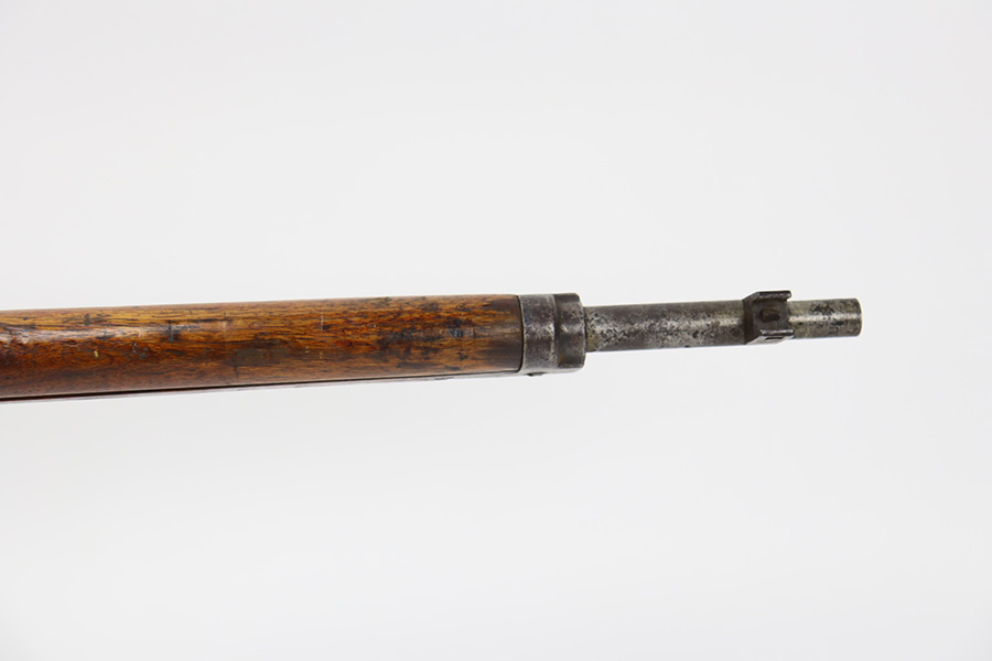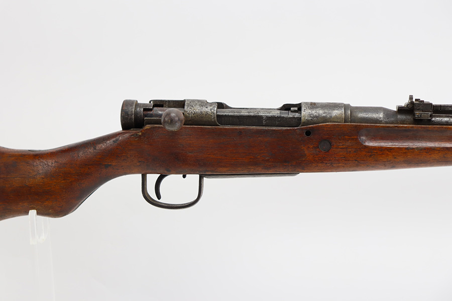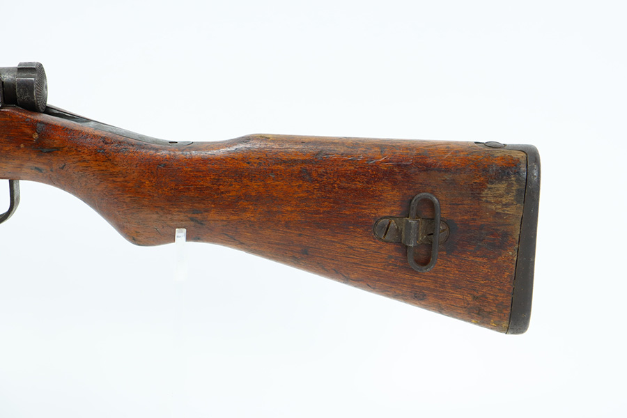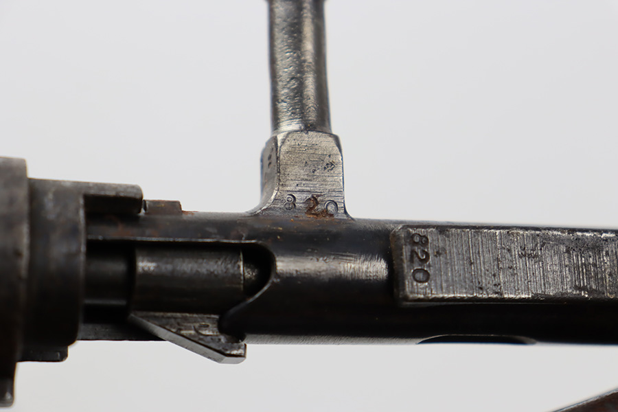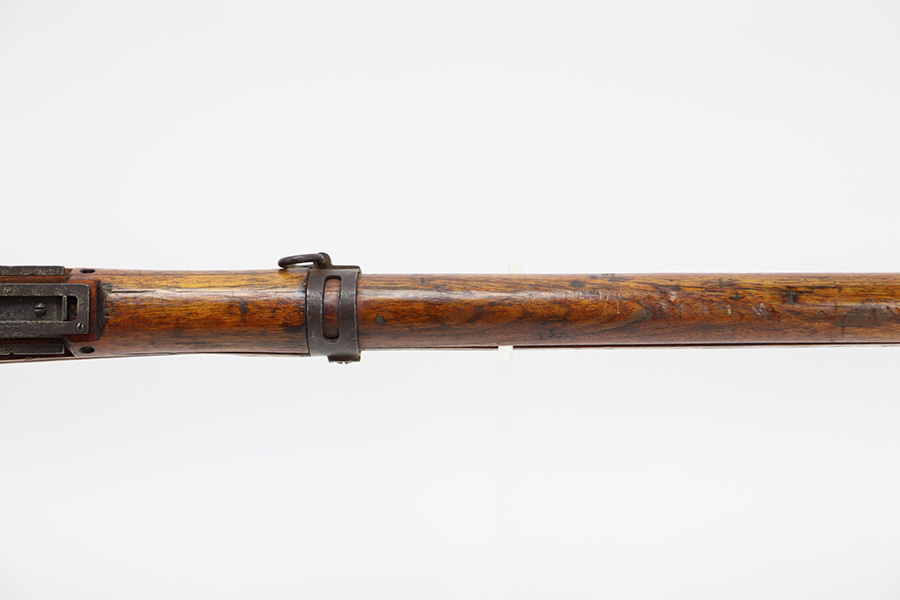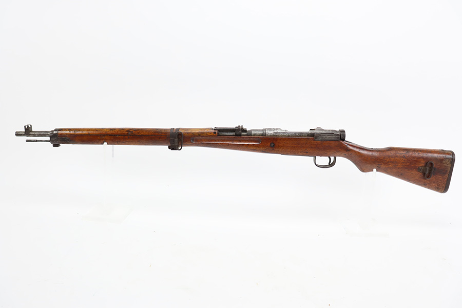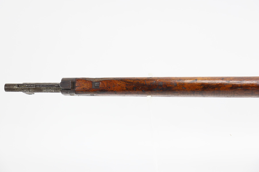 9/25/2023 – This is a great bringback example matching Type 99 used by Imperial Japan during WW2. Rifle is chambered in 7.7×58 and was a successor to the Type 38 rifle. The metal on the rifle is in fair condition with finish loss throughout after surviving the jungle conditions of Southeast Asia. The receiver is marked with the Royal Chrysanthemum and ” 9 9 Type” In Japanese with the “4th” series marking, serial number, and Nagoya Arsenal stamp. The rifle is matching throughout. The serial number “820” is stamped on the bayonet lug, receiver, bolt body, extractor, safety knob, and firing pin. The stock of the rifle is in excellent condition with dings and handling marks throughout. There are small pinpricks of corrosion throughout the metal of the rifle but none of it is deep. The chrome line bore is bright and in excellent condition with sharp rifling but slightly frosted. Rifle comes in a bringback box that was shipped to a GI’s family during the war.