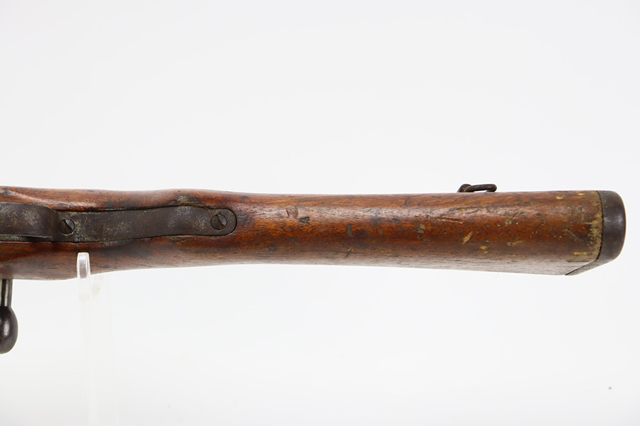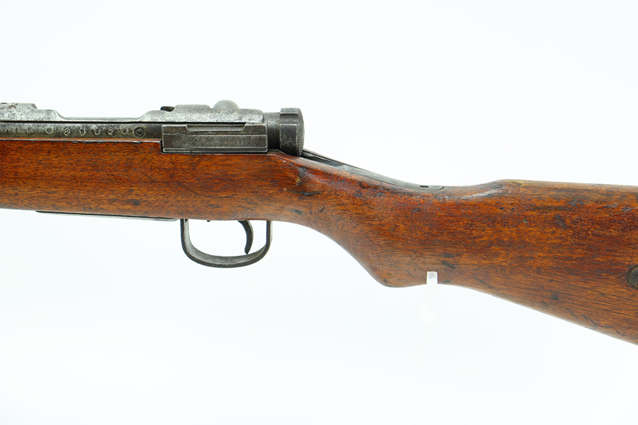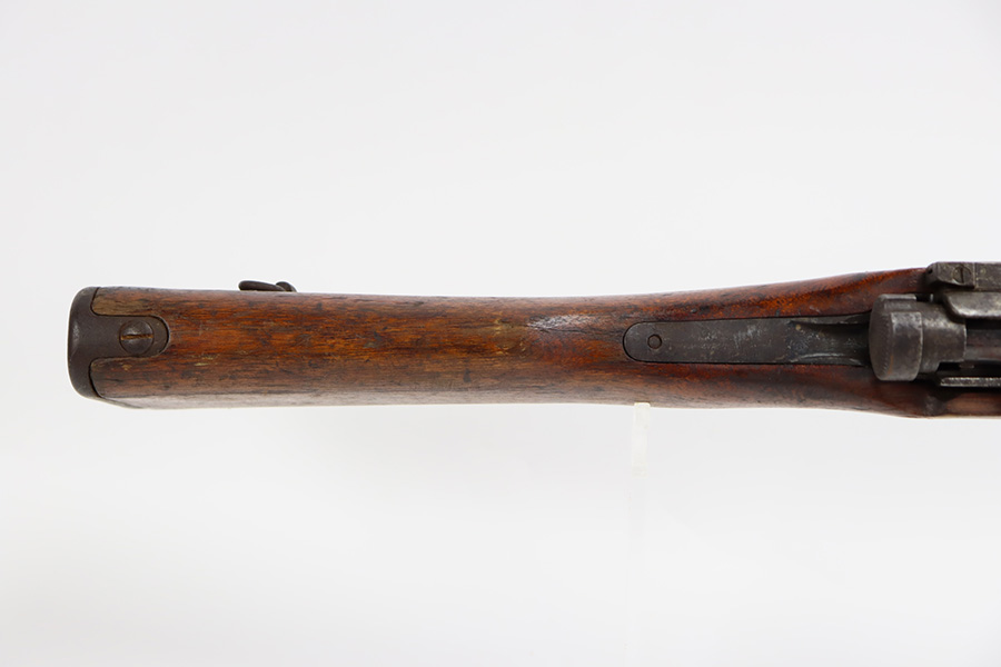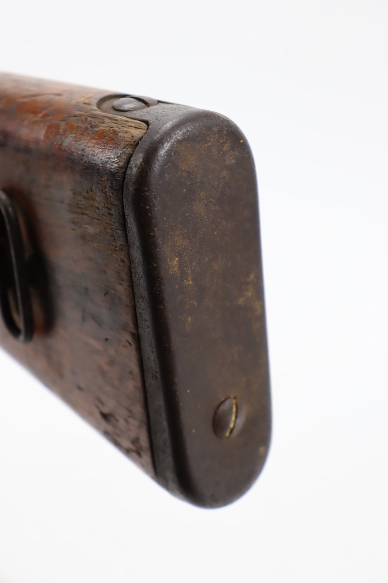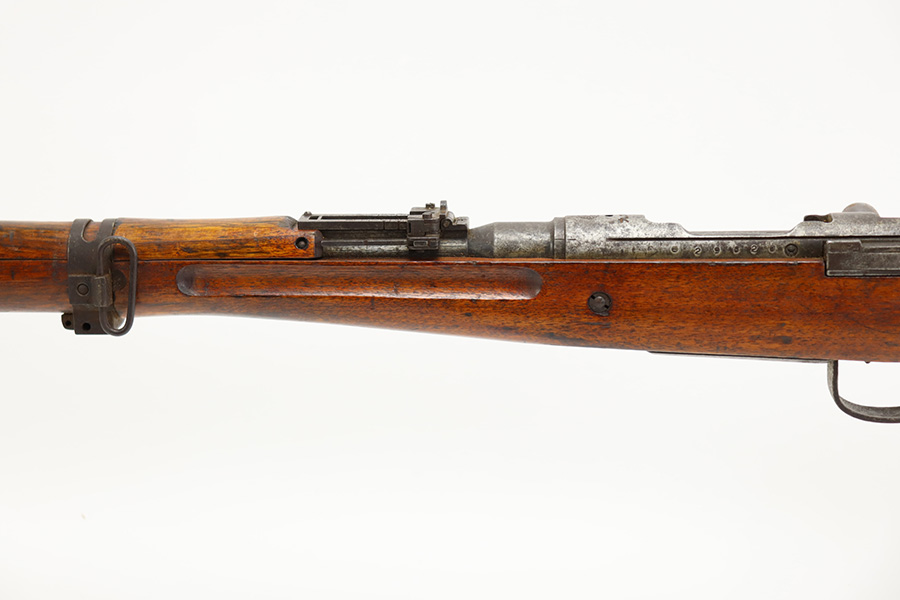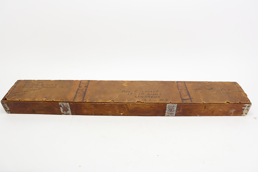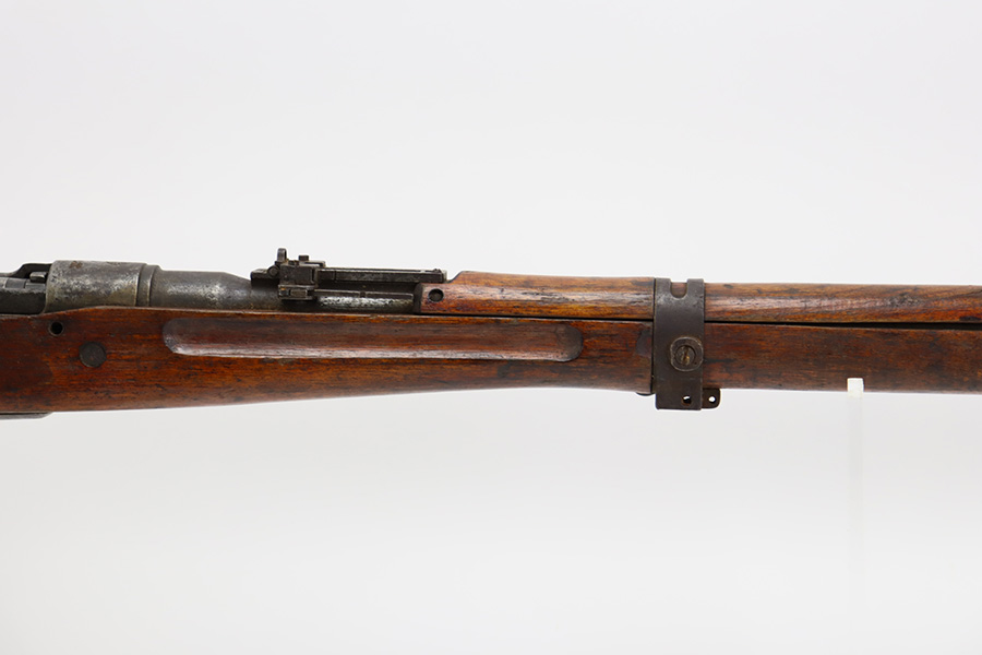 9/25/2023 – This is a great bringback example matching Type 99 used by Imperial Japan during WW2. Rifle is chambered in 7.7×58 and was a successor to the Type 38 rifle. The metal on the rifle is in fair condition with finish loss throughout after surviving the jungle conditions of Southeast Asia. The receiver is marked with the Royal Chrysanthemum and ” 9 9 Type” In Japanese with the “4th” series marking, serial number, and Nagoya Arsenal stamp. The rifle is matching throughout. The serial number “820” is stamped on the bayonet lug, receiver, bolt body, extractor, safety knob, and firing pin. The stock of the rifle is in excellent condition with dings and handling marks throughout. There are small pinpricks of corrosion throughout the metal of the rifle but none of it is deep. The chrome line bore is bright and in excellent condition with sharp rifling but slightly frosted. Rifle comes in a bringback box that was shipped to a GI’s family during the war.