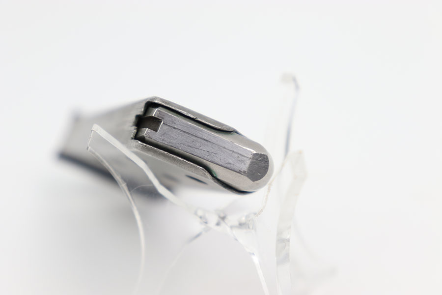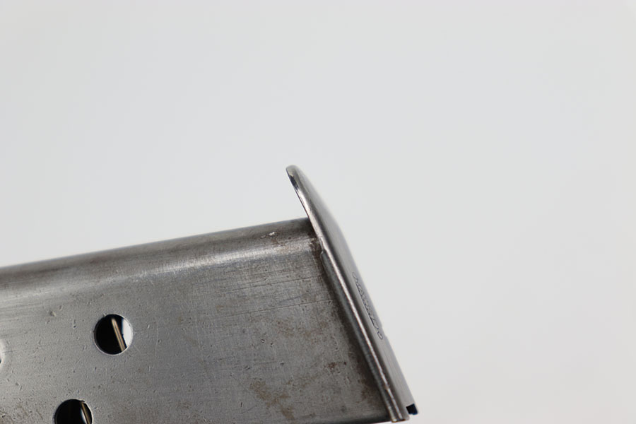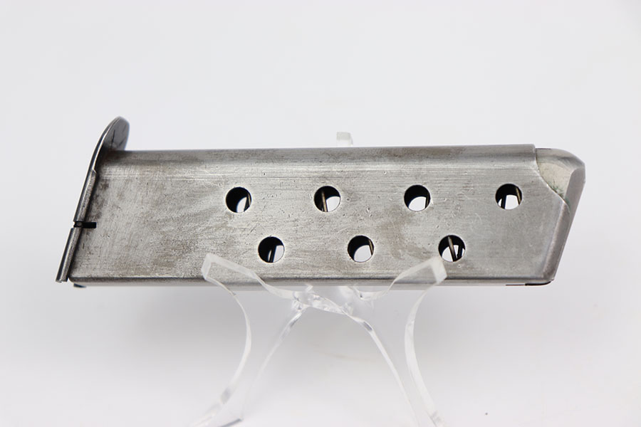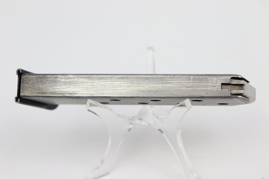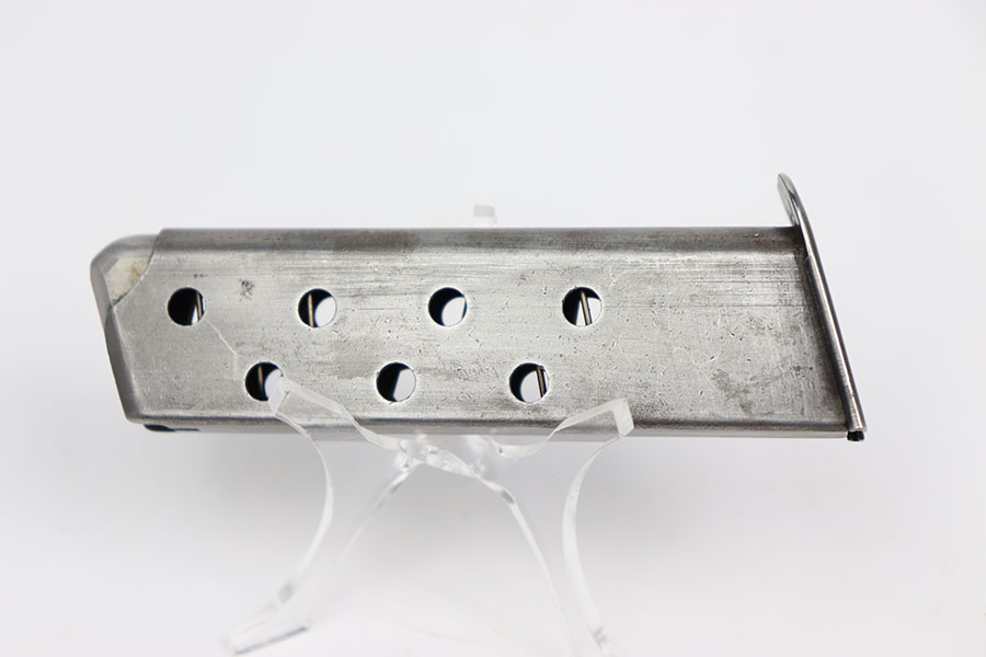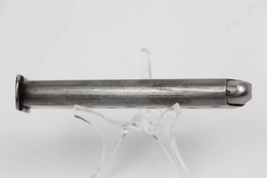 5/23/24 – This is an original, early WW2 production Mauser HSC pistol magazine. The magazine is in great condition with light surface patina on the tube and minimal finish loss on the base. The base is stamped with a Mauser banner. The tip of the base is very slightly bent but could easily be straightened. Strong, fully functional spring.