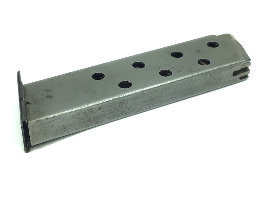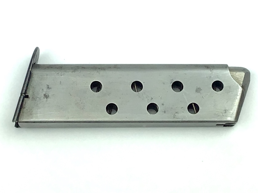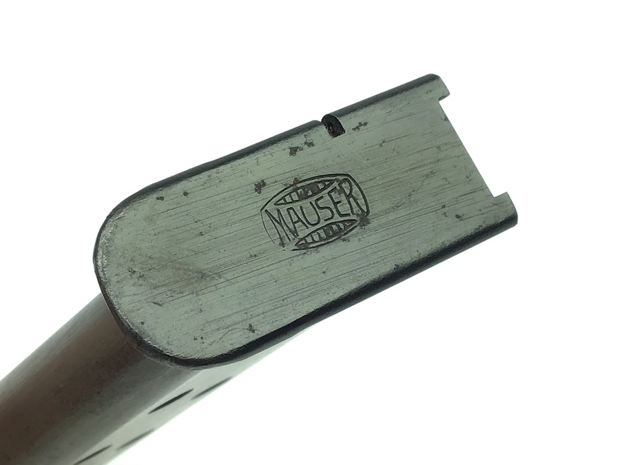 11/11/20 – This is an original, early/pre WW2 style HSc magazine. Excellent+ condition. The base is Mauser banner stamped. The frame has no rust or pitting. The spring is strong and fully functional. Very nice piece.