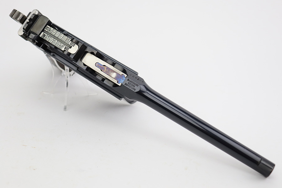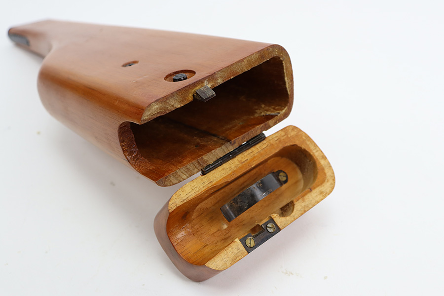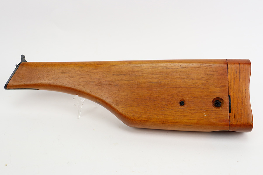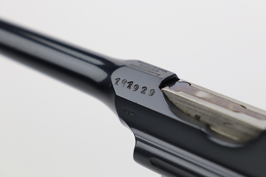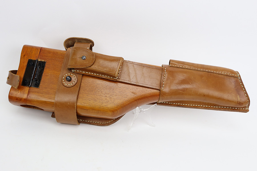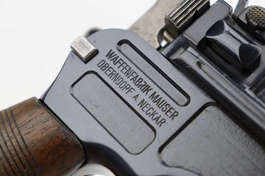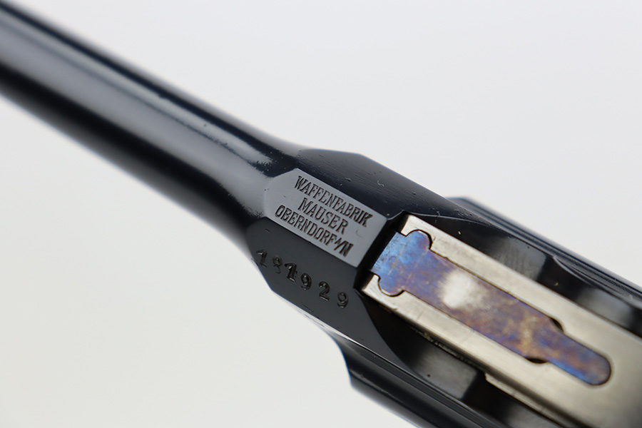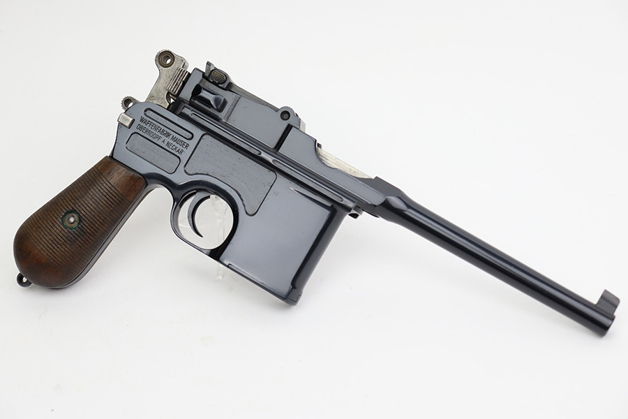 7/28/23 – This is an excellent example of a Mauser C96 sold in the commercial market during WW1. All matching with commercial proofs. Chambered in 7.63mm. Comes as a rig with an excellent reproduction wood stock and leather harness. The gun is beautiful restored and refinished with virtually no signs of wear. Fitted with slightly worn, period-correct, matching-numbered wood grips. Very nice bore with great rifling.