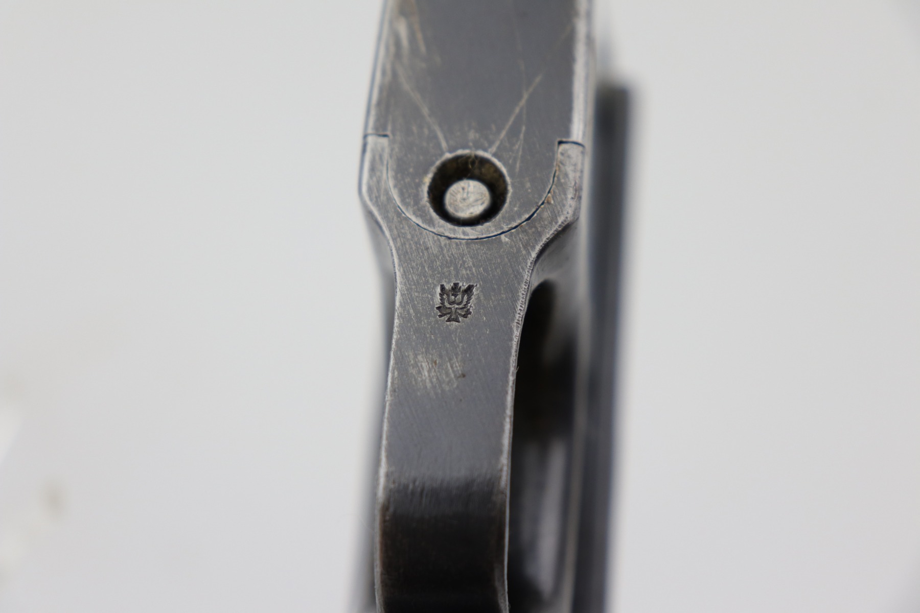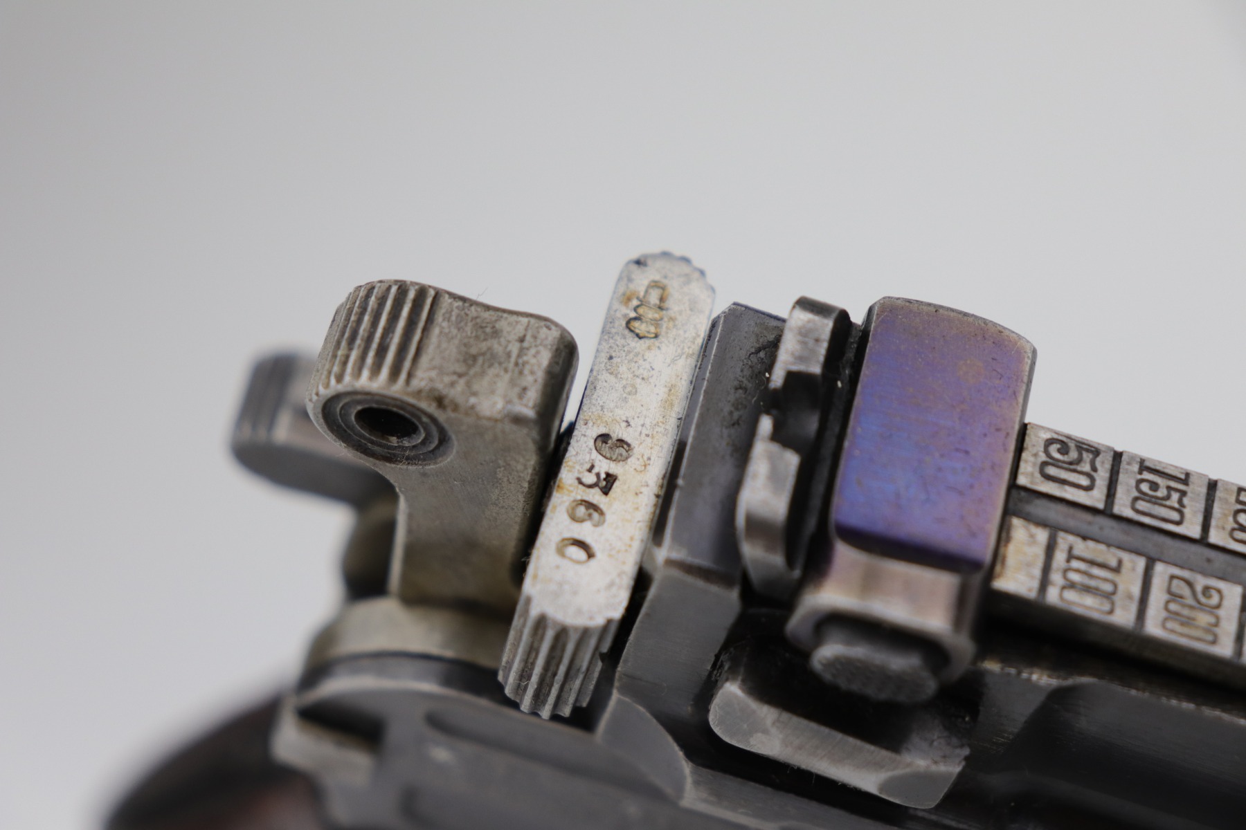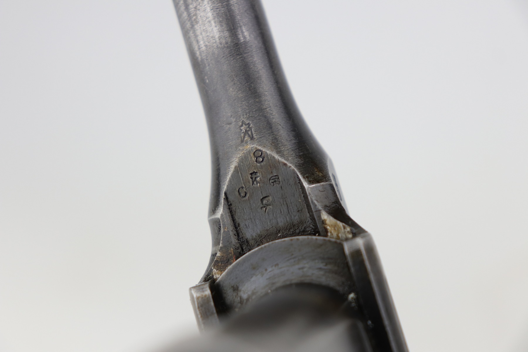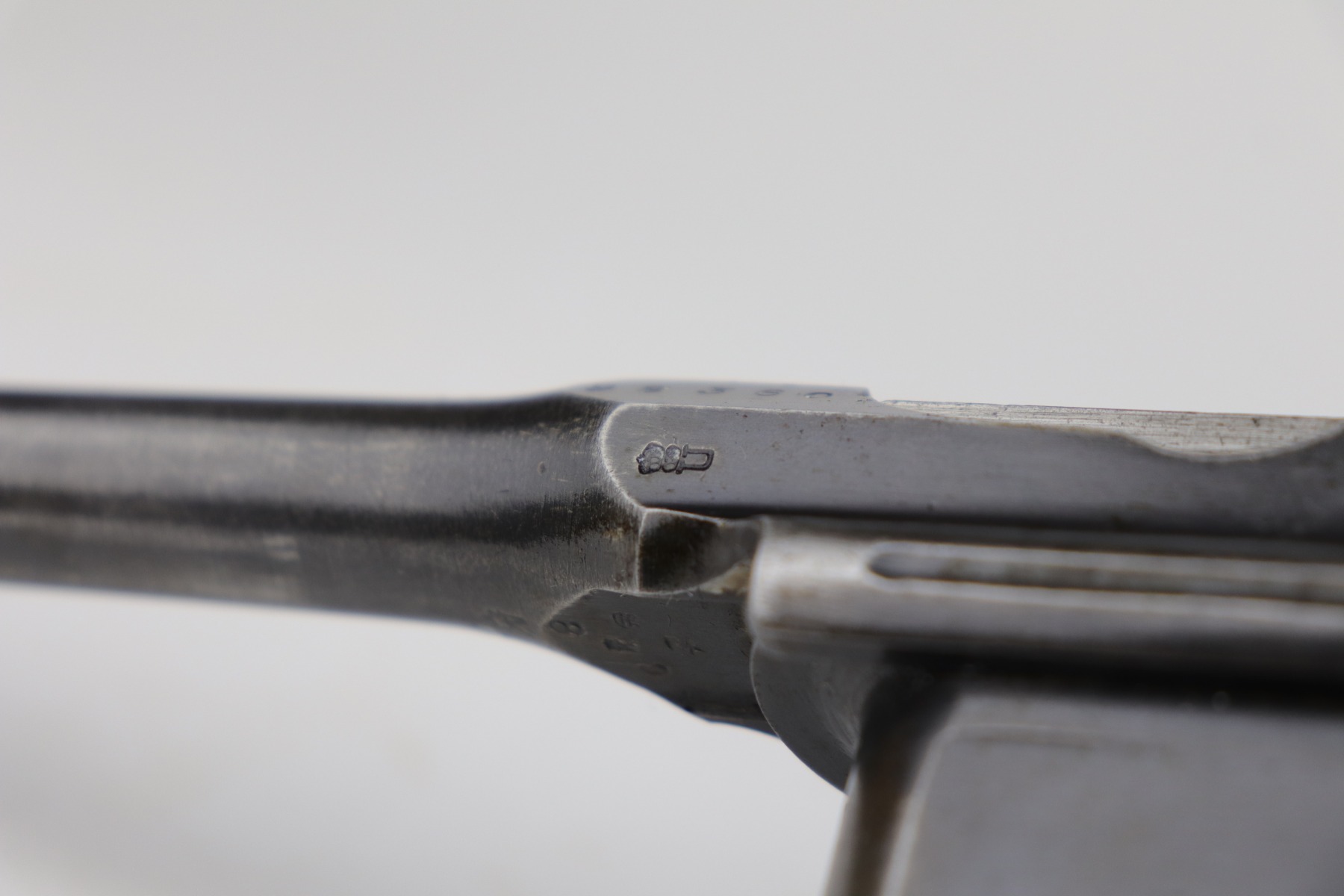 2/8/21 – This is a nice example of an all original ‘Red 9’ Mauser C96 Rig with stock and leather. Unlike its commercial counterparts, “Red 9” Broomhandles were chambered in the more common 9mm Para caliber, which was used by the German Army and were marked with a large 9 on the grips which was then filled with red or orange paint to help German soldiers differentiate its caliber from the standard .30 mauser cartridge. Only about 130,000 of these very collectible guns were made, with only about 100,000 being accepted by the army and issued to the troops. Considered to be a substitute for a light carbine, they became very popular in trench warfare and were used by some of the Germany’s elite crack troops. This one has retained roughly 85% of its bluing. Generally, there is minor wear on the high edges and thinning on the barrel and front edge of the frame. There is some light scratching on the underside of the frame. The grips are excellent and matching to the gun. The gun is all matching. Both the gun and stock are “Germany” export marked. The stock is matching to the gun. The stock has an Imperial proof and several markings that look like spades. It also comes with the original leather harness – the stitching on the back looks like it may have been repaired a long time ago. The rifling in the bore is worn and there is minor pitting throughout.