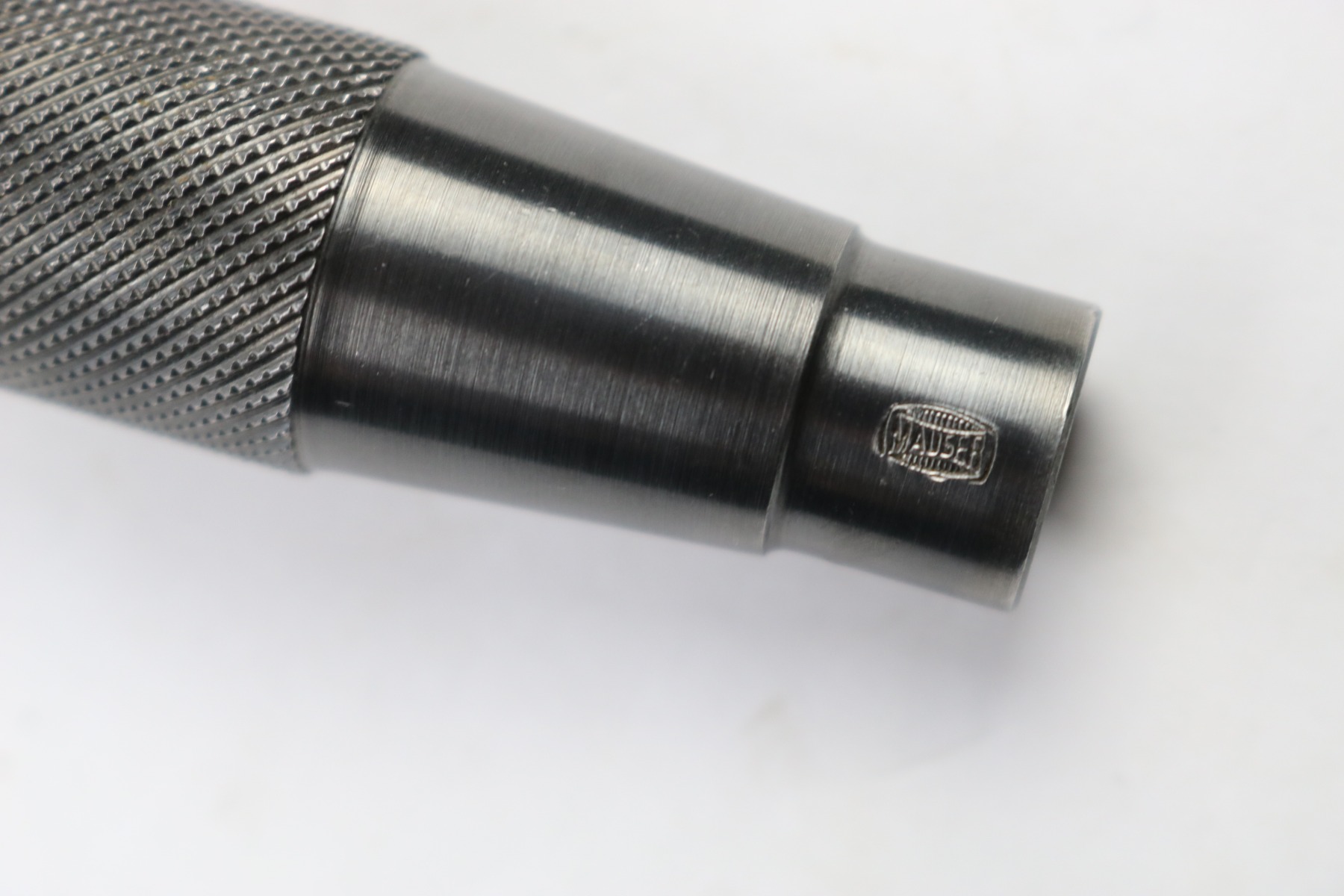 7/6/18 – This is a very rare Luger cleaning rod guide. My understanding is these were used by German police during WW2. Not sure if these were used during other time periods or if not just the police used them. There’s a Mauser banner logo on this piece, which makes me think this could be made for the commercial market. Overall it’s in excellent condition with Mauser factory original bluing. The muzzle is serial numbered “15” as well. Very cool piece and in minty condition. Guaranteed original and authentic.