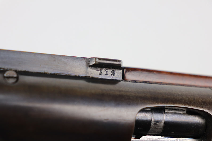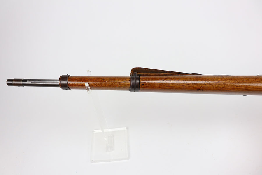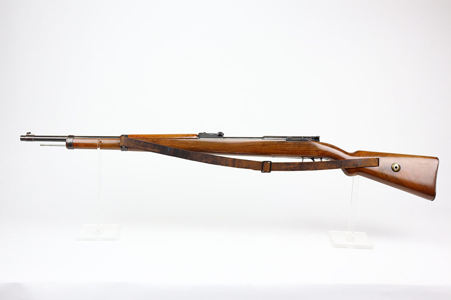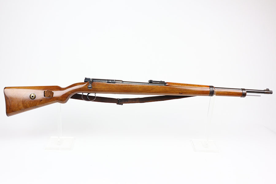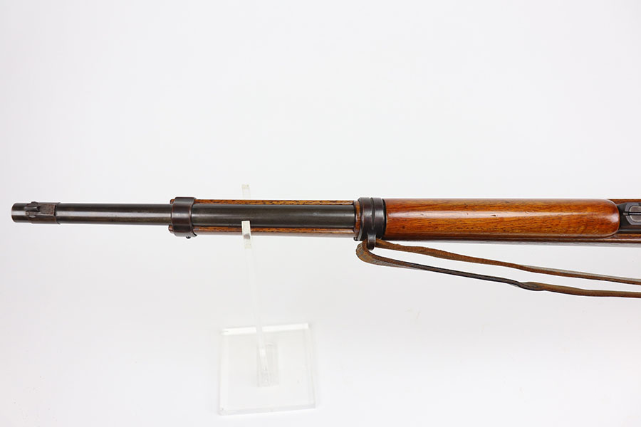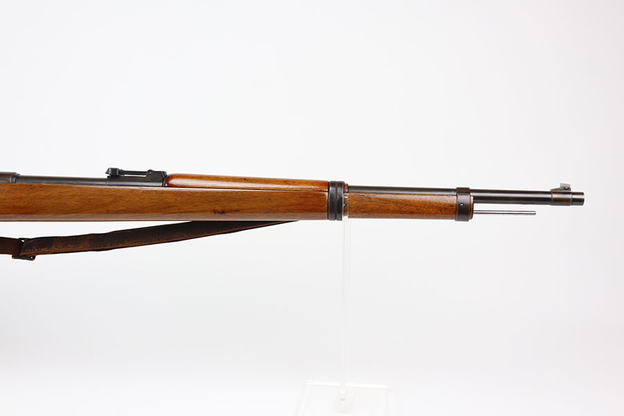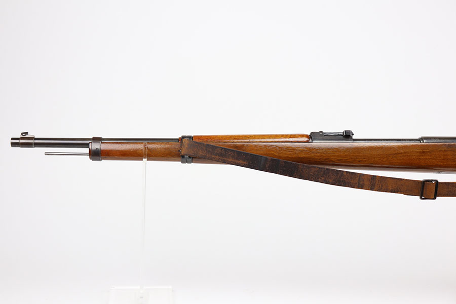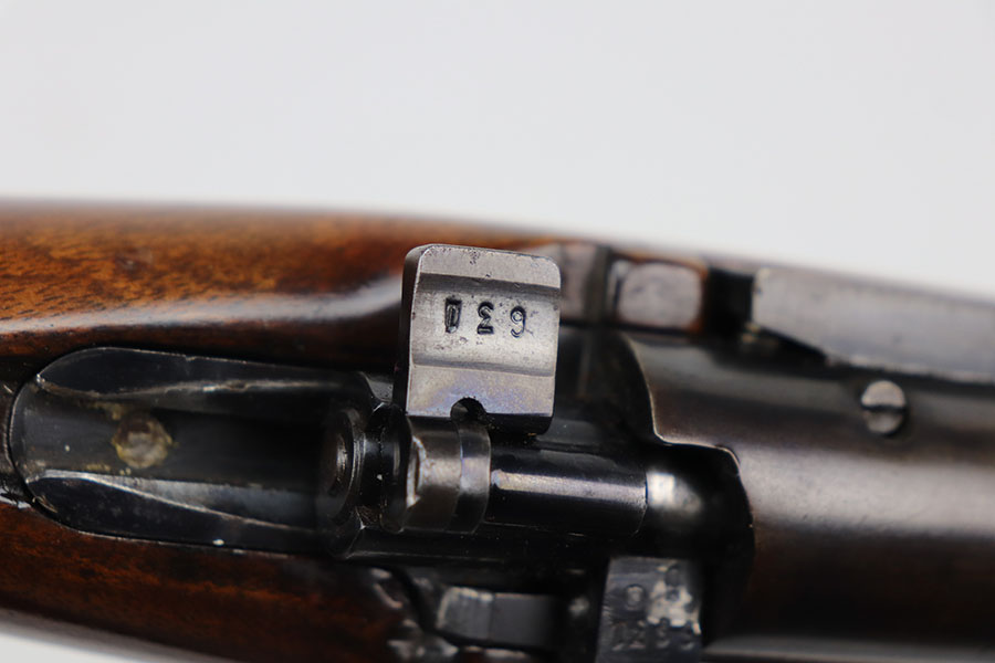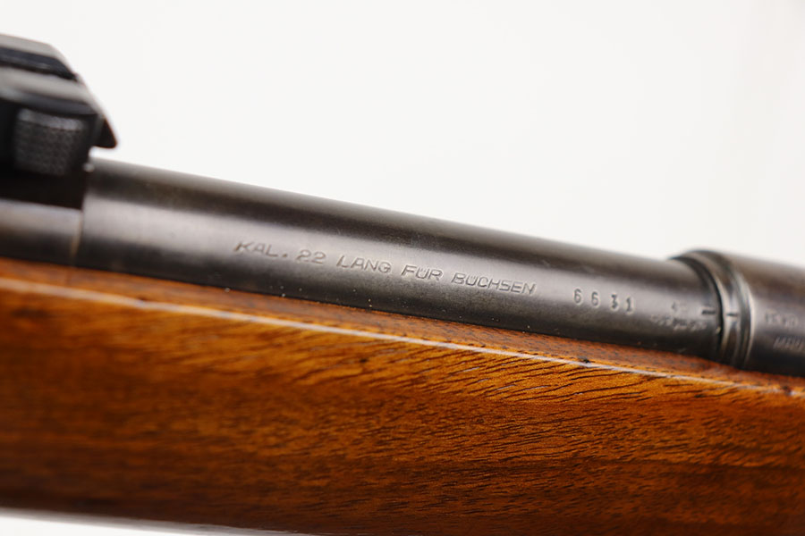 2/11/21 – This is a fairly uncommon Mauser DSM (Deutsches Sportmodell) training rifle. All matching and original rifle. Most of the bluing loss is on the trigger group, and receiver has some patina. Bore is minty in terms of rifling and brightness but there is a tiny ring near the muzzle that may be a slight bulge. The stock would be rated as excellent but it broke in transit to us and we had it professionally repaired, which can be seen around the wrist. Includes cleaning rod and sling.