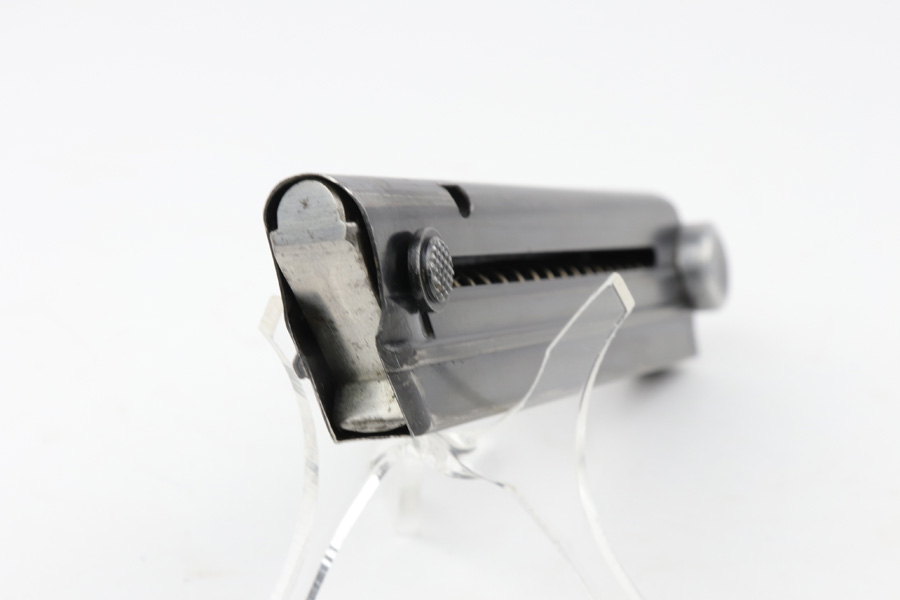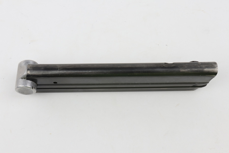 8/6/19 – This is an original Mauser Luger magazine with an eagle/63 military proof stamp on the base. The base is also serial numbered 4116 with an “L” suffix, and “+” sign, making this the spare magazine. Overall this magazine is excellent with minimal bluing loss. Also has a strong fully functional spring. All original and authentic.