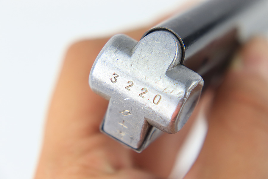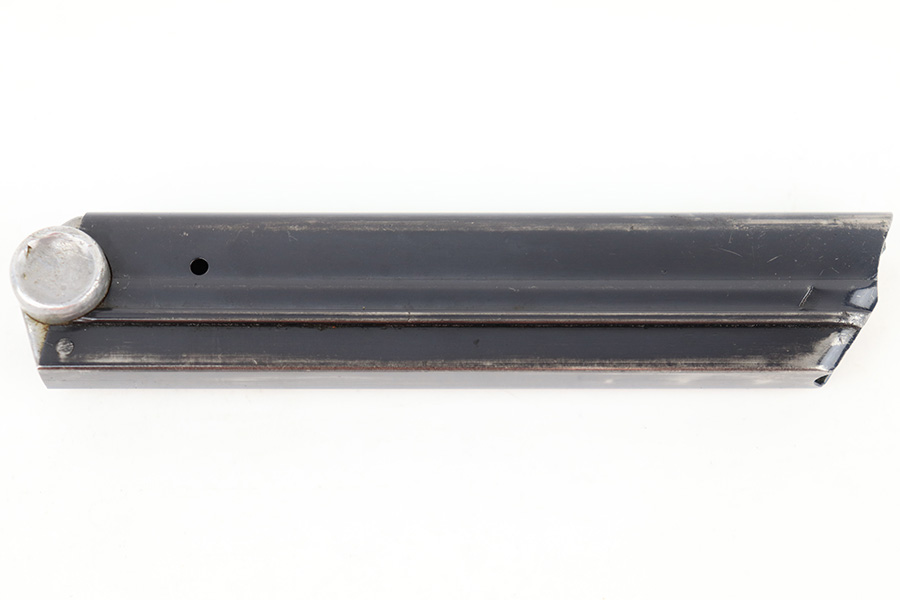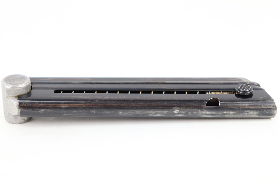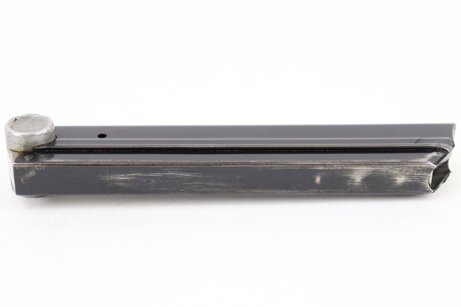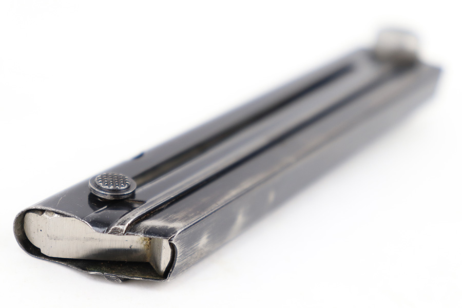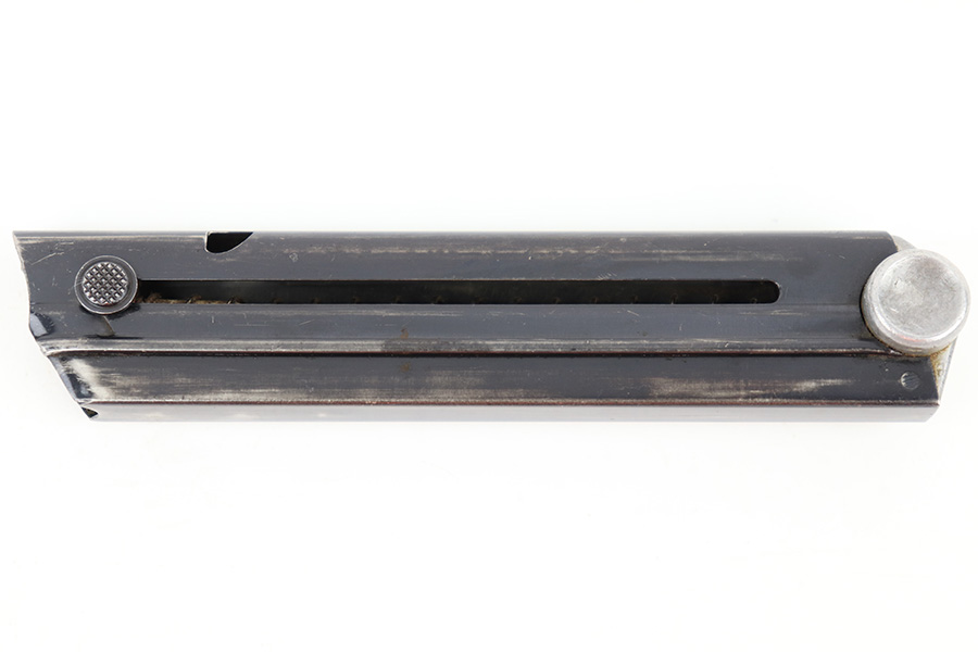7/25/23 – This is an original Mauser Luger magazine from WW2. The magazine has a blued tube with some mild finish loss and thinning but no rust or pitting. The aluminum base is serial numbered 3220o with a plus sign and eagle 63 military proof stamp. The spring is strong and functional. A very nice, straightforward example.