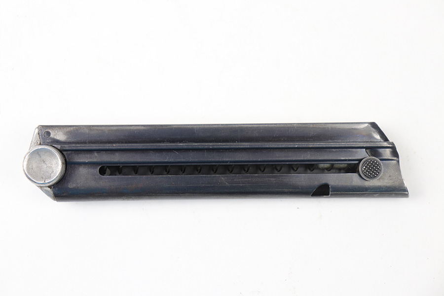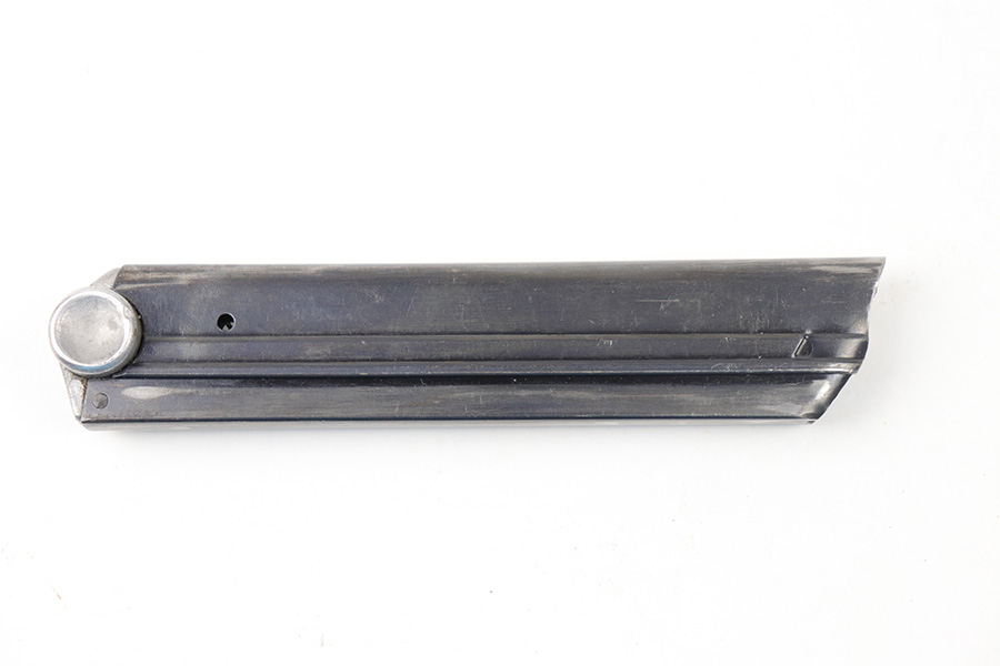 8/27/21 – This is an original Mauser eagle 63 luger magazine. Excellent blued finish and a strong, functional spring. The base is serial numbered 2778 X with a plus sign and eagle 63 proof stamp.