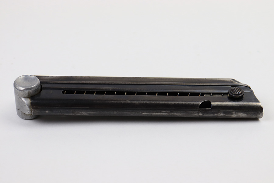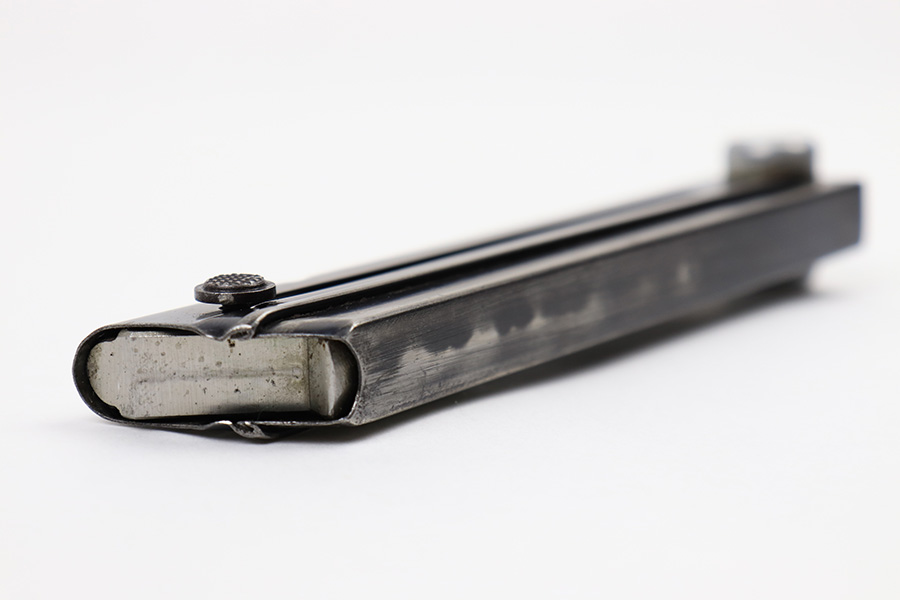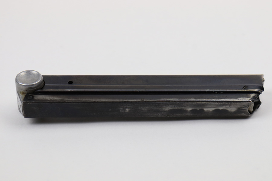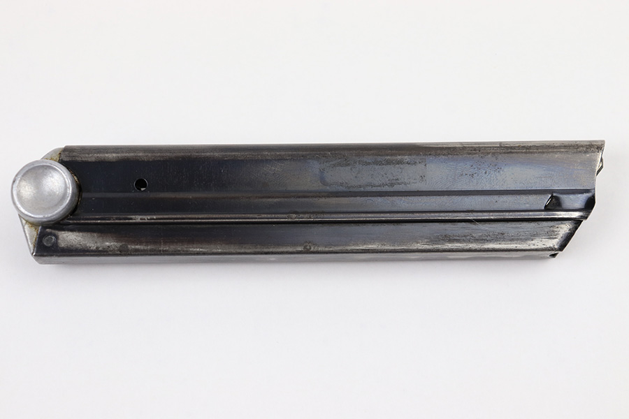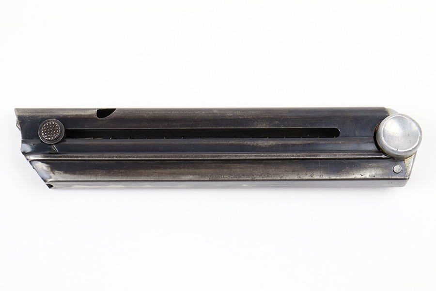 7/1/22 – This is an original Mauser Luger magazine from WW2. The magazine base is serial numbered 4743u with a “+” sign and eagle 63 proof stamp underneath. The blued tube has some minor finish loss but no rust or pitting. The spring is strong and fully functional.