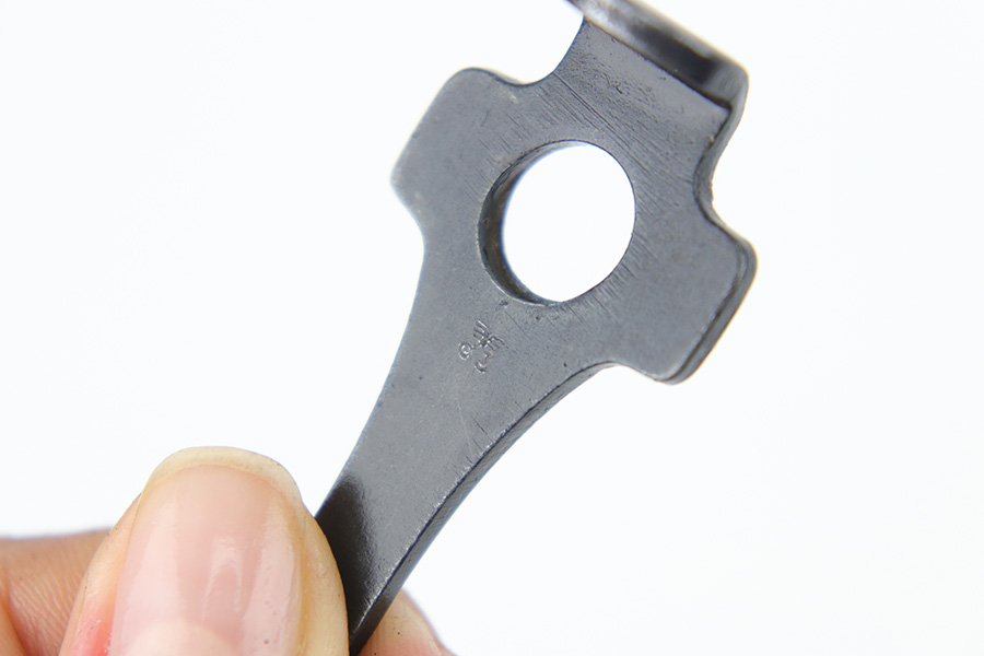 4/4/23 – This is an original Mauser Luger tool from WW2. The tool has a stick winged eagle 63 proof stamp on the front, and no other markings. Excellent overall condition with nice dark blued finish throughout.
