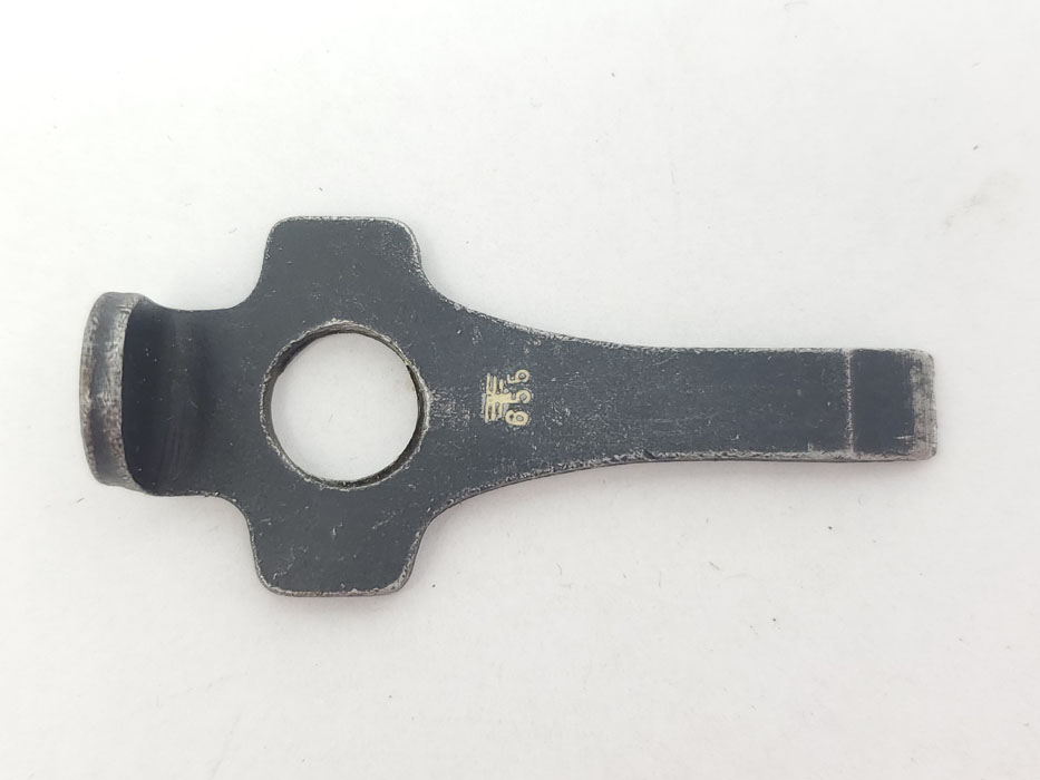 5/26/20 – This is an original Mauser eagle 655 military proof stamped luger takedown tool. Used as a speed loading device and a takedown assistance piece. Strongly stamped with an eagle 655 military proof on the front of the tool. Minimal wear and all original.