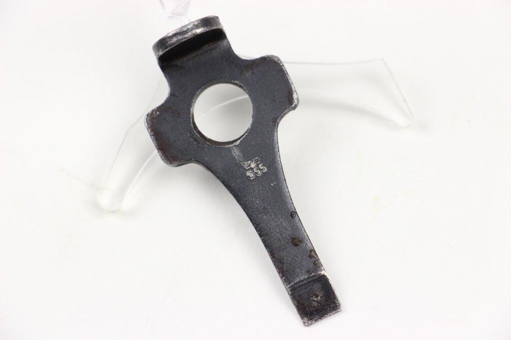 4/22/24 – This is an original Mauser Luger tool from WW2. The tool is stamped with a stick winged eagle 655 military proof stamp. This was used during later wartime Luger production and is often found paired with Black Widow Lugers. The tool retains most of the original blued finish but there are spots of finish loss and dark patina, as shown. Very good overall condition with a strongly struck proof stamp.