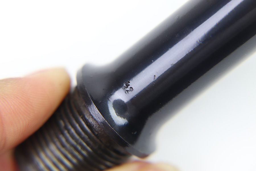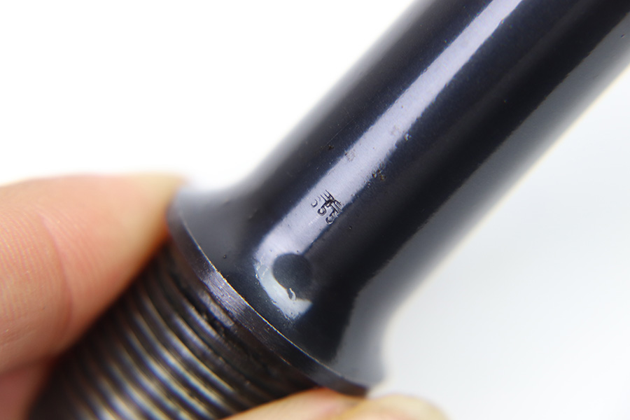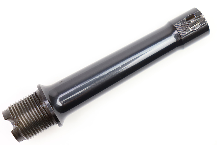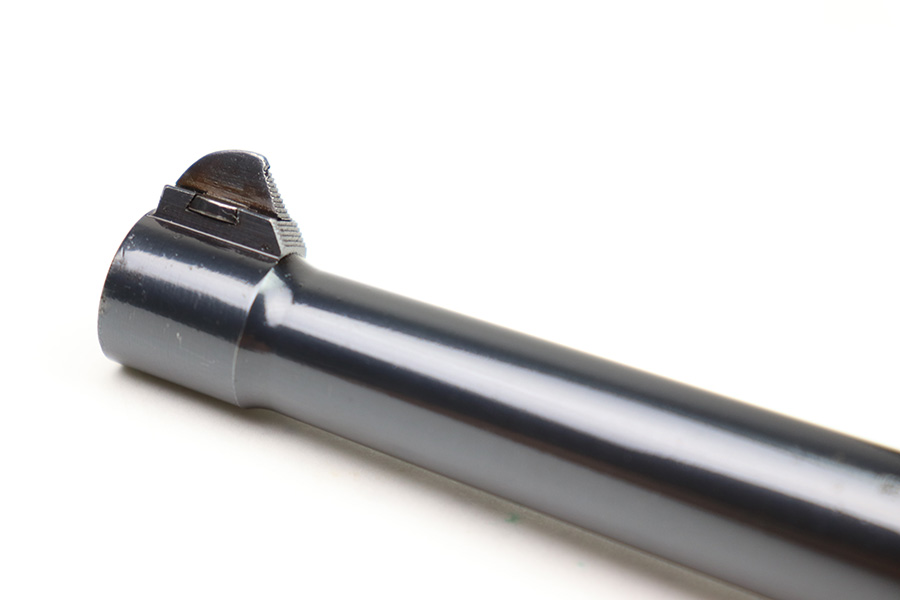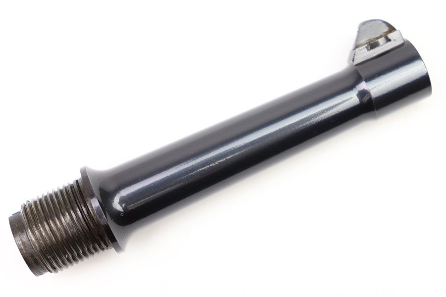 10/20/22 – This is an original, rare variation field replacement designated Mauser Luger barrel from WW2. The barrel is stamped with a “42” code (armorer replacement code) on the underside of the exterior, and Mauser eagle 655 military acceptance proofed. The finish is excellent throughout the barrel with very little to no finish loss. The bore is similarly excellent and minty with no signs of use. An excellent example of a rare, desirable part.