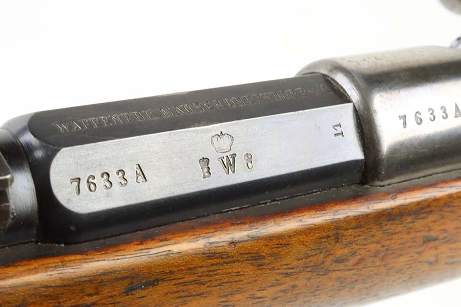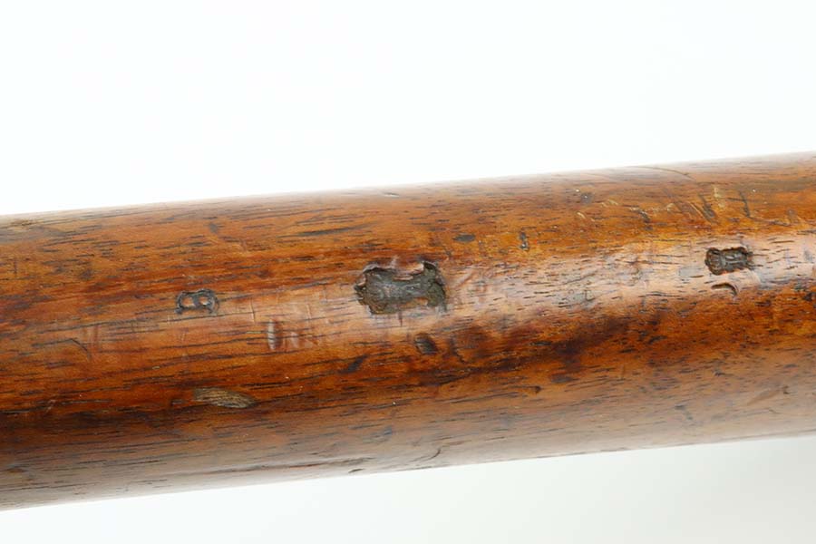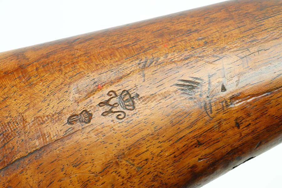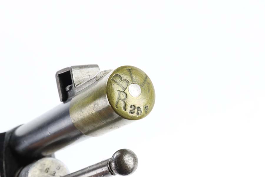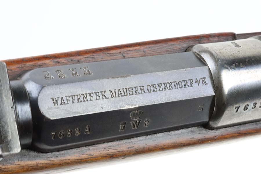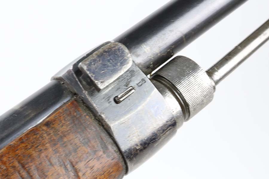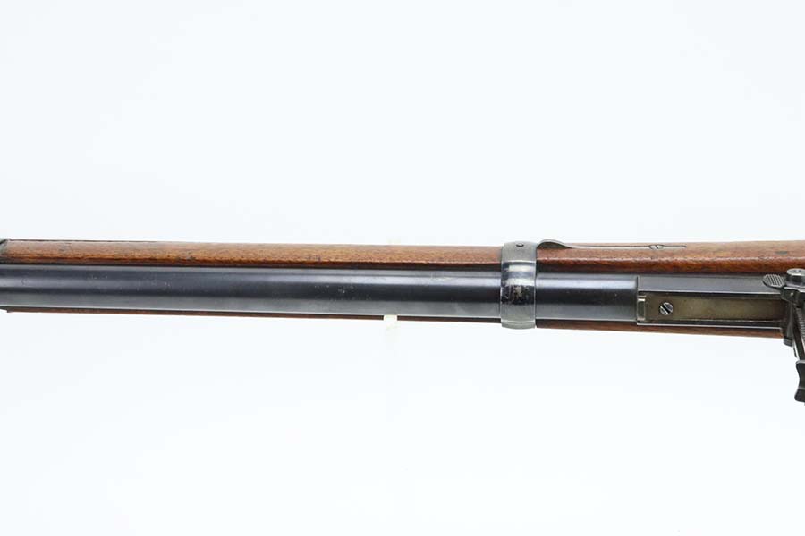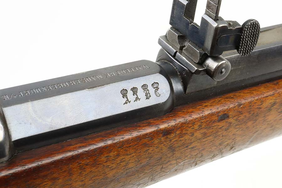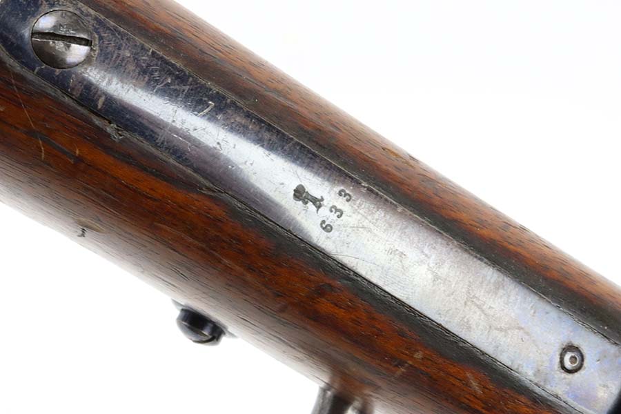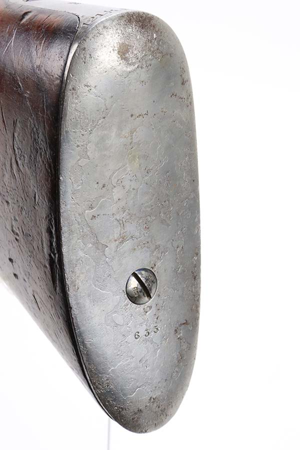 3/27/24 – This is a very nice example of a Mauser Gewehr 71/84. This was the successor to the Model 1871. By altering the stock and action configuration it was possible to adapt the original platform for the use of the Austrian-designed, Kropatschek-style, tubular magazine. Operating the bolt depressed and raised a lifter/carrier that efficiently loaded cartridges into the chamber from the under-barrel magazine. The bolt head itself was redesigned. Now recessed, the extractor was also re-sited because of the altered mechanism. Like most other repeaters of the period, the Infanterie-Gewehr Modell 1871/84 as it was designated, incorporated a cut-off that would disable the carrier and allow the rifle to be fired single-shot. Sights on the 71/84 were a blade front that was drift-adjustable for windage and a ladder-style rear, graduated to 1,600 meters. This one is entirely matching, down to the screws. Unit marking on the butt plate. Its original finish rates about 90% with finish loss on the barrel bands and some areas of light scratchy wear here and there. Very nice stock. Great bore for its age. Comes with a brass muzzle cap.