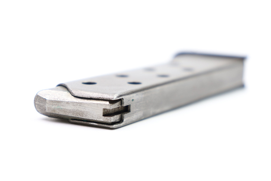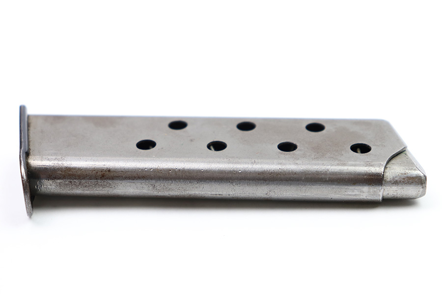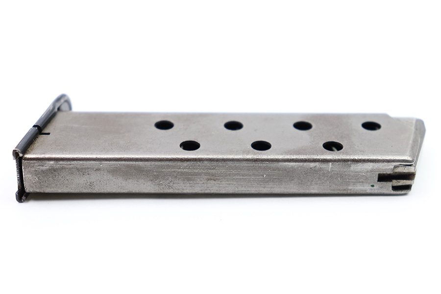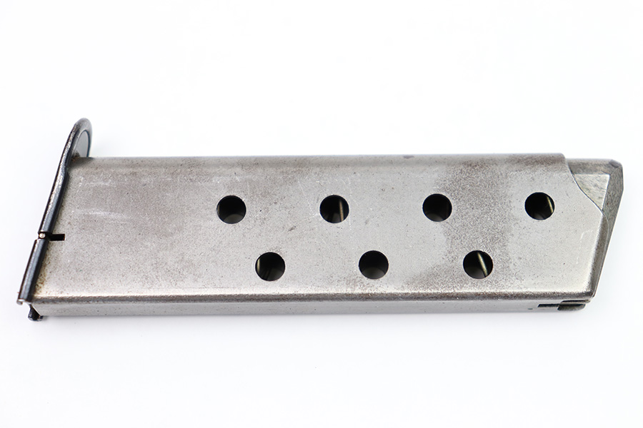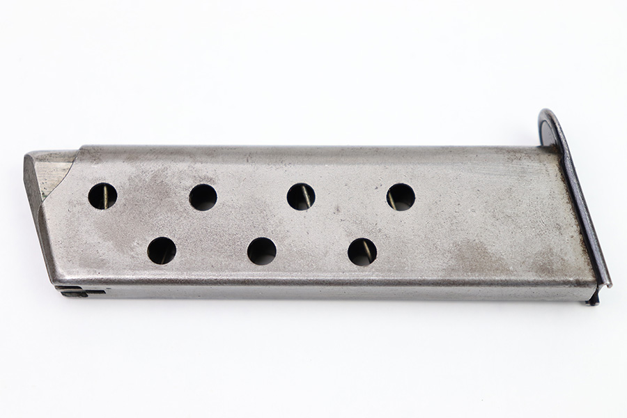 9/1/22 – This is an original Mauser HSC magazine from WW2. The magazine has some mild surface patina on the tube, but overall the magazine is in great condition. The spring is strong and fully functional and the blued base is excellent. Wartime production with a half-moon indent on the base.