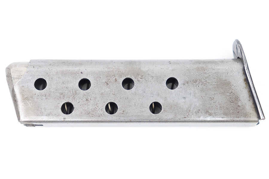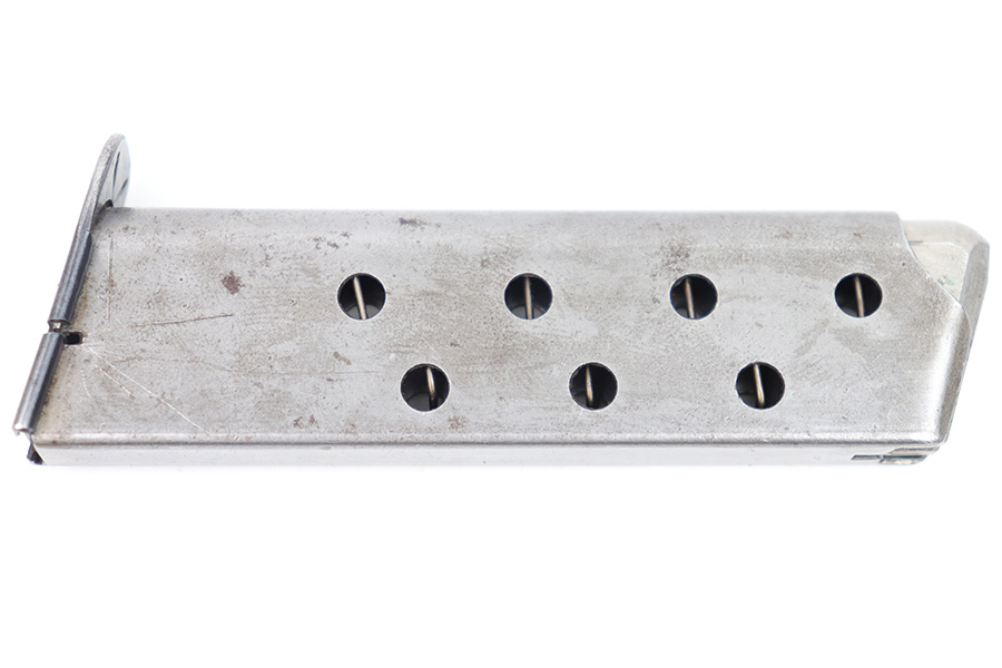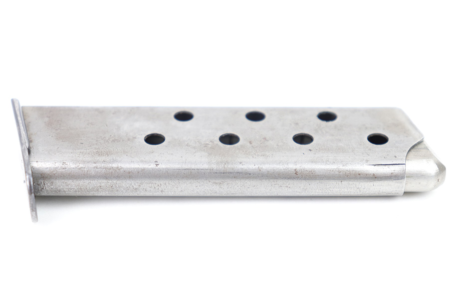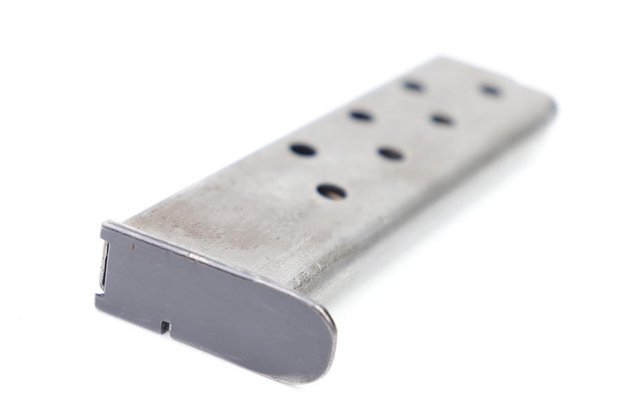 2/8/23 – This is an original Mauser HSc magazine from WW2. The magazine is in great condition with a phosphate tube and blued base. The base is wartime production with no markings or stamps. The tube has some mild surface patina and a few scratches as shown. Fully functional spring.