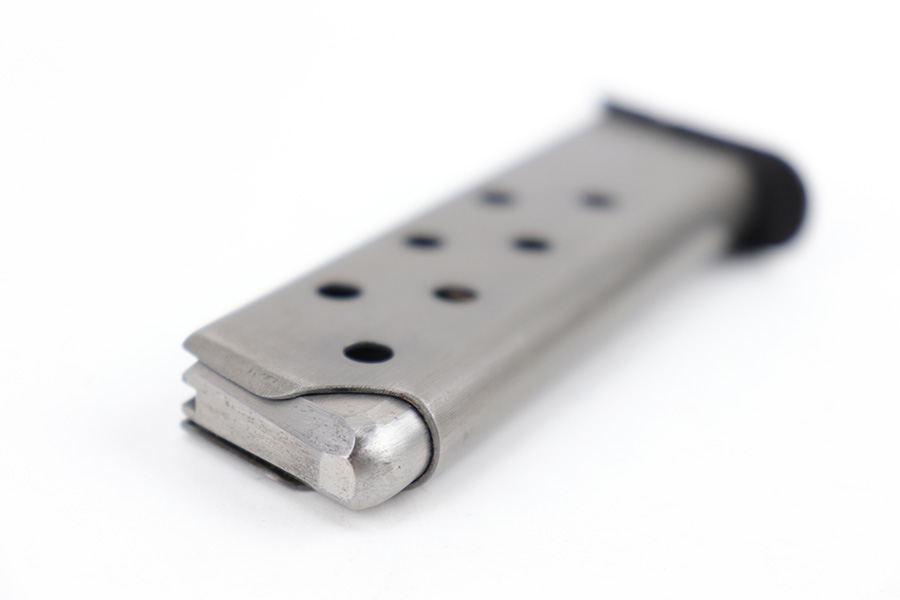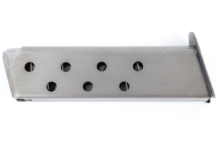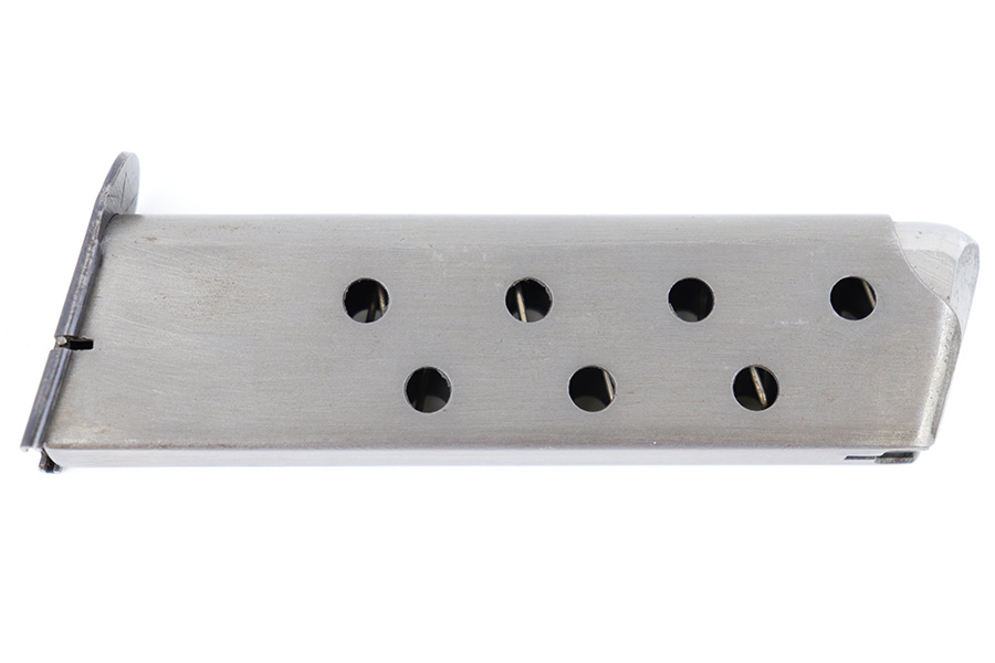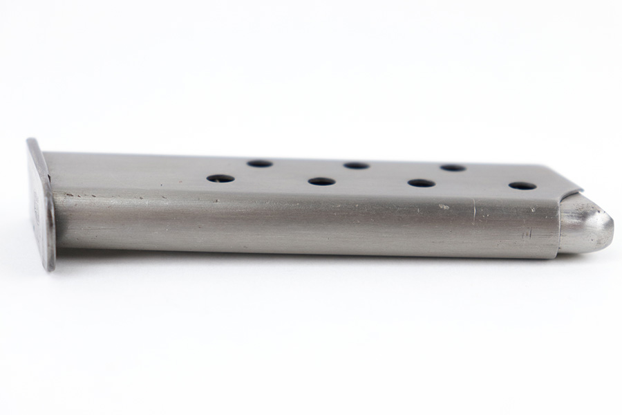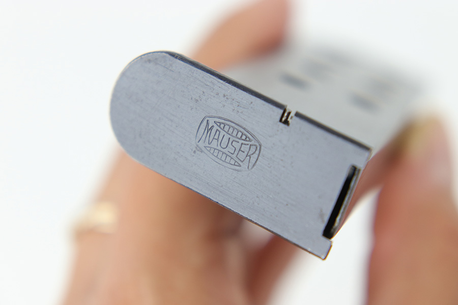 7/5/23 – This is a minty condition example of an early WW2 production Mauser HSC magazine. The magazine has a phosphate tube and blued base. The base is stamped with a Mauser banner logo. No other markings. The spring is strong and functional.