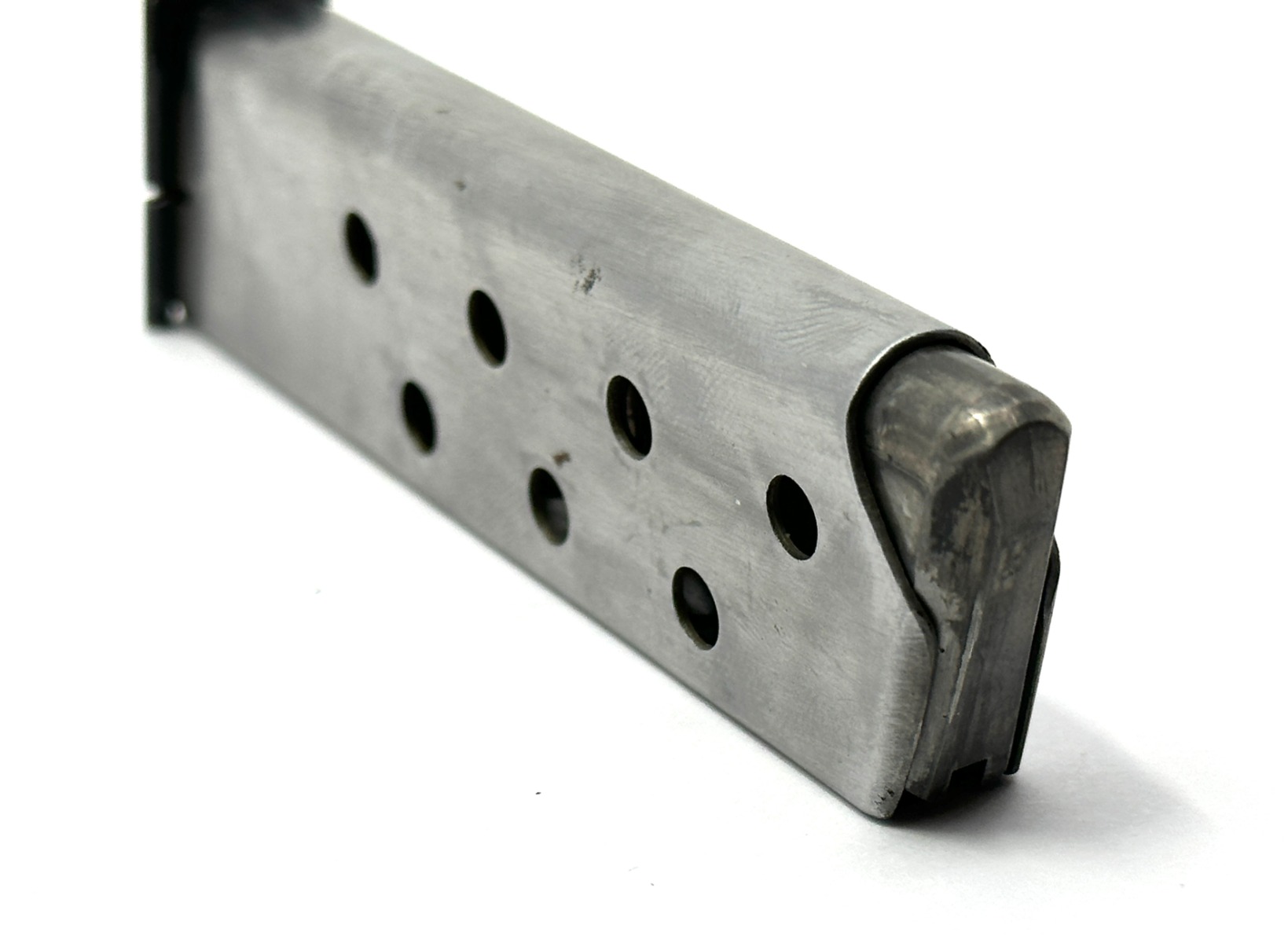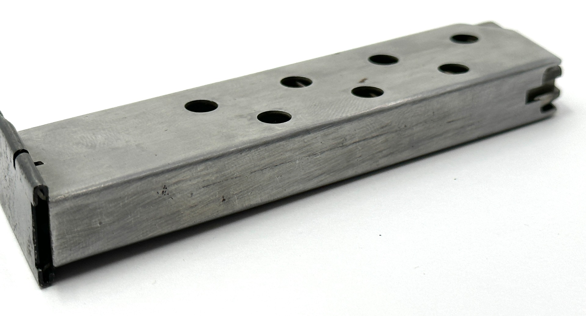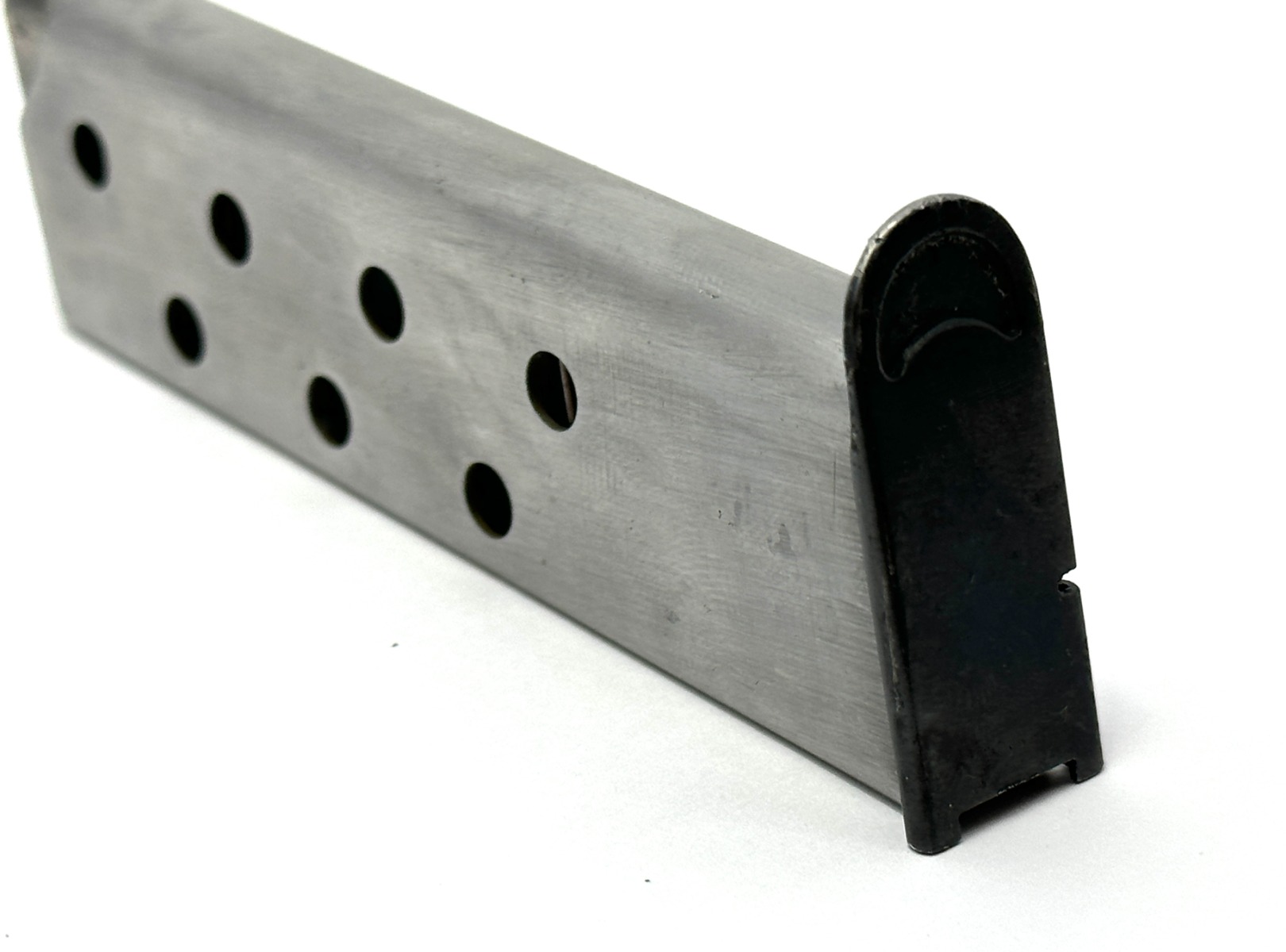 7/26/23 – This is a great condition late war Mauser HSC Magazine. The tube is without rust but has one tiny spot of pitting that was buffed out; otherwise has no dents or deformities and shows little to no wear. The foot plate has a small amount of surface rust despite being fully functional with a strong, smooth spring.