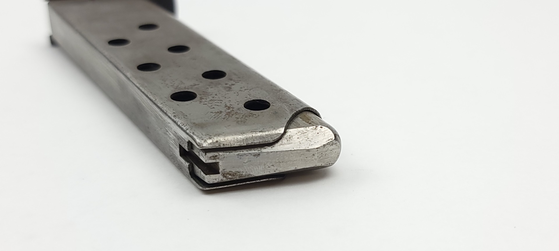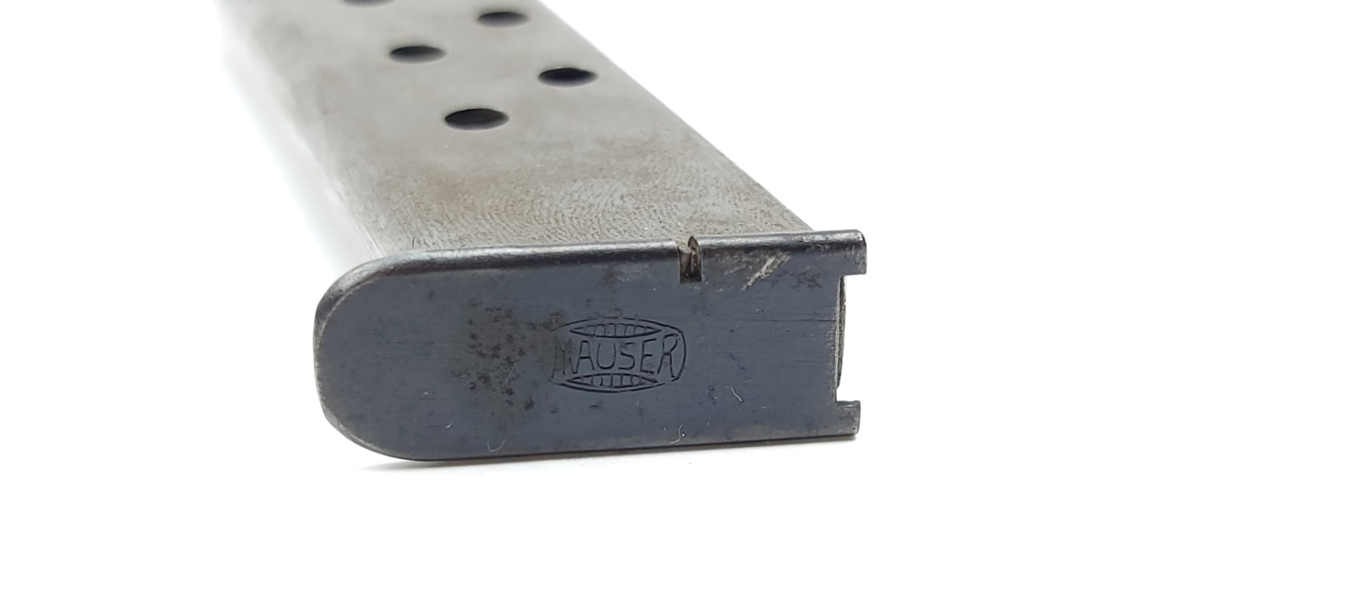 3/8/22 – This is an original Mauser HSC magazine from early WW2. The magazine is stamped on the base with a Mauser banner, and there are no other markings. The tube has some light surface patina and discoloration, but no deep rust or pitting. The spring is strong and fully functional.