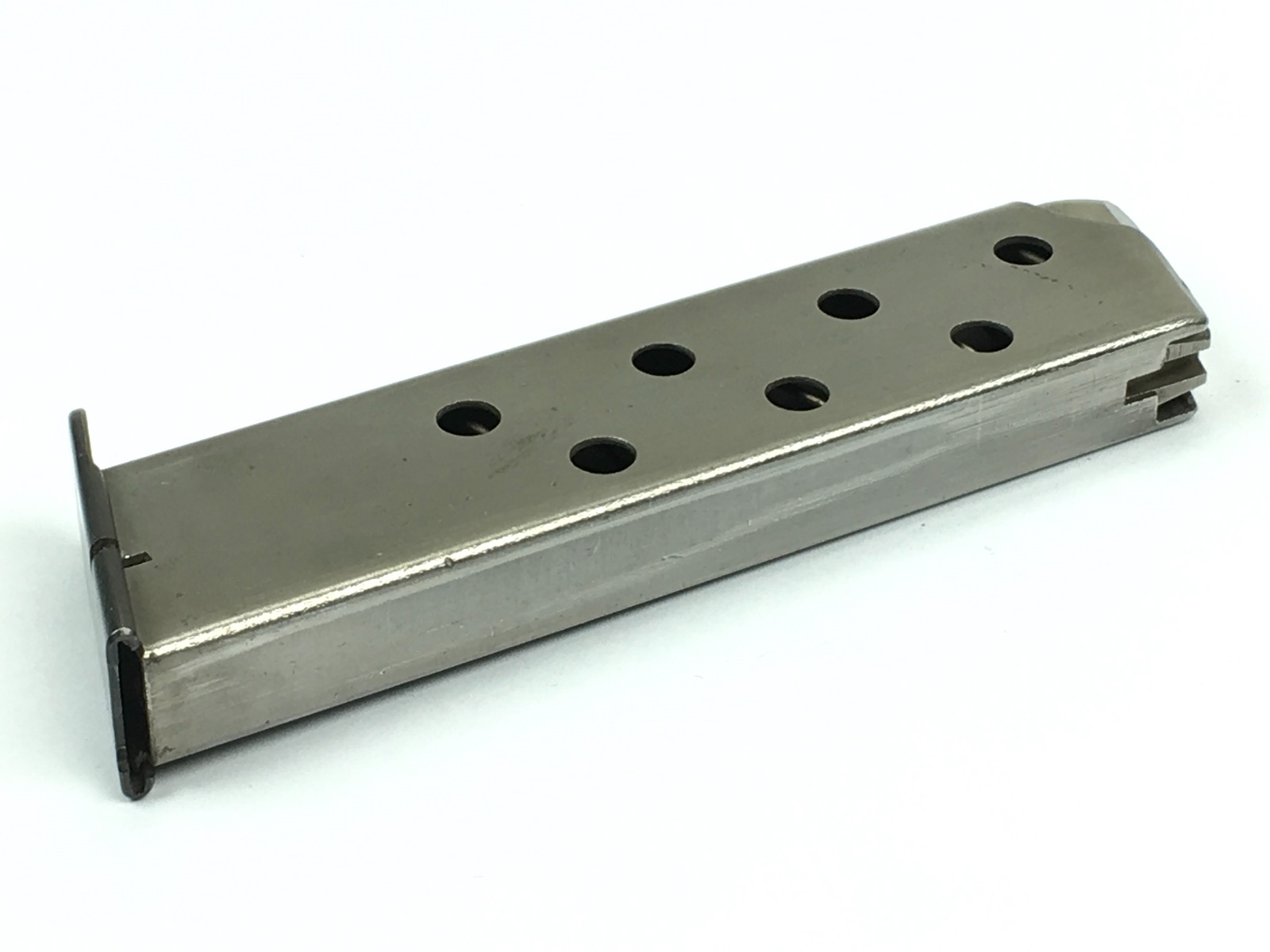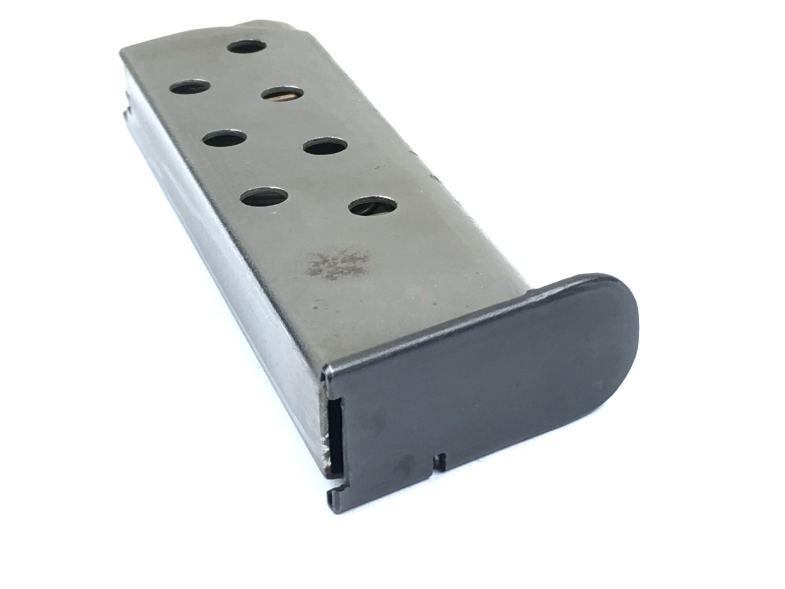 8/2/19 – This is an original, mid WW2 era Mauser model HSc magazine. The base of the magazine is correct for a wartime production Mauser HSC. The base is high polish blued with no stamps or imprints. The phosphate tube of the magazine is excellent with no rust or pitting. The follower is strong and fully functional. Guaranteed original.