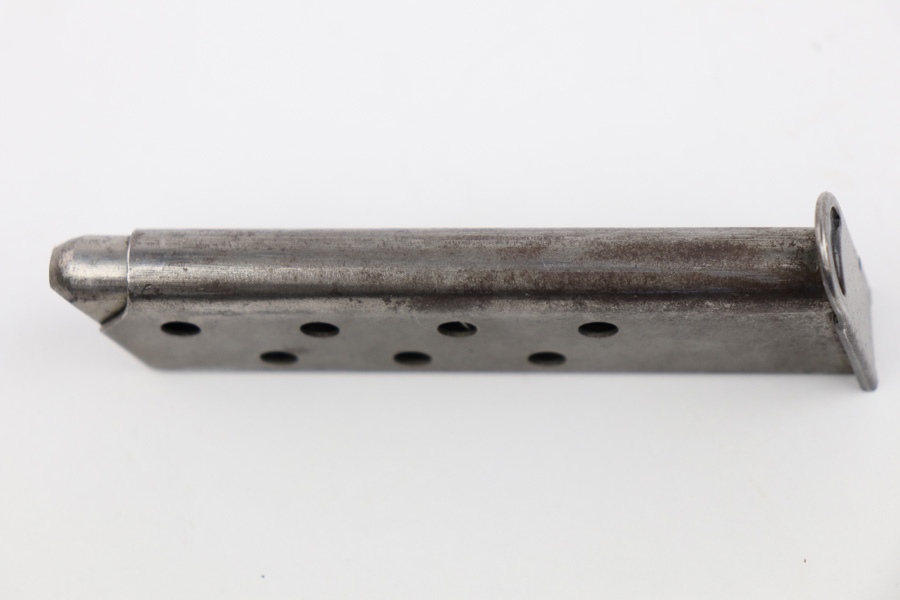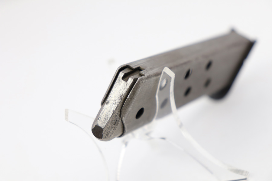 7/24/19 – This is an original WW2 wartime Mauser HSC magazine. Half-bottom indent stamp on the base is correct for a wartime production HSC. There’s some patina throughout the tube as shown, but no major issues. Fully functional spring is strong.