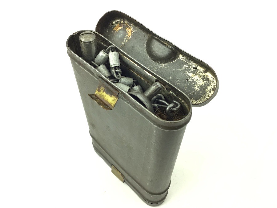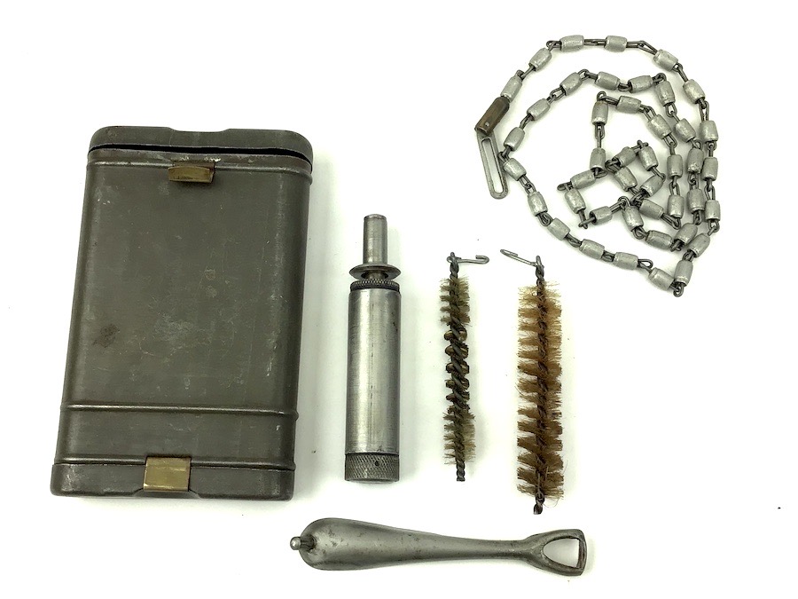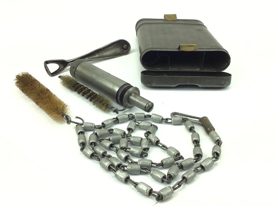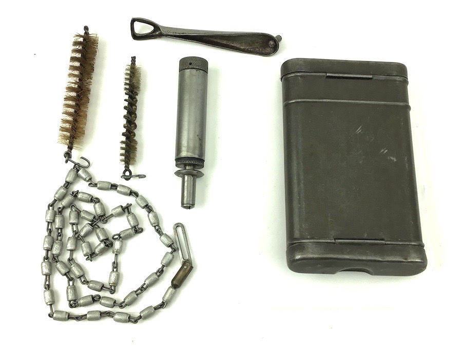12/12/22 – This is an original WW2 K98 cleaning kit. The kit is complete as shown. The external case is unmarked and internal tools are unmarked. There is patina and minor use wear marks throughout the case but no rust or pitting. The internal parts are all in great condition.