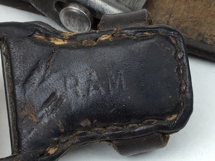 5/4/20 – Original and very nice condition K98 Rifle sling / strap. Maker stamped “RAM” on the leather keeper. Some surface wear, but strong and pliable leather. Unmarked buckle. Intact and secure stitching.