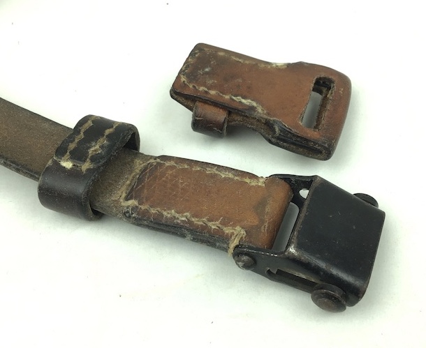 3/19/20 – This is an original WW2 era leather strap for a K98 rifle. The strap has no markings or stamps on the leather or clasp. The leather is soft and completely in tact with no notable flaws. The stitching is all original as well without issues. About 90% of the original herringbone texture is still visible. Guaranteed original.