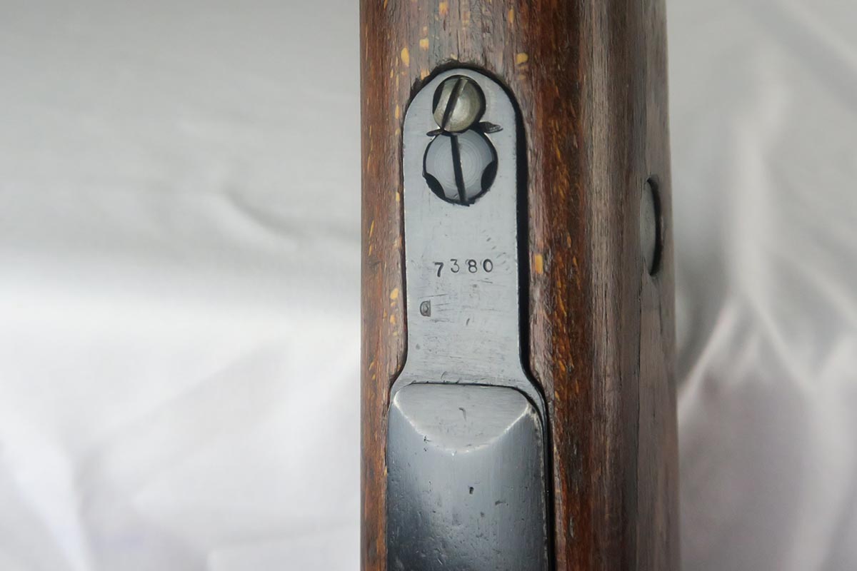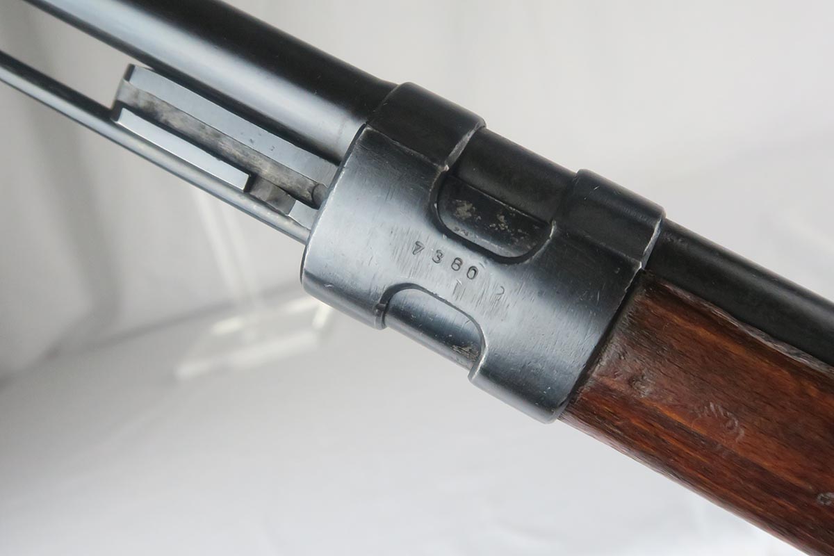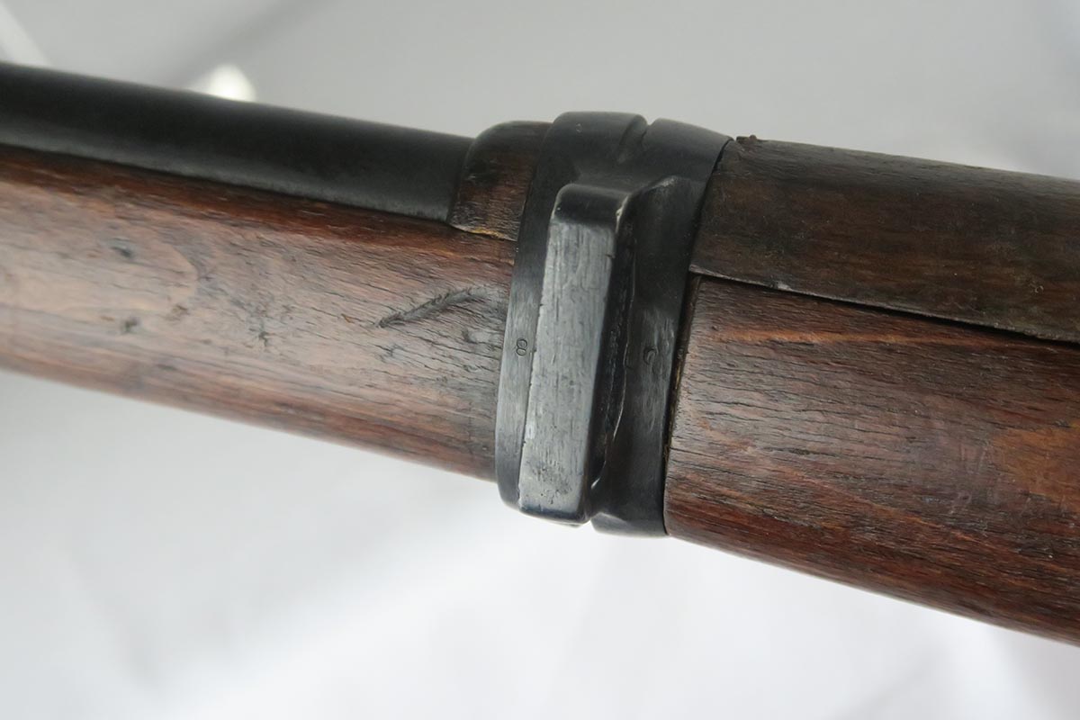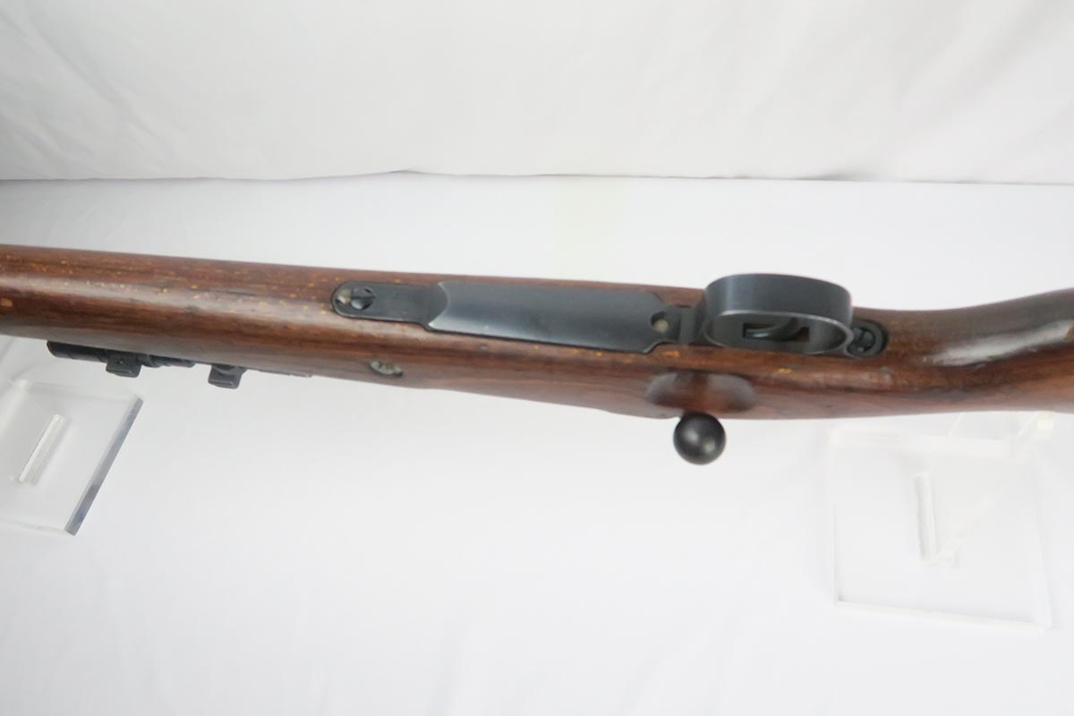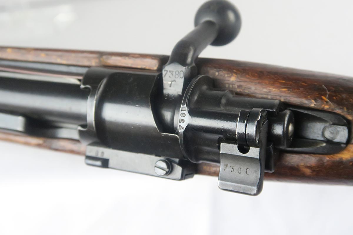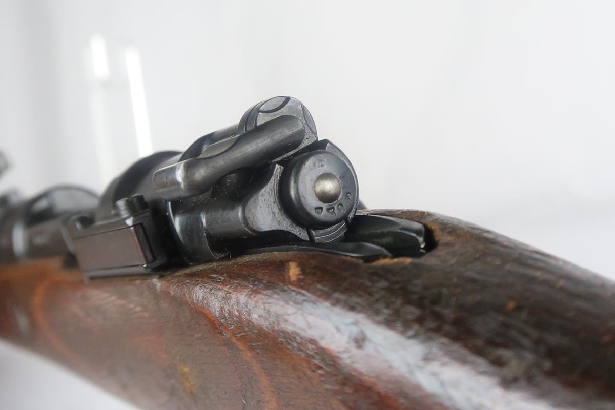 1/19/18 – This is a hard-to-find Mauser K98 sniper rifle from 1942 with original ZF scope. The rifle is in good condition with mostly matching numbers, and includes a sight hood, muzzle cover and cleaning rod. There is some evidence of renumbering on this rifle, thus the lower list price, and the magazine follower is mismatched. The safety is the only part I’m sure has been renumbered, but the rear barrel band is a possibility as well. The scope is original and the mount is waffen marked. All other parts of the rifle are original, including the stock and the finish. The bore has strong rifling but some frosting, and could use a good cleaning. Scope optics are mostly clear.