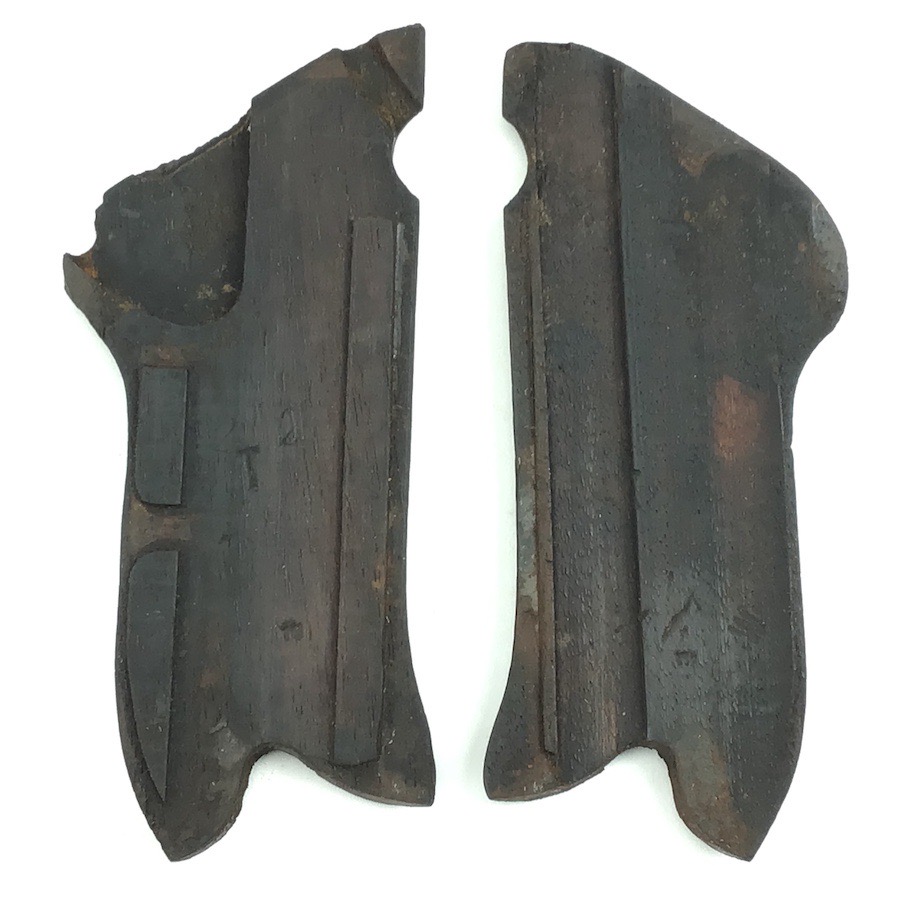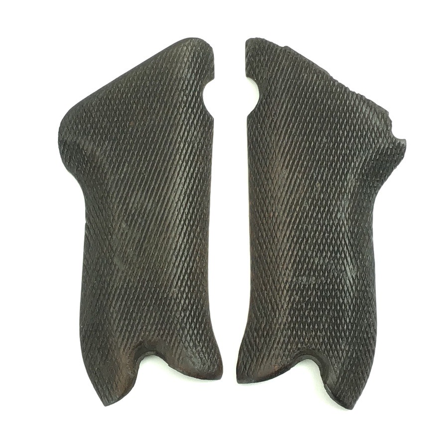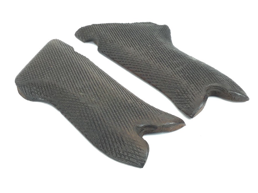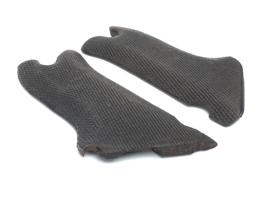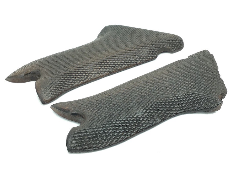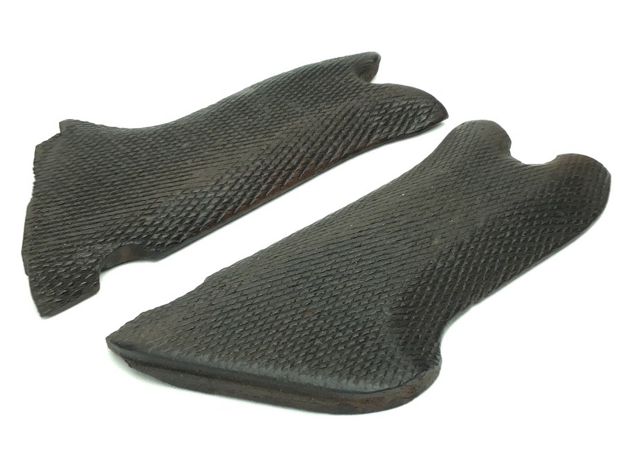 1/16/23 – This is an original pair of WW2 era, Mauser Luger grips. The interior of each grip panel has a small stick winged eagle 655 military proof stamp. The exterior of the grips have a strong diamond pattern with minor wear. There are no cracks or chips.