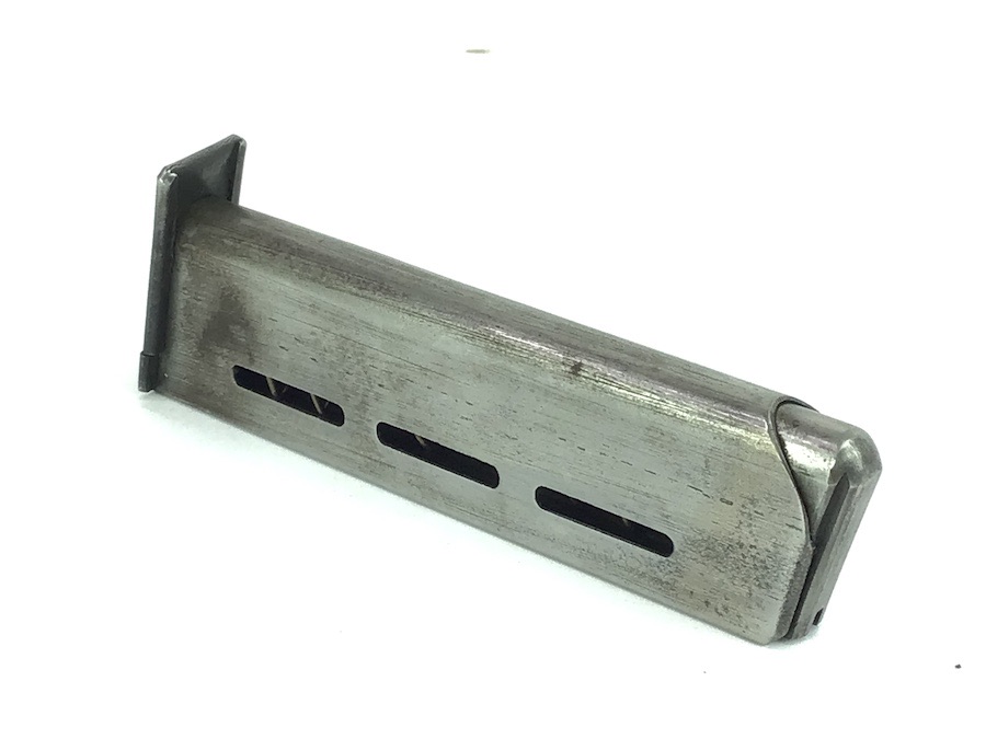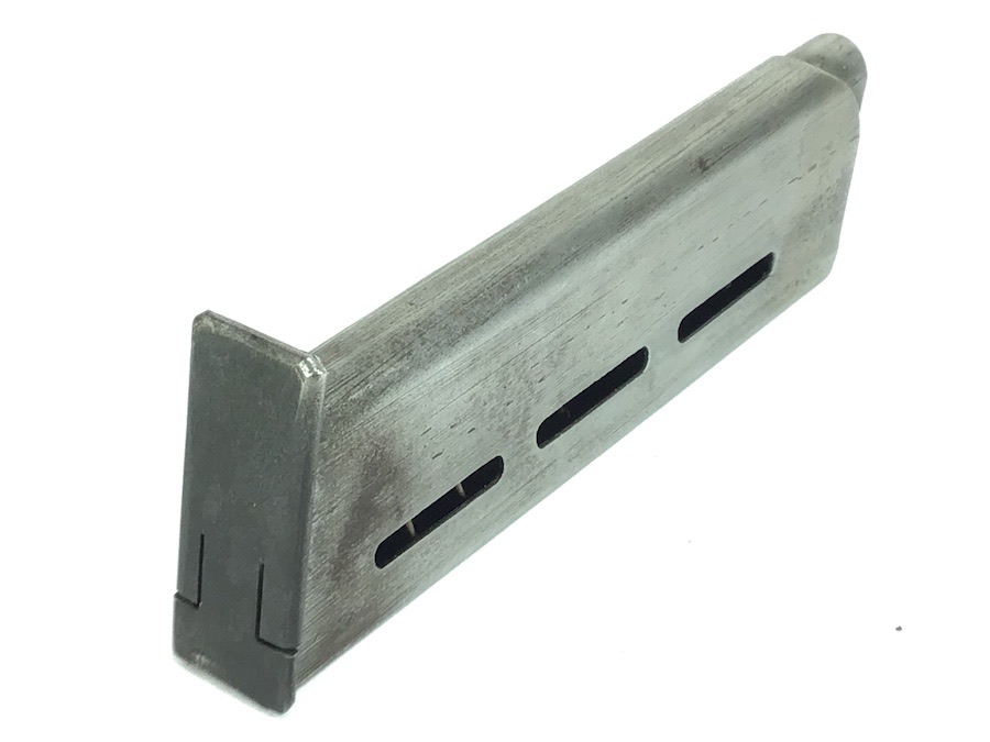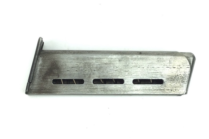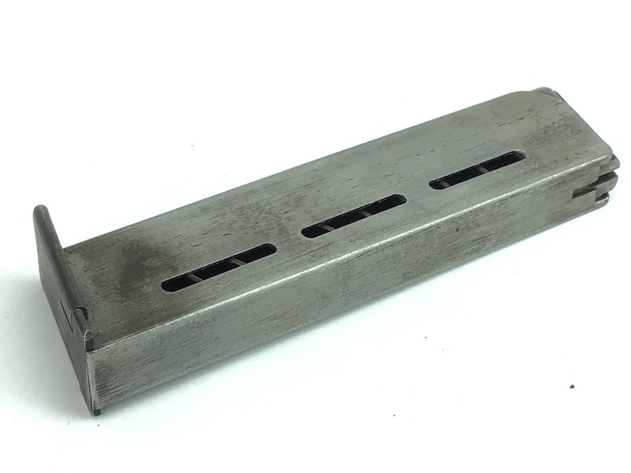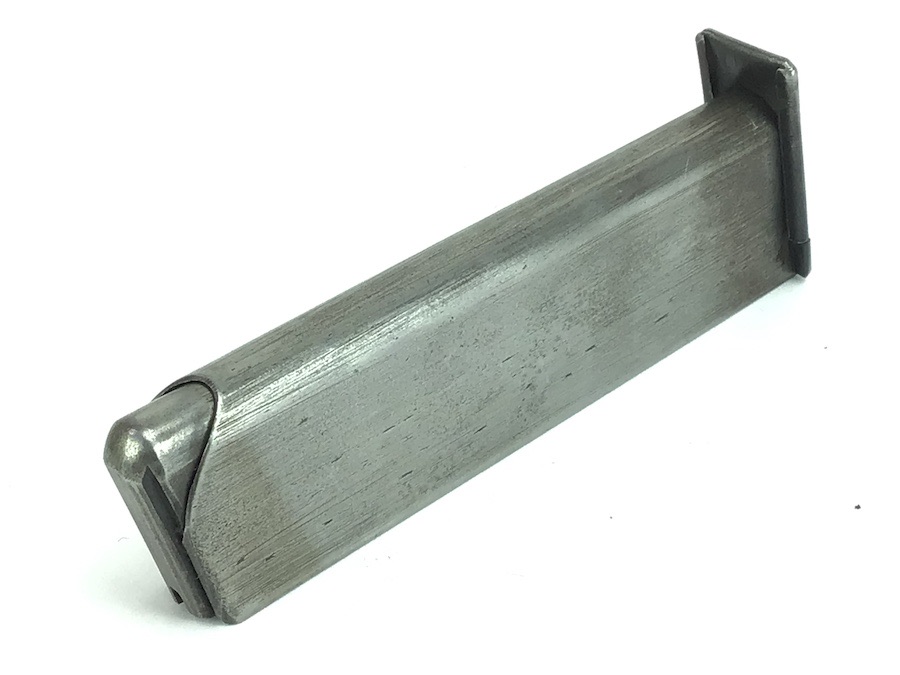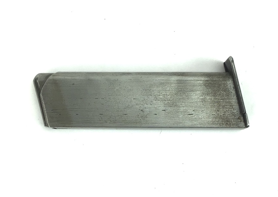 9/24/24 – Original and great condition. Mauser model 1914 pistol magazine in 7.65mm. The magazine has some dark surface patina, but no dents or corrosion. Great overall condition with no markings or stamps, and a fully functional spring.