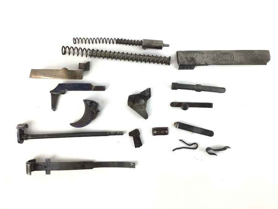 5/13/24 – Original and very good condition. Small parts kit for the 7.65mm Mauser M1914 hand gun. There is some pitting on a couple of the parts, but still useable and presentable.
