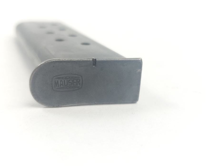 3/30/20 – 3/30/20 – This is an original Mauser model 1934 magazine from the early WW2 era. The magazine has an excellent blued tube and base. The base is very slightly bent, but this doesn’t affect functionality. Well stamped with a Mauser banner logo. Strong fully functional spring as well, making this a nice collector’s magazine.