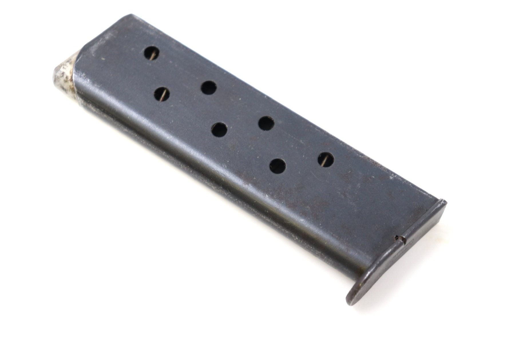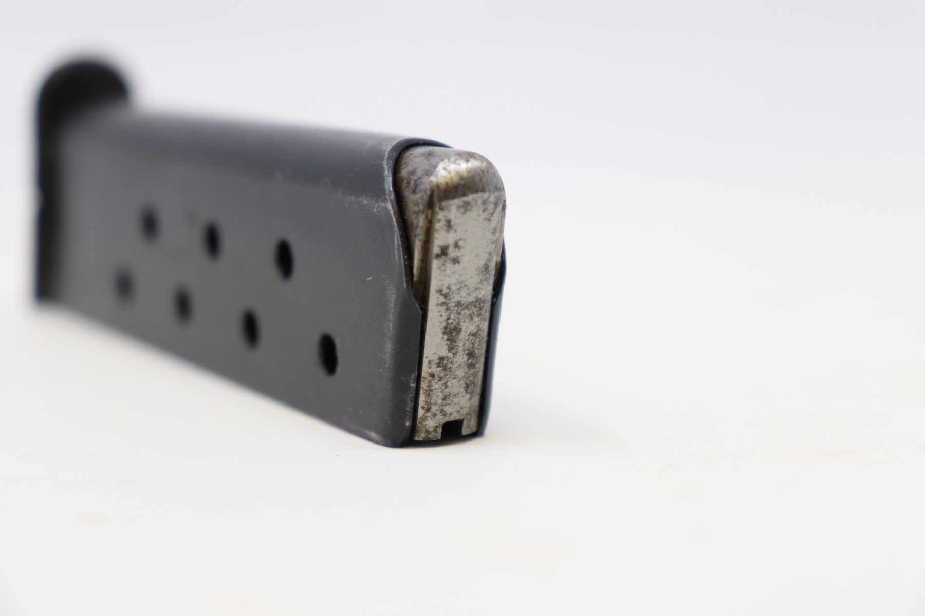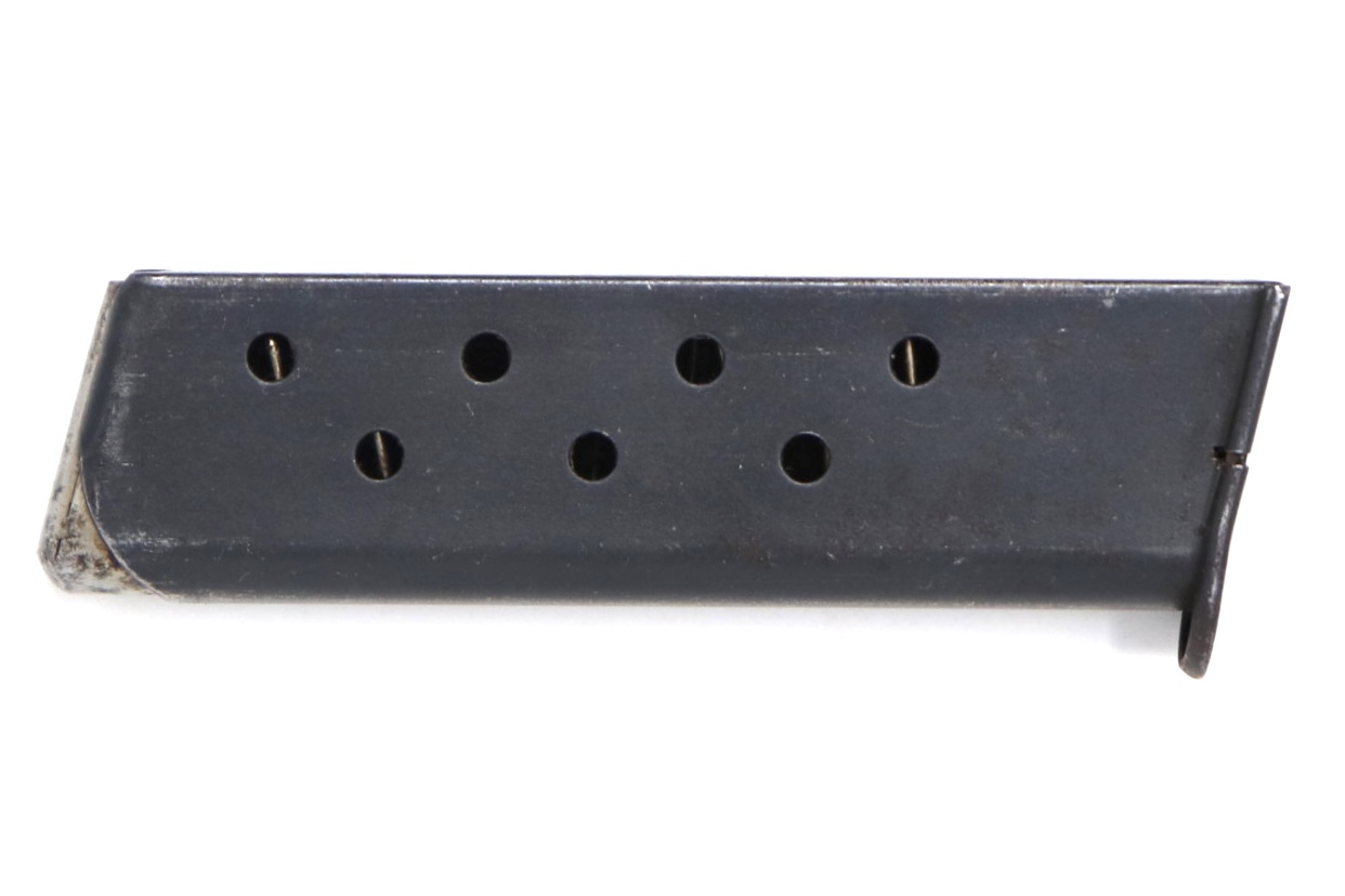 10/4/23 – This is a great condition Mauser model 1934 magazine. Both flat side of the body have very minimal finish loss with the spine having the majority of wear. Spring is strong and functional. Mauser banner displayed across the foot plate.