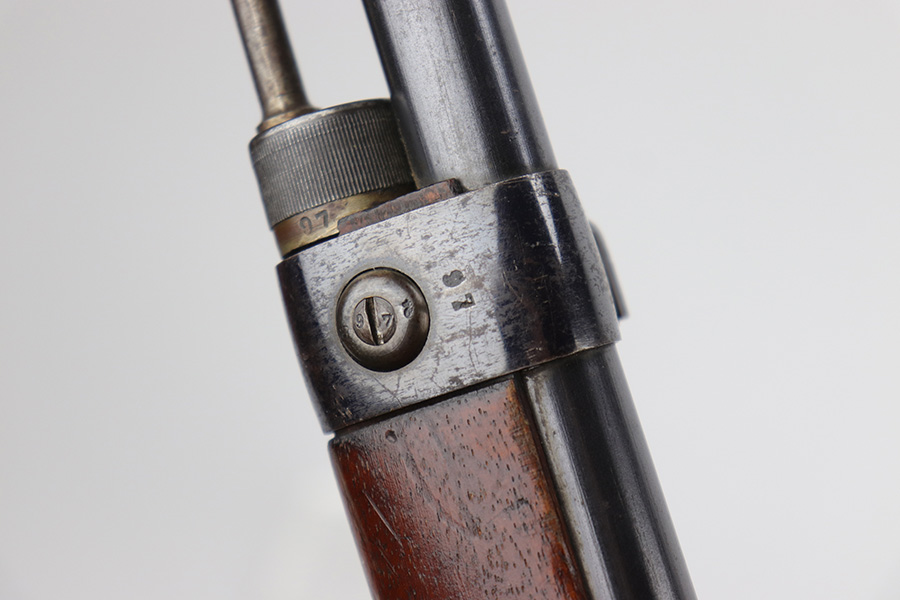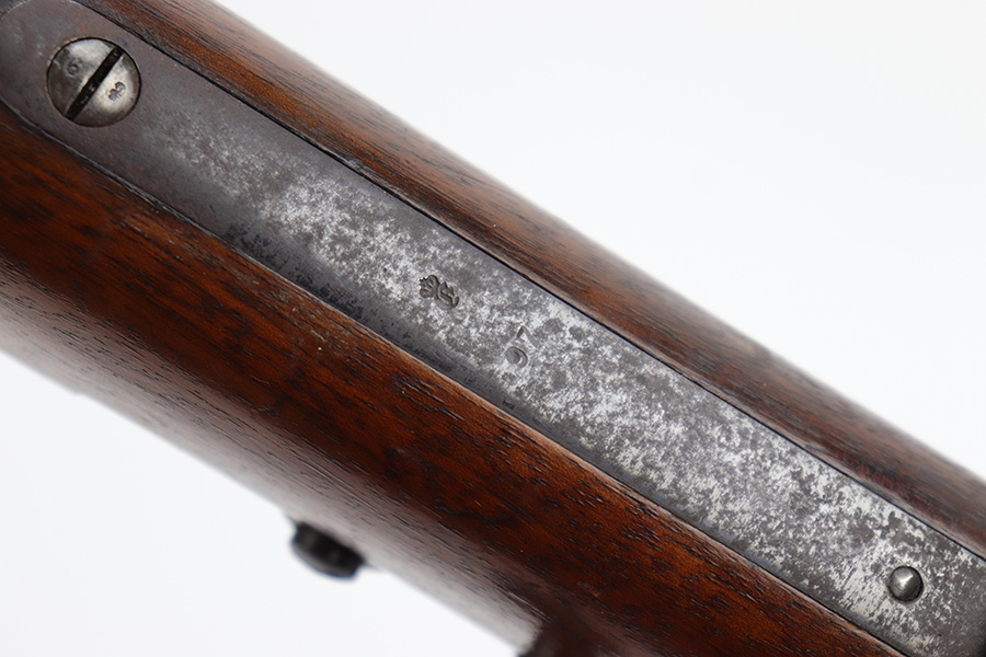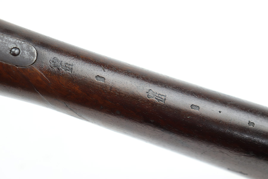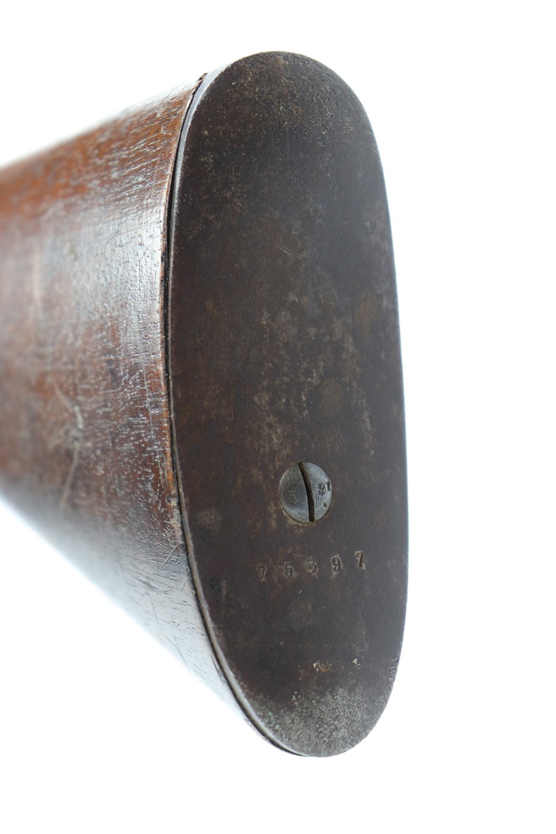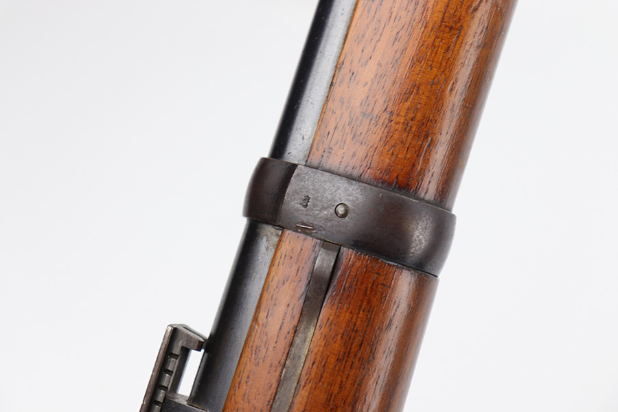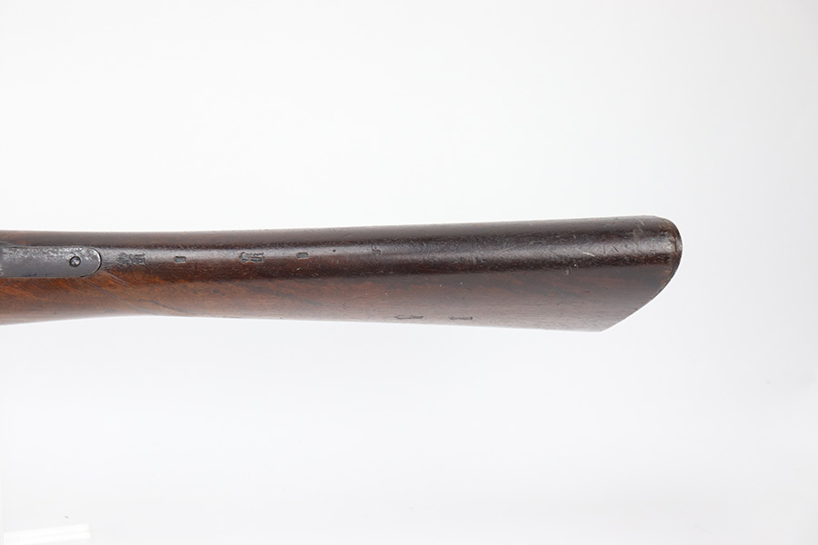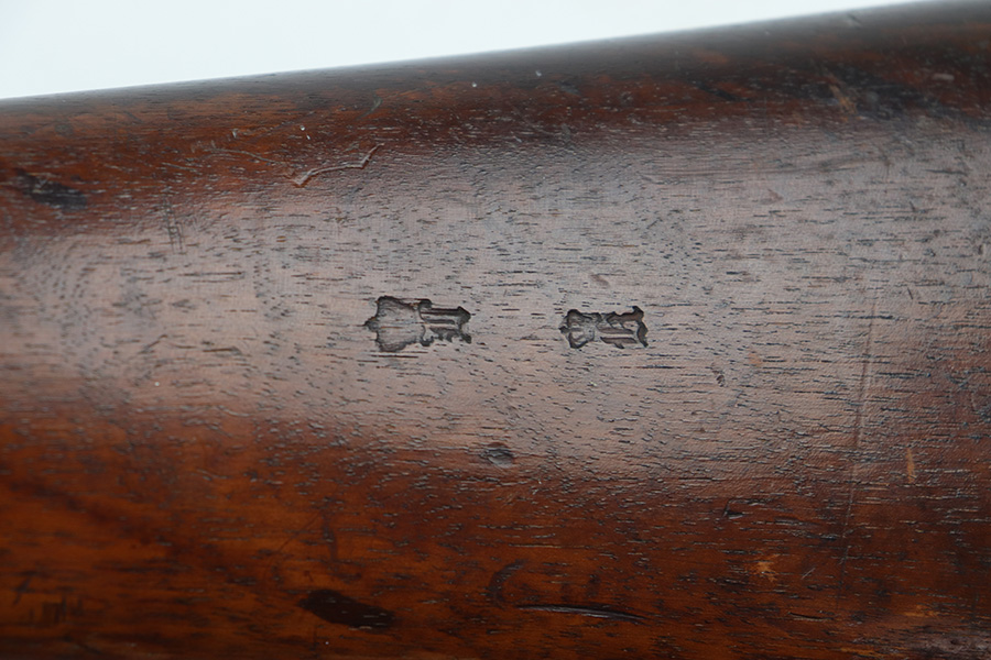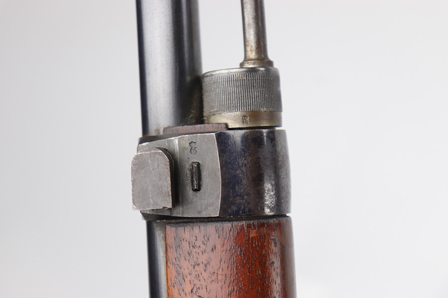 6/12/23 – This is an all original Mauser 1871/84 rifle made by Amberg Arsenal. This antique rifle is chambered in 11mm and still retains the original finish and all numbered parts matching. These rifles are scarcely encountered in this condition with about 88-90% of the metal retaining the original finish. Most of the finish loss is found on the receiver and bolt assembly, which has a natural patina and light surface wear but no rust or pitting. The barrel and metal underside / trigger assembly has dark surface patina mixed within the original finish, and natural aging wear throughout. The wood stock is Imperial proof stamped with a few light surface imperfections but no cracks or chips. Mechanically sound with smooth function and a clean bore. The bore is shiny with nice rifling and rates 9/10 overall.