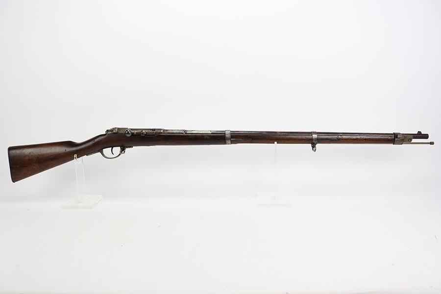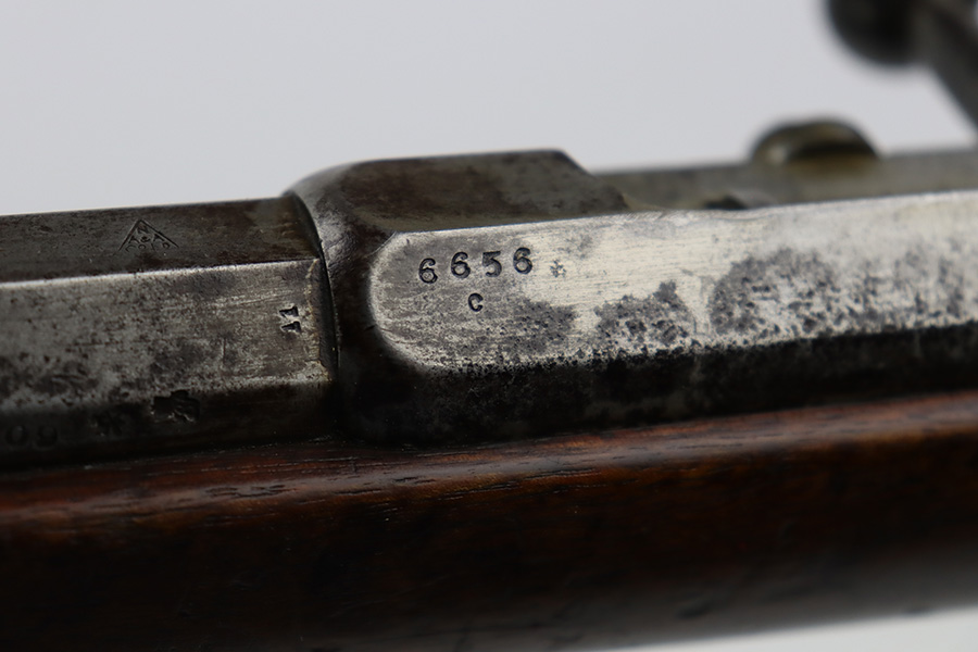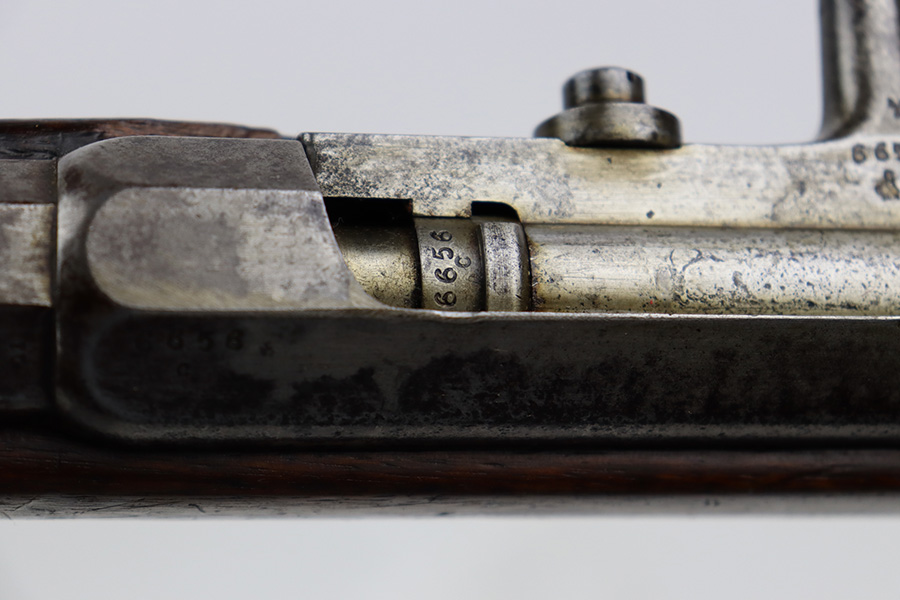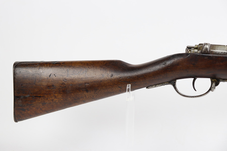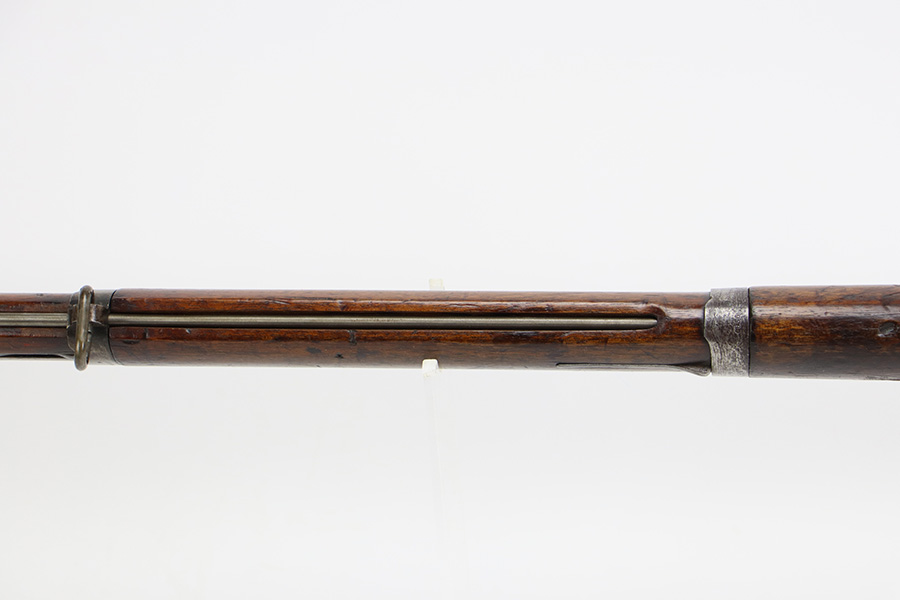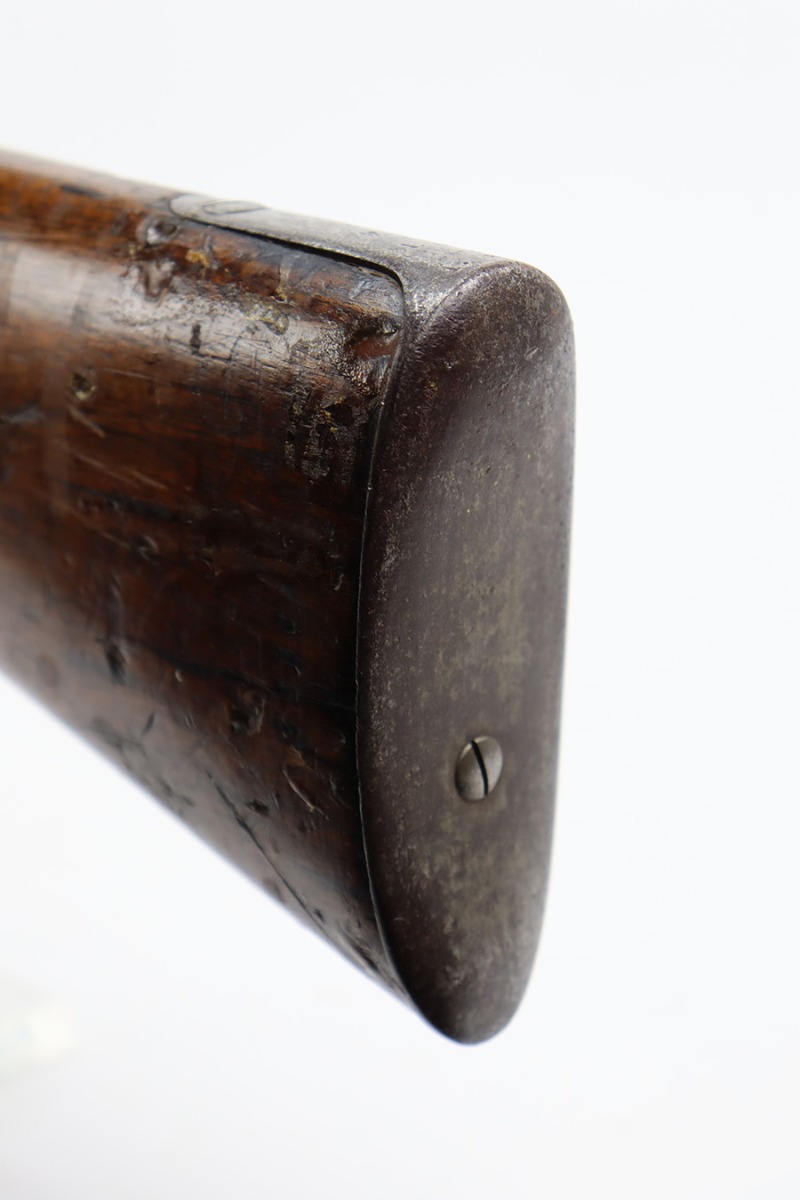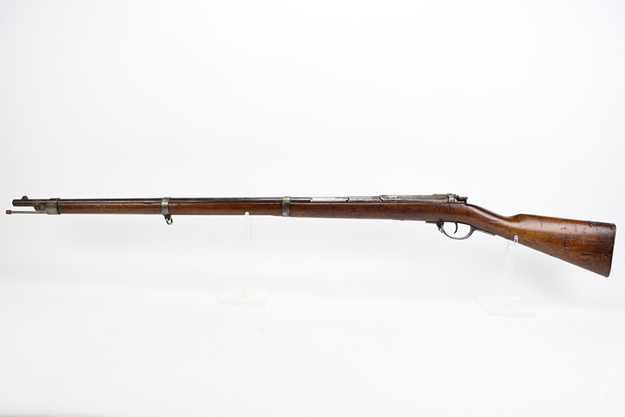 9/12/23 – This is a Mauser Model 1871 Rifle manufactured in 1874 for the Imperial German military. Chambered in 11mm Mauser and featuring a 32″ barrel, this was the first rifle designed by the Mauser brothers that was used by the German Army. The gun has retained roughly 40% of its finish, with almost no bluing present on the receiver, and areas of patina and signs of oxidation throughout the receiver and barrel. The receiver has the model designation, serial number, and year of manufacture stamped on it. The stock is in good shape, with no major damage. The bore is nearly immaculate. The rifle is missing its rear sight assembly. Antique, so no licensing required.