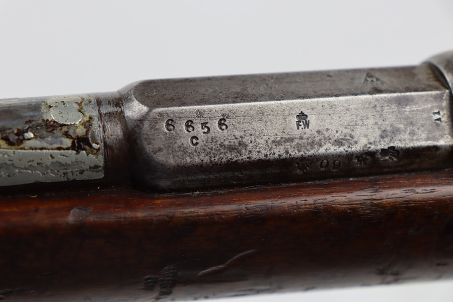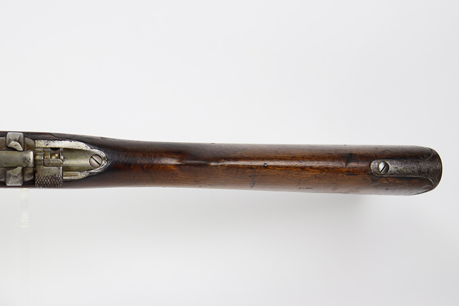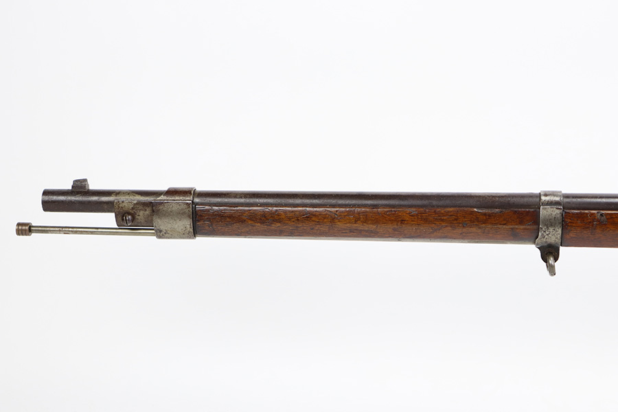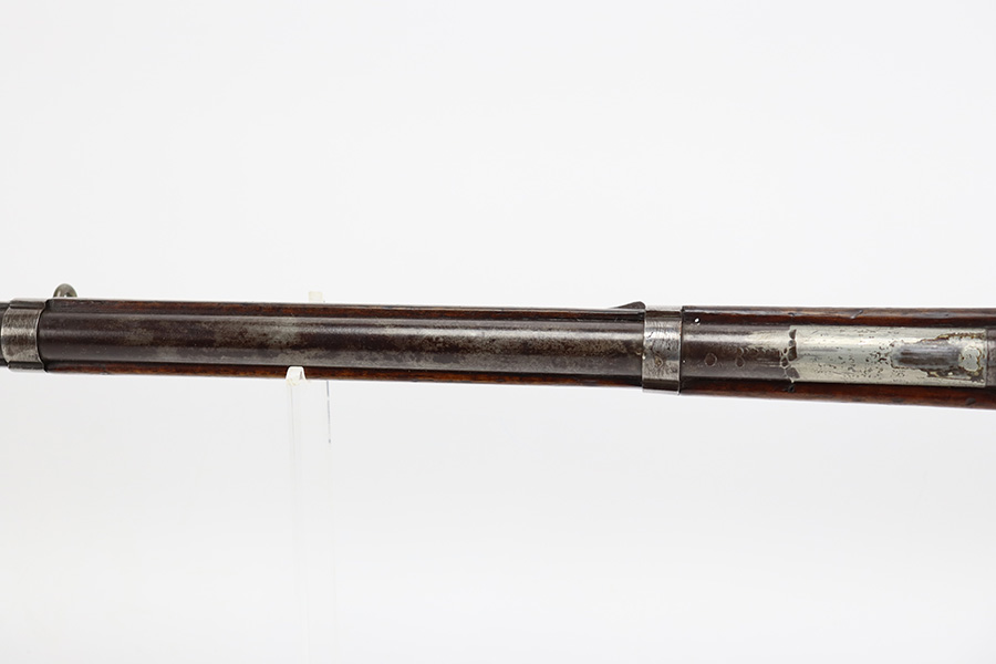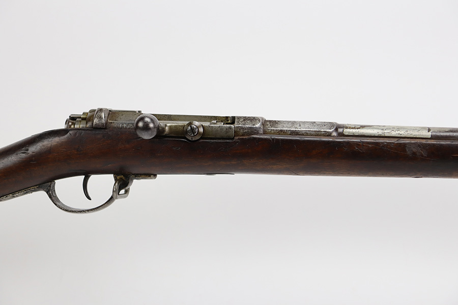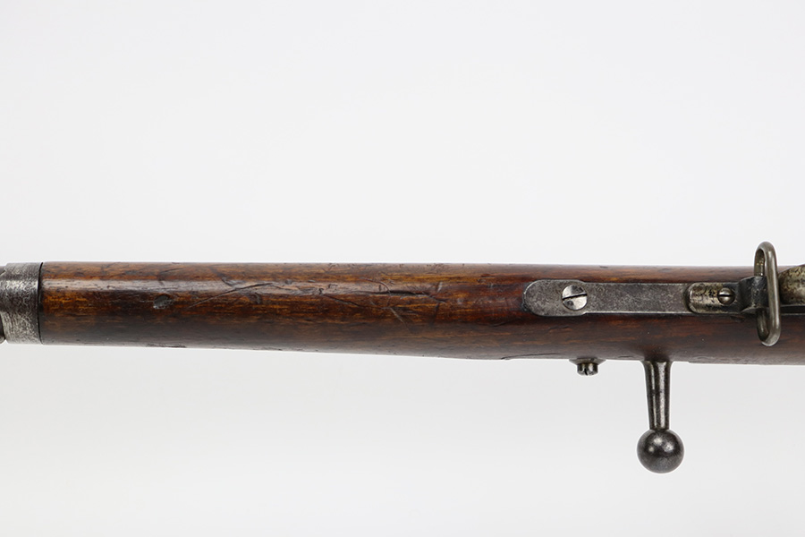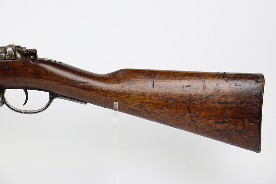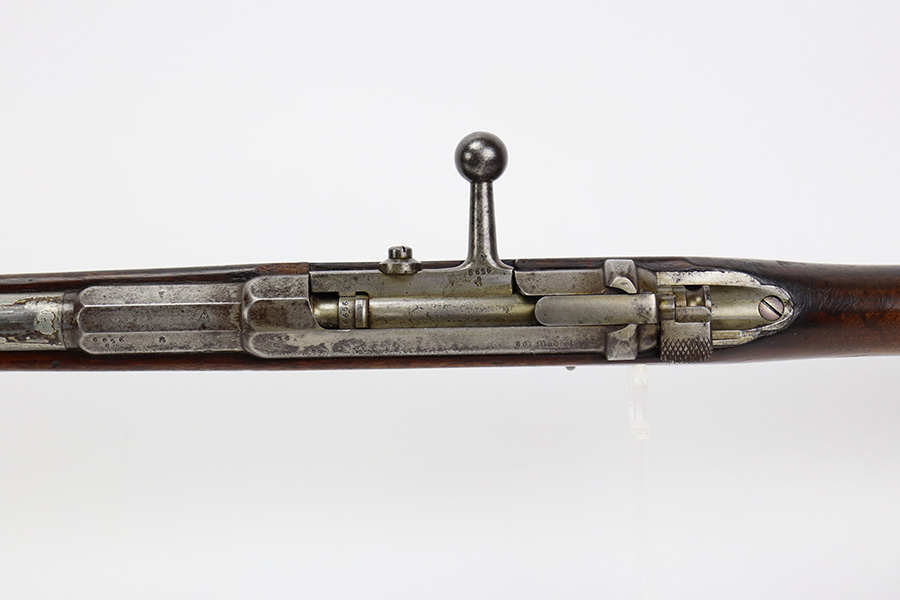 9/12/23 – This is a Mauser Model 1871 Rifle manufactured in 1874 for the Imperial German military. Chambered in 11mm Mauser and featuring a 32″ barrel, this was the first rifle designed by the Mauser brothers that was used by the German Army. The gun has retained roughly 40% of its finish, with almost no bluing present on the receiver, and areas of patina and signs of oxidation throughout the receiver and barrel. The receiver has the model designation, serial number, and year of manufacture stamped on it. The stock is in good shape, with no major damage. The bore is nearly immaculate. The rifle is missing its rear sight assembly. Antique, so no licensing required.